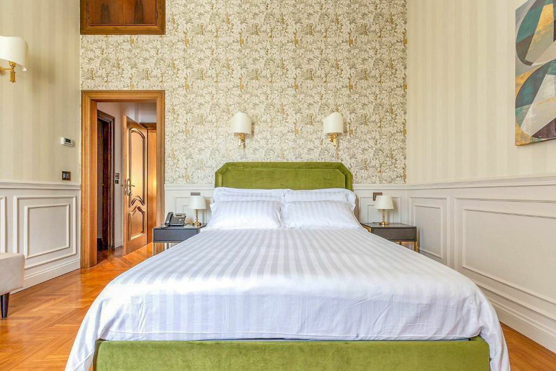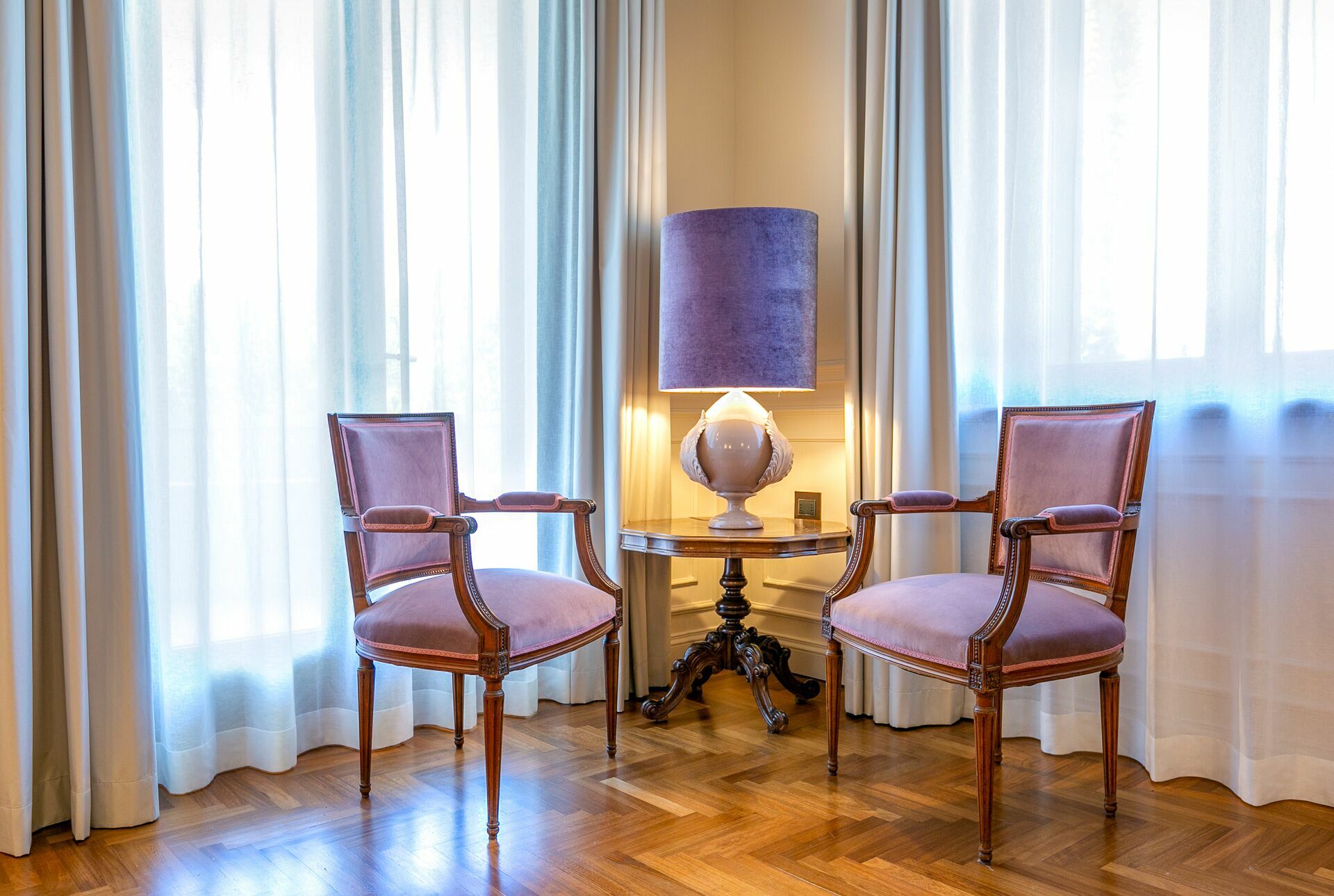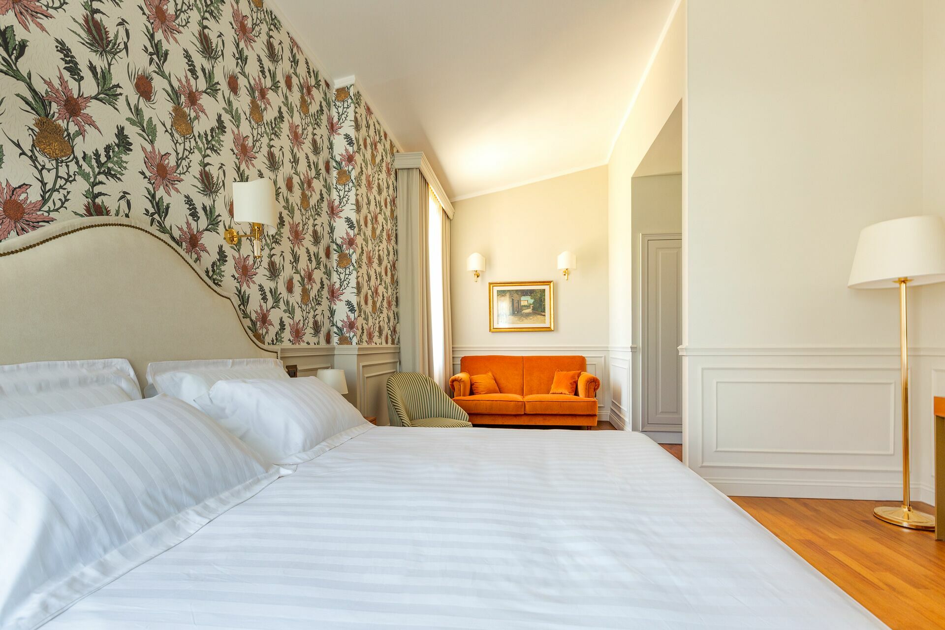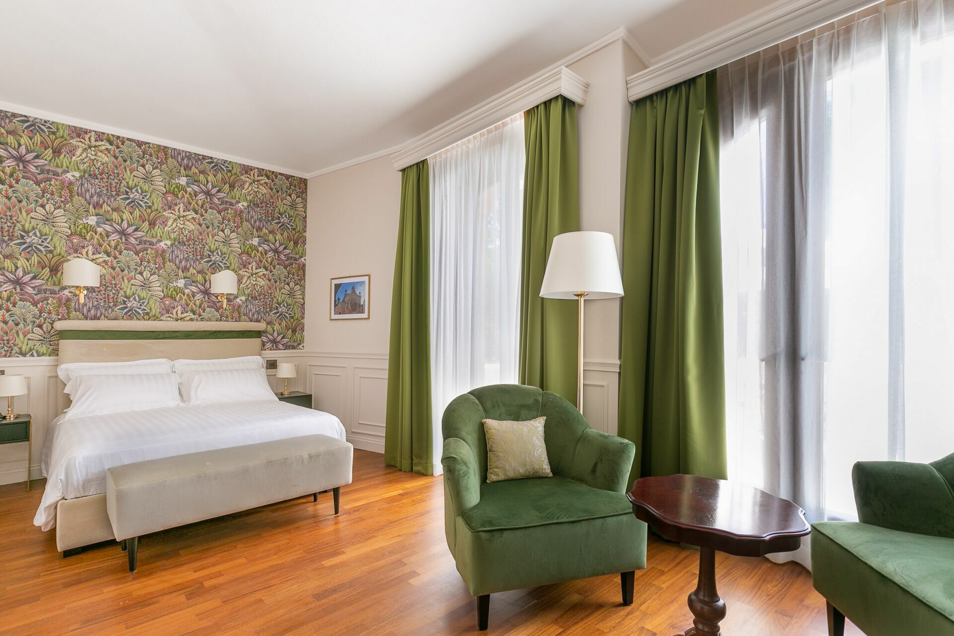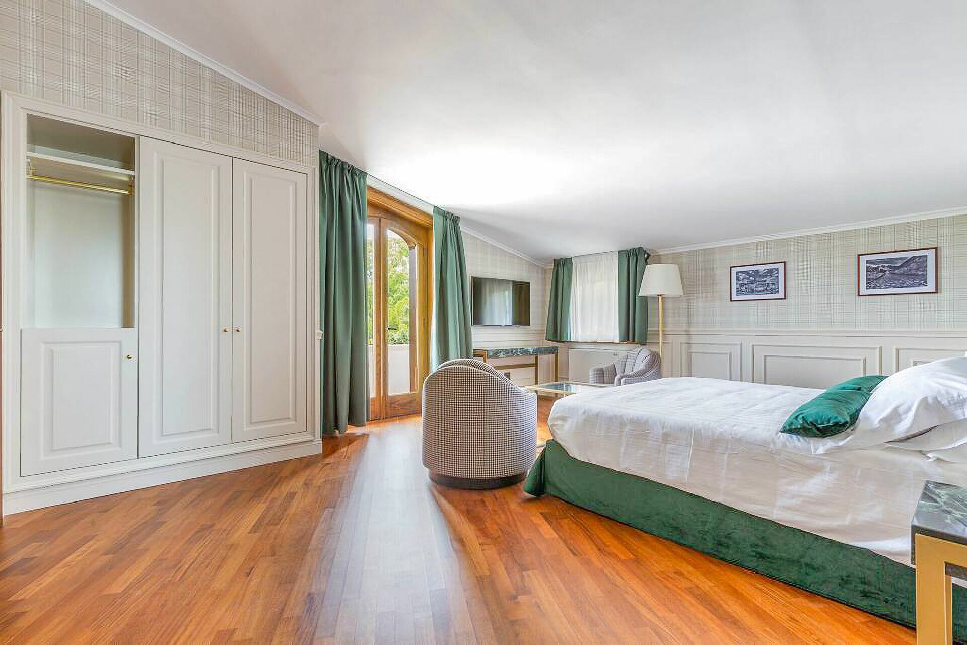 The interiors are characterized by marble and wooden coatings and fine furnishings.