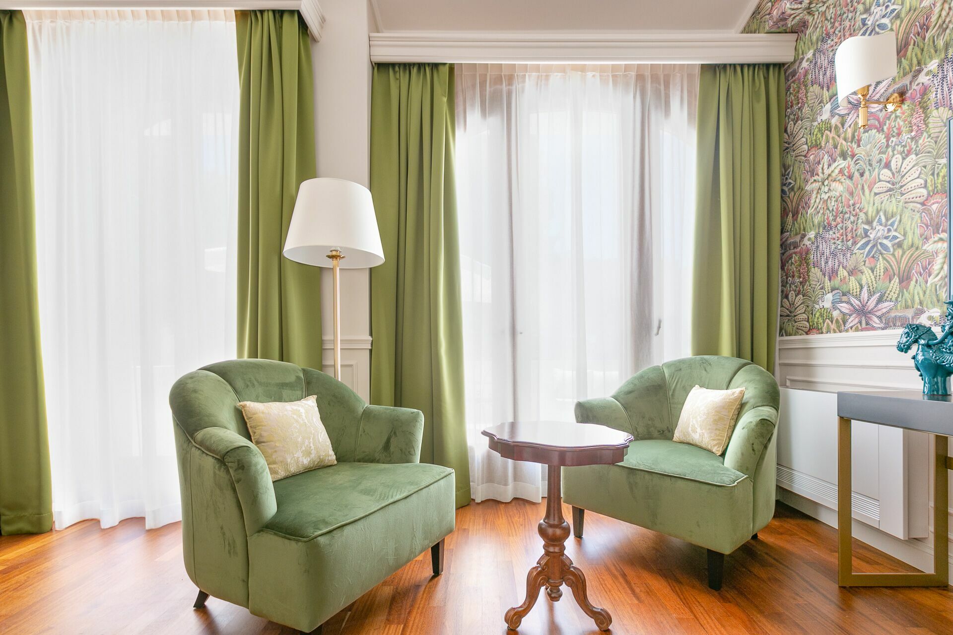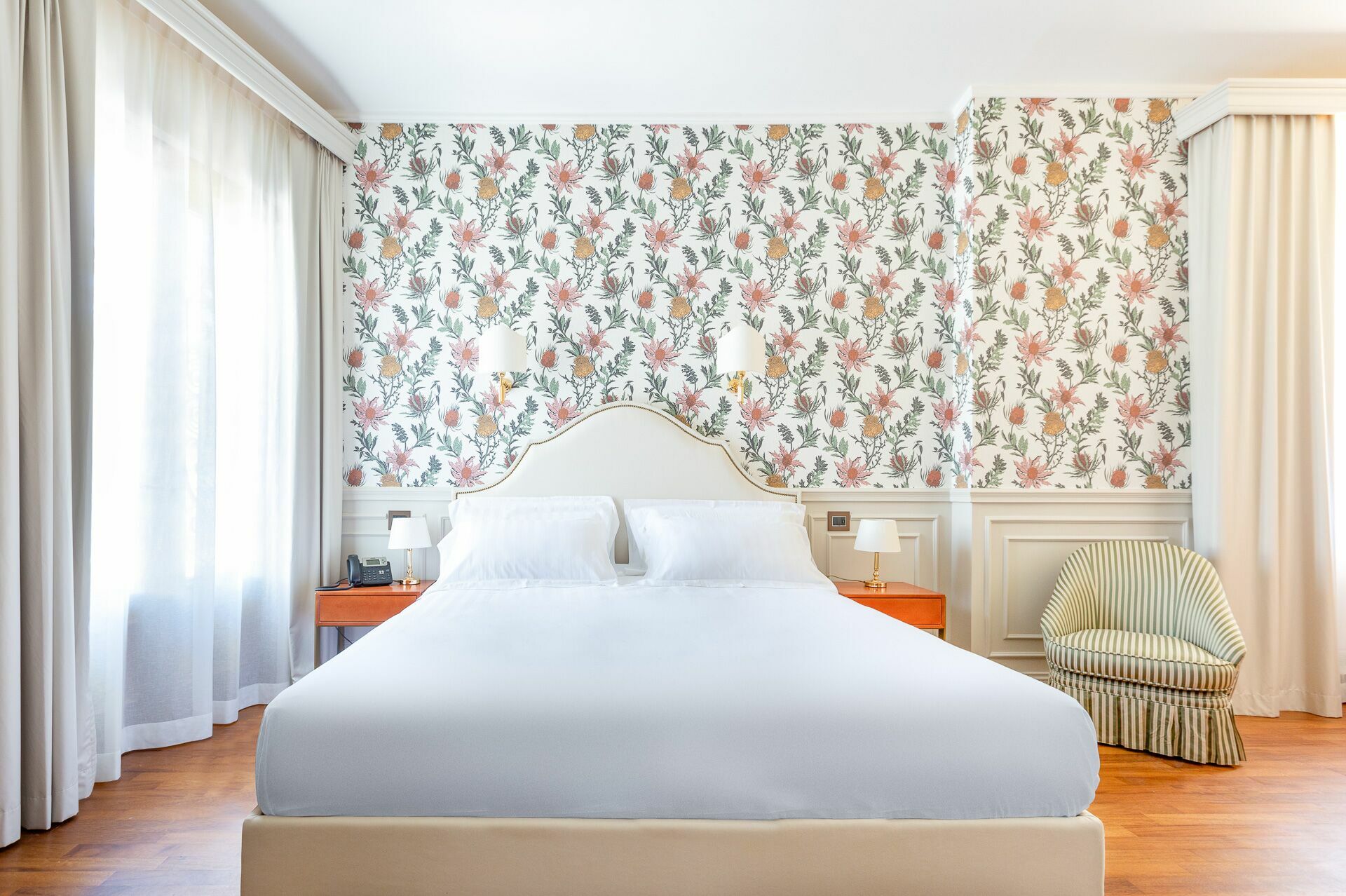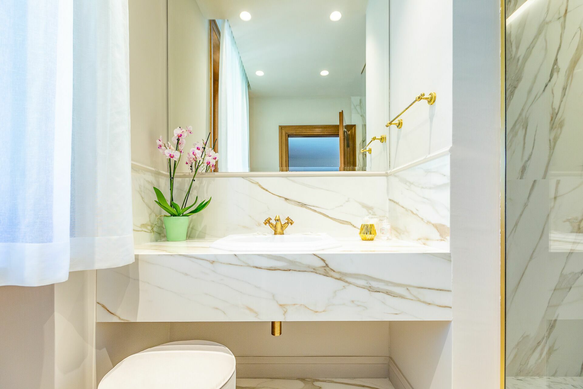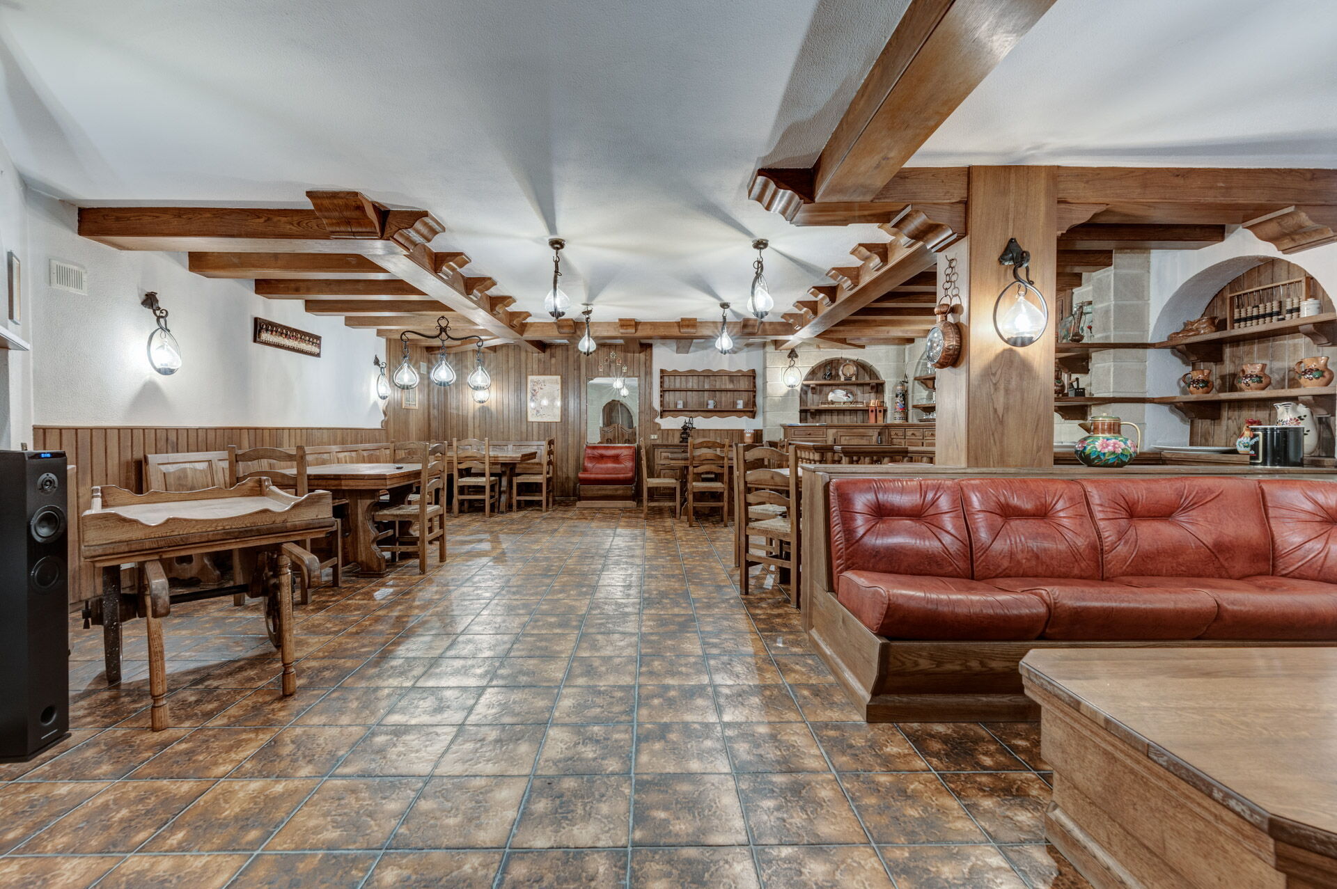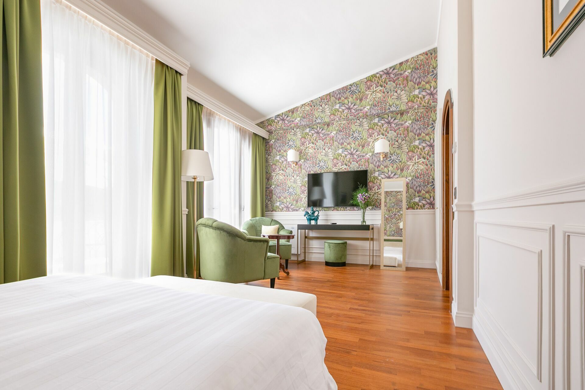 The interiors are characterized by marble and wooden coatings and fine furnishings.