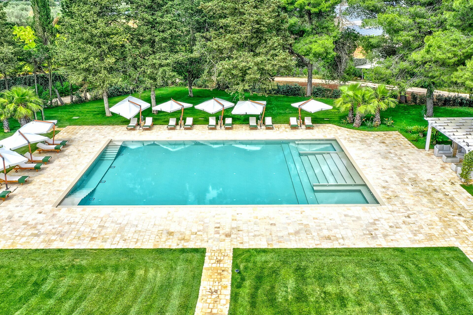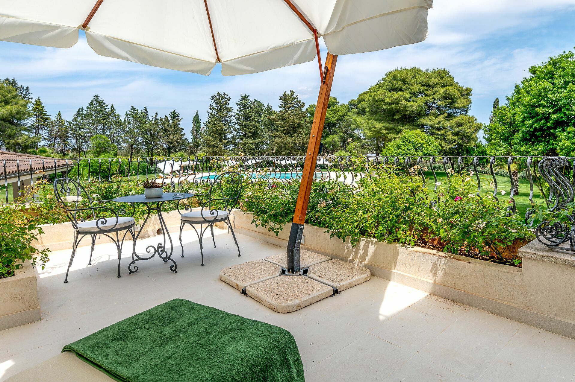 The convenient accesses will allow you to enter in safety and tranquility, passing easily from a dip in the pool, to a lunch on the veranda or a walk in the greenery.