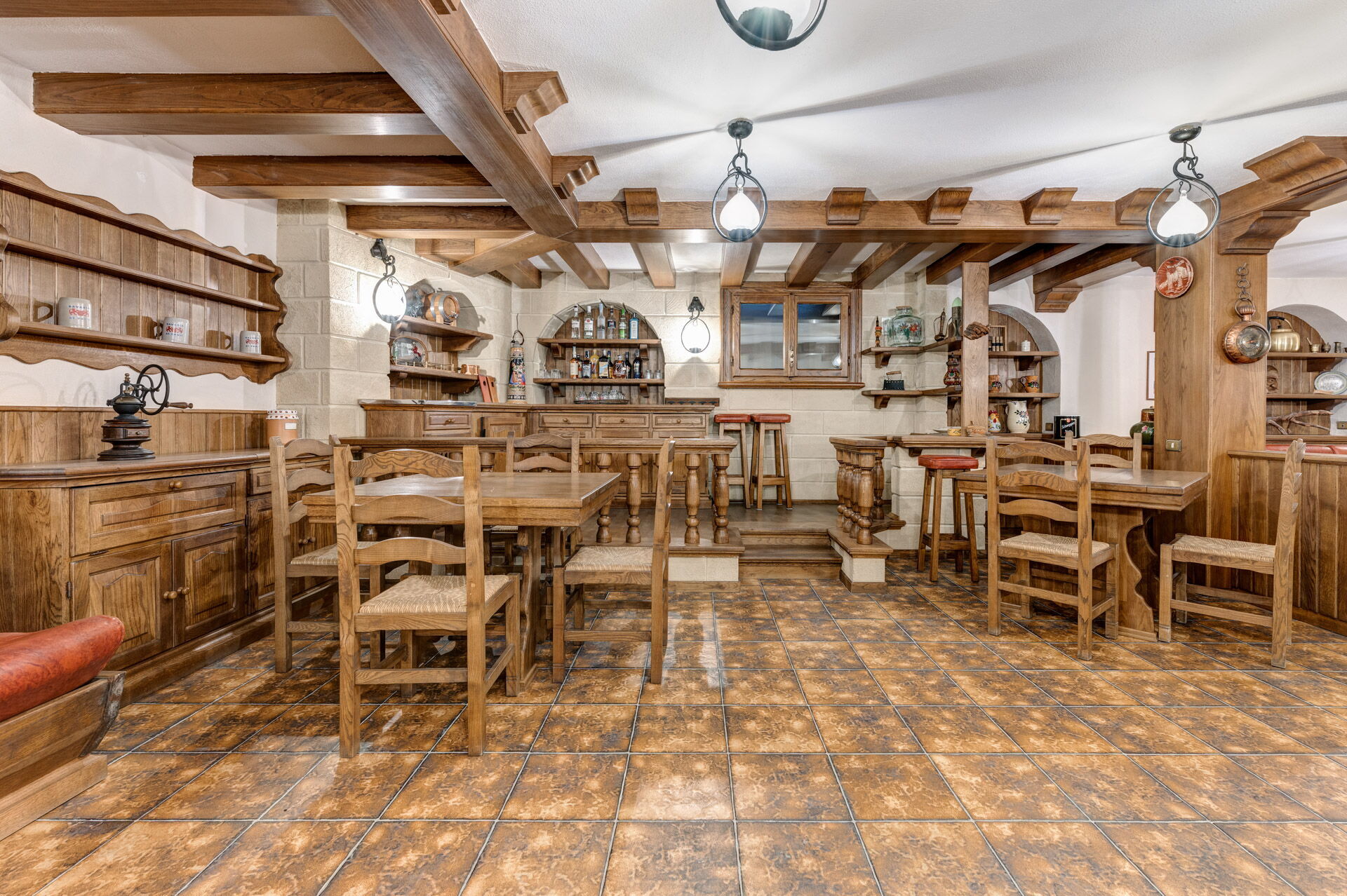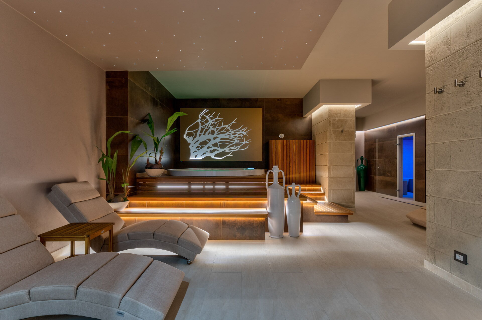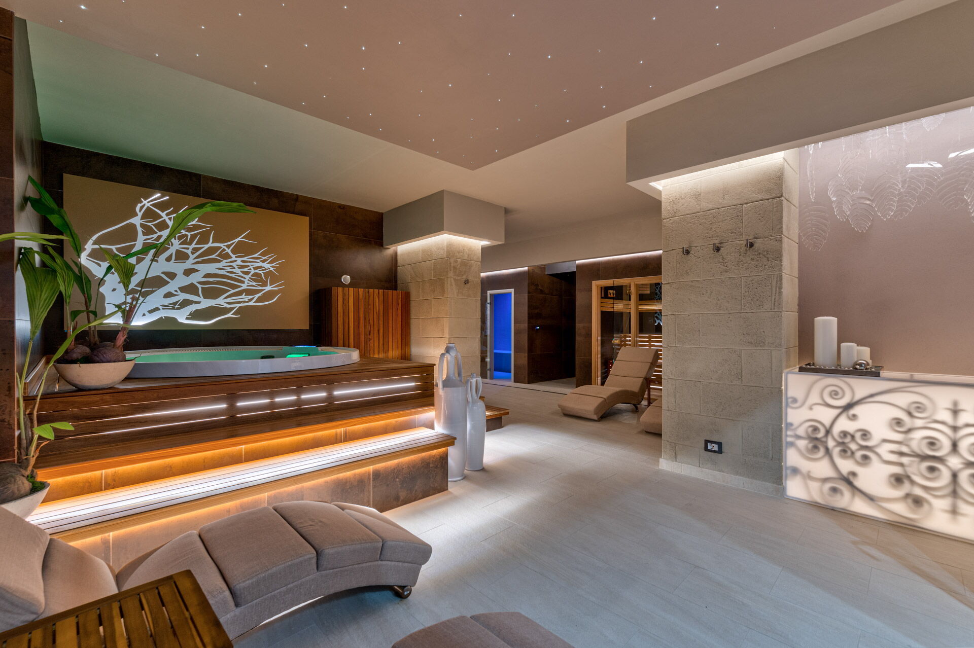 In the basement there are the SPA, the gym, the Thermal area, the Hair Room, the billiard room and the Rustic Lounge.
