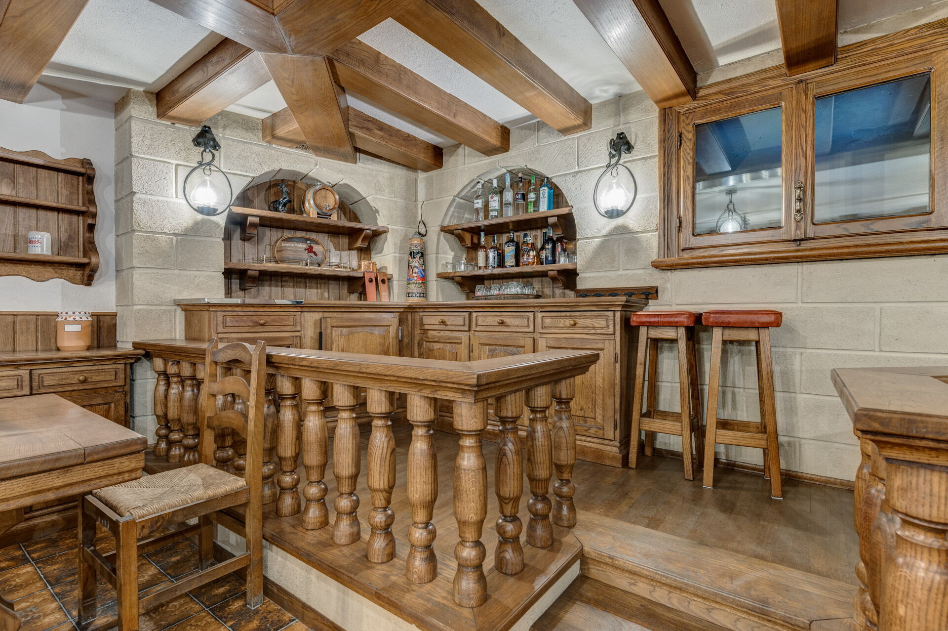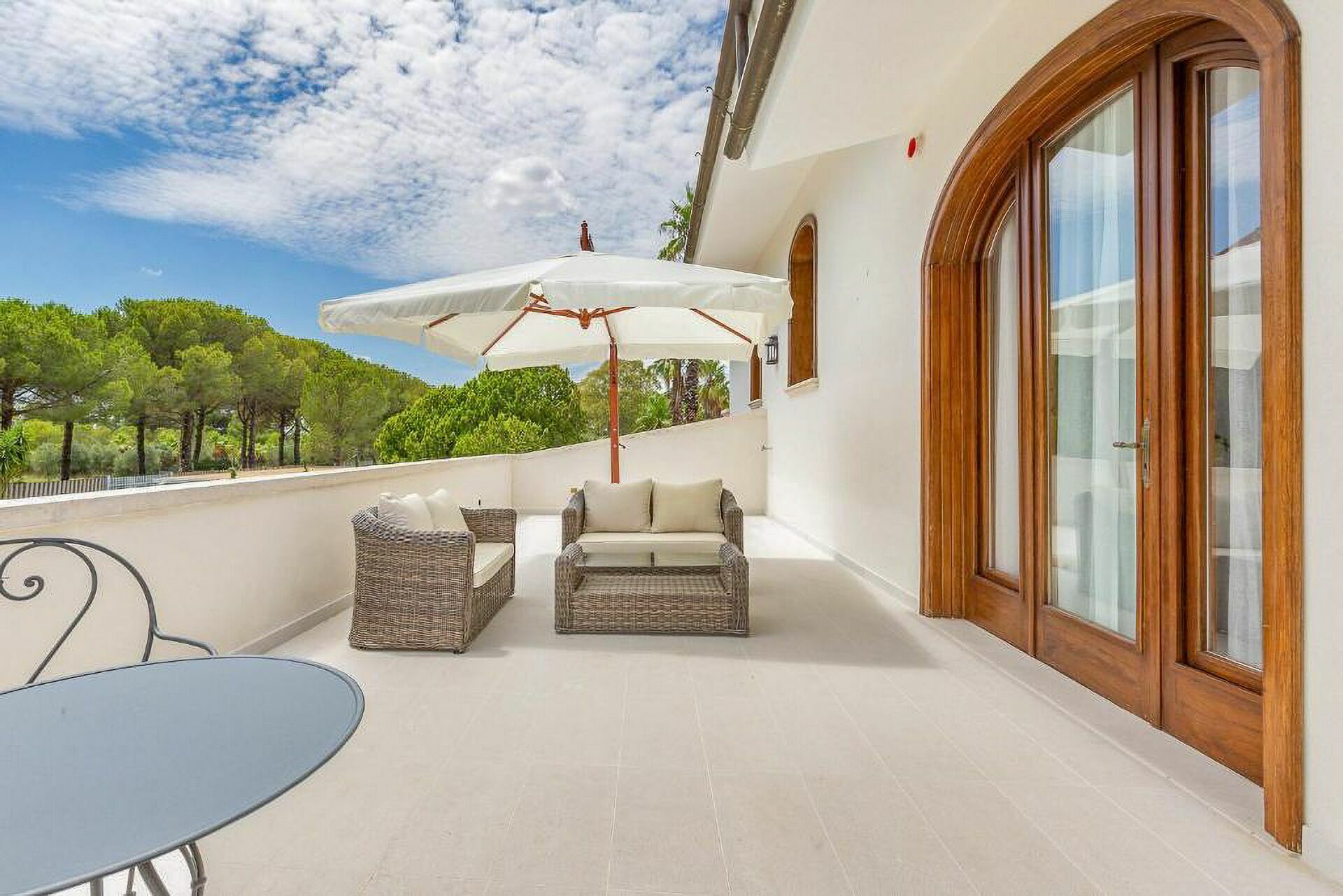 There is a large car park with several covered parking spaces. Villa Oria in Oria is completely fenced, is equipped with a video surveillance system, daily linen change included and daily cleaning. In addition, the villa staff with maid and maids are available for guests.