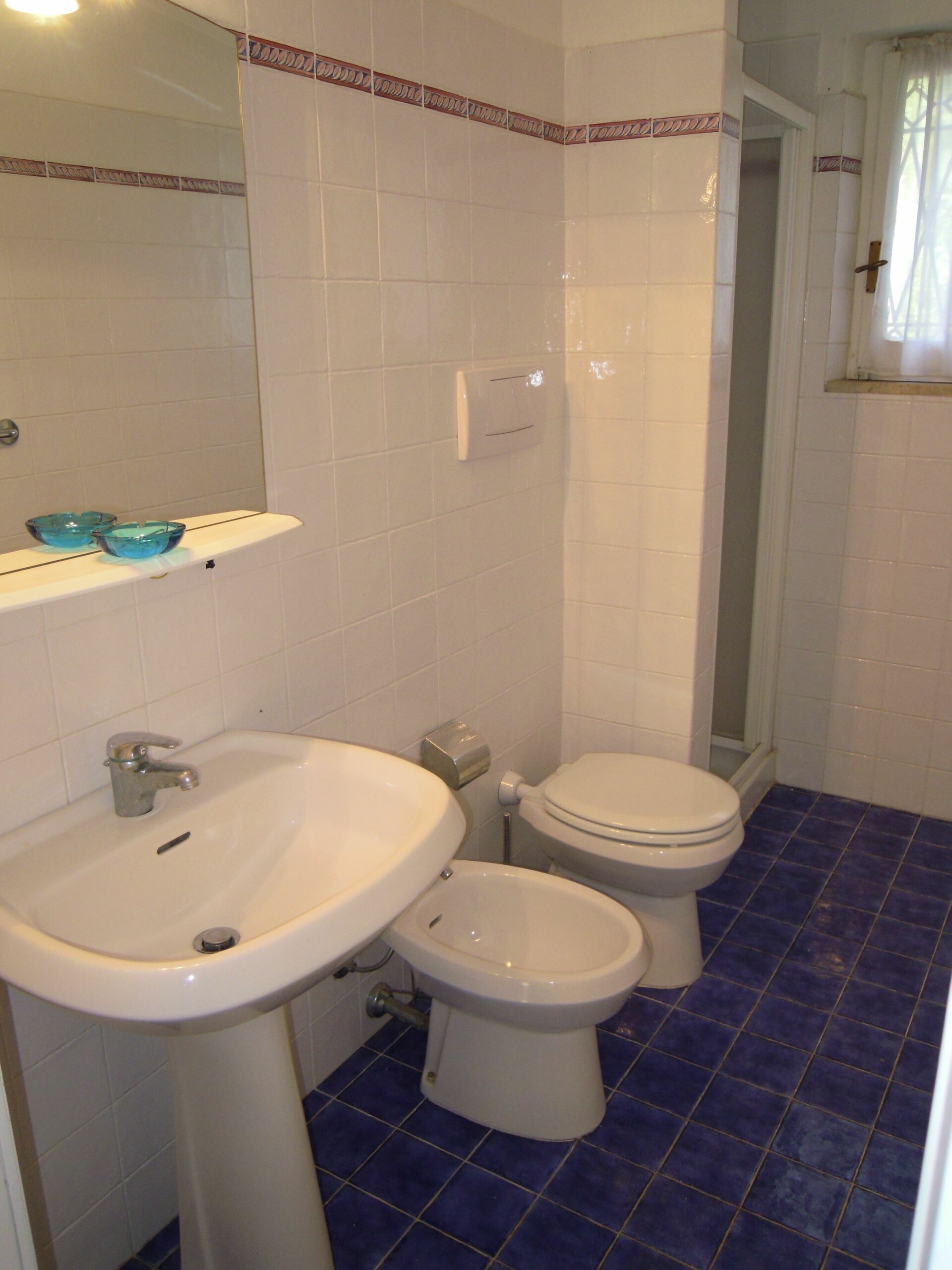 salle de bain: bassin, wc, bidet, douche, sèche-cheveux, lave-linge.