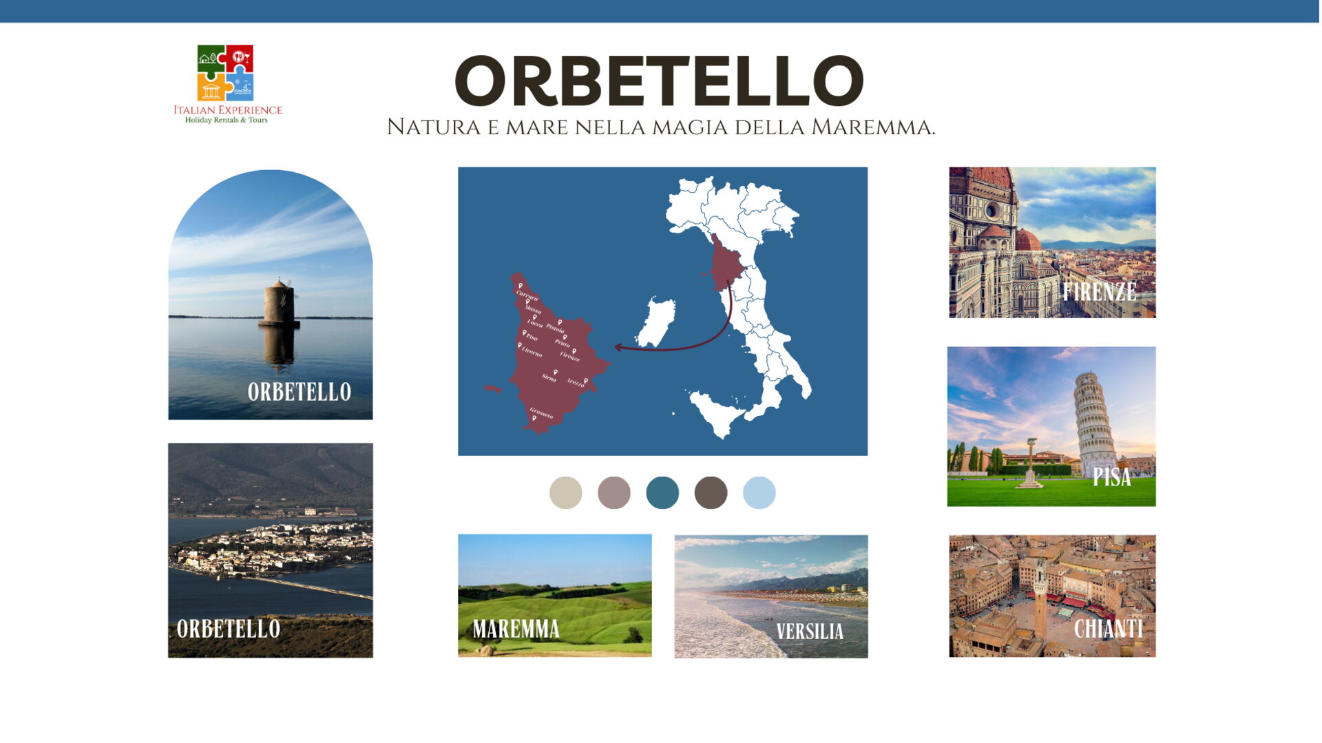 D'autres destinations touristiques importantes que vous devriez envisager de visiter: Florence 182 km, Viareggio 216 km, Forte Dei Marmi 230 km, Rome 160 km, Venise 433 km et Milan 472 km.