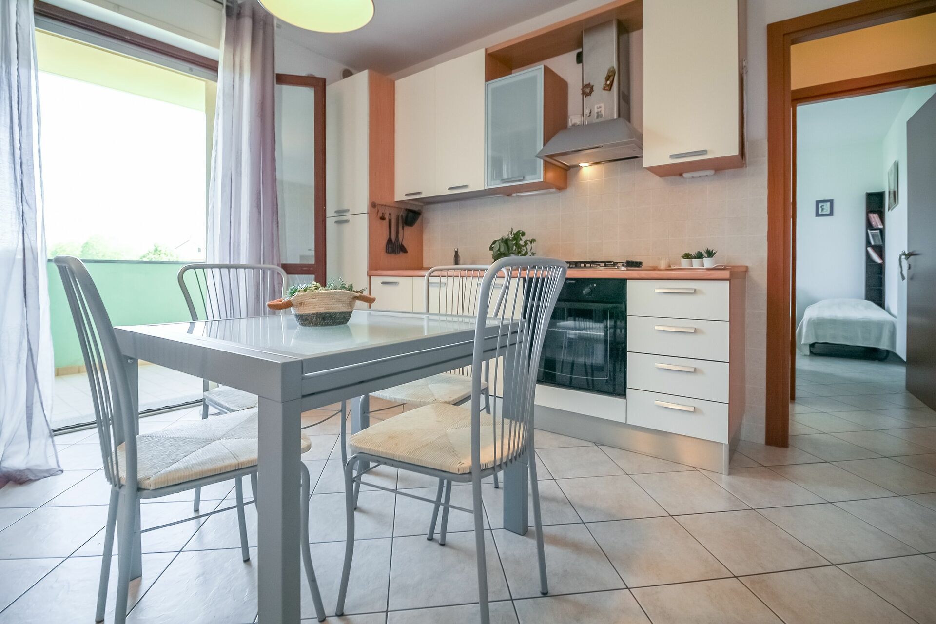 Une fois arrivés à Bellaria Suite Apartment vous trouverez une jolie propriété, propre et bien entretenue, avec vue sur la ville parfaite pour des tranquilles vacances en Émilie Romagne. Peu importe comment vous passez vos journées... visites, visites de musées, shopping ou tout simplement en vous baladant à la campagne, quand vous arrivez à la maison, vous pouvez vous détendre avec votre famille et vos amis et conclure au mieux un autre jour de vacances en Émilie Romagne. Manger avec les amis et la famille est une importante partie de la culture italienne. Profitez de la cuisine bien équipée pour préparer les repas avec des produits locaux pendant vos vacances. La cuisine comprend machine à café, grille-pain, cuisinière et réfrigérateur, ainsi que, abondance de vaisselle et couverts pour un maximum de quatre personnes. Dînez «al fresco» comme un vrai italien, le balcon entièrement meublé est le cadre parfait pour apprécier la cuisine, s'amuser en famille, et profiter du jolie beau temps italien.