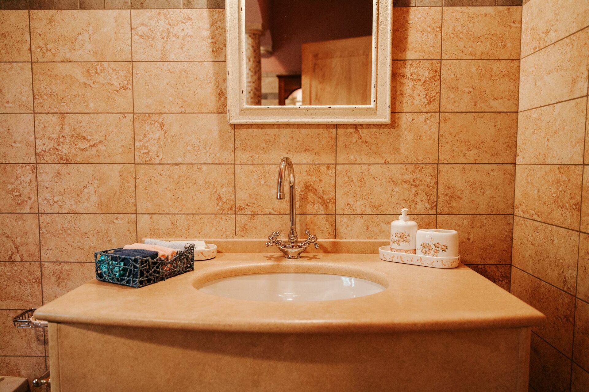 chambre avec salle de bain 3: lit double, internet WIFI, tv satellitaire, fauteuil, bureau, bassin, wc, bidet, douche, sèche-cheveux.