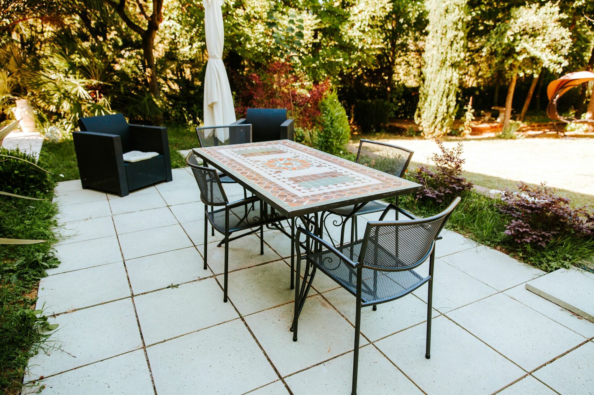 patio: espace extérieur pour les repas en plein air, table à manger, barbecue, internet WIFI, meuble de jardin, meuble de terrace, chaise longue.