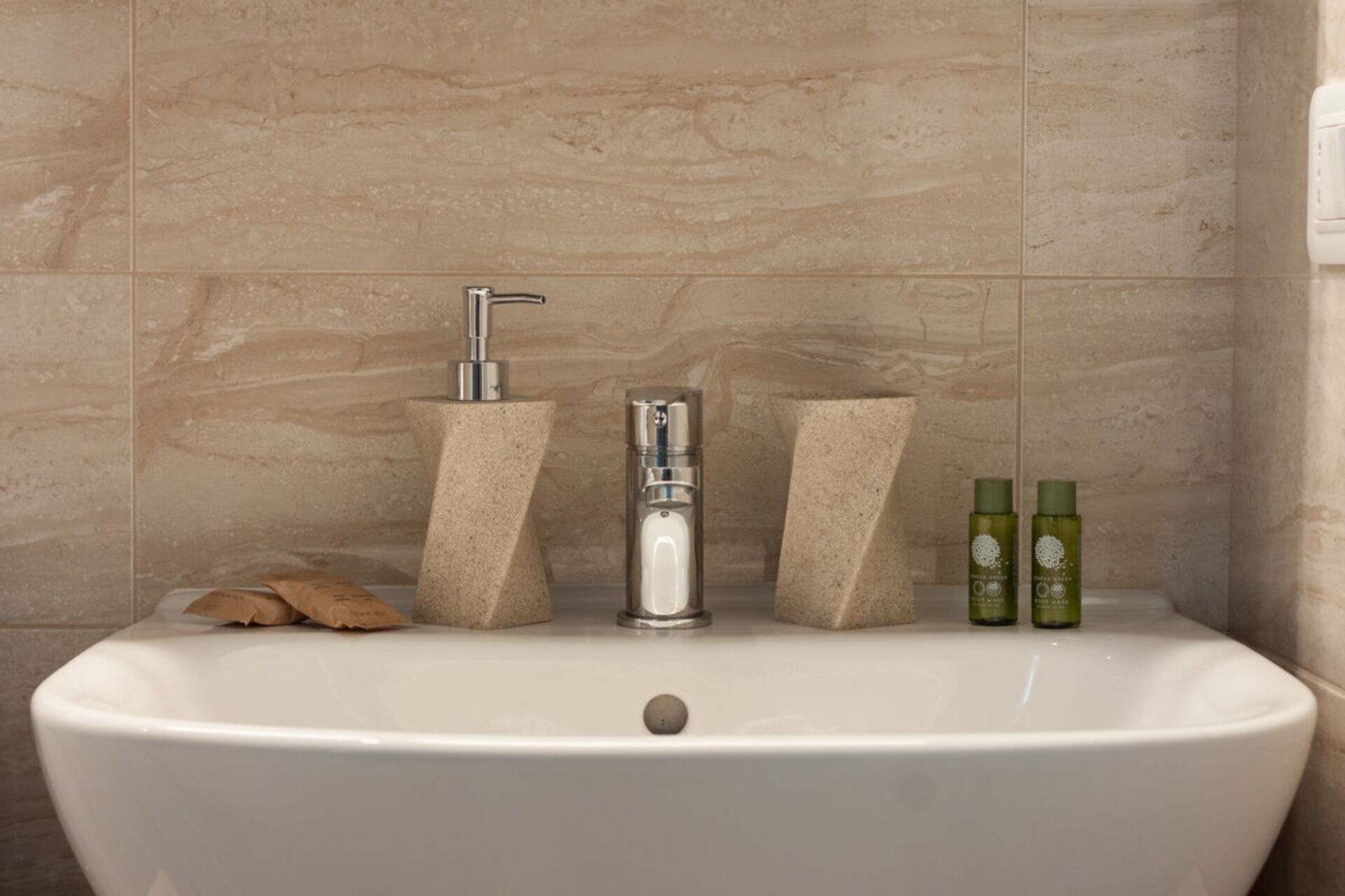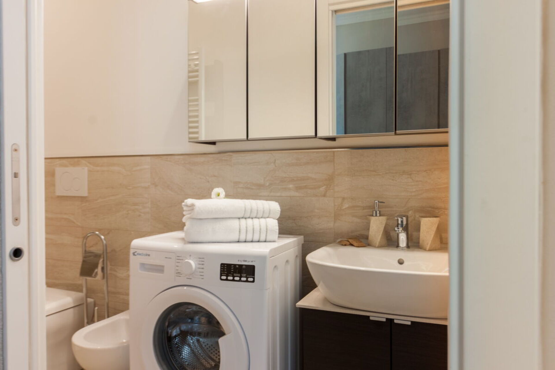 salle de bain: bassin, wc, bidet, douche, sèche-cheveux, lave-linge.
