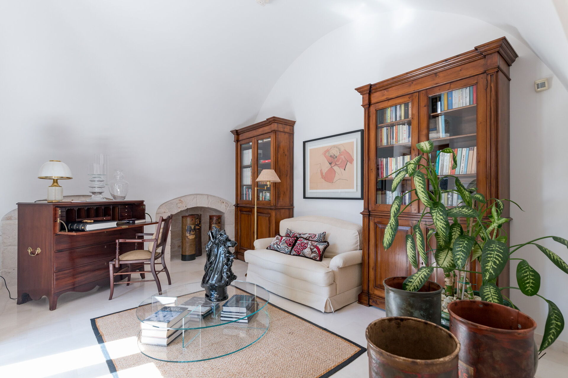 The entrance opens to the large and bright living room with three sofas, a fireplace and a spacious table, which leads to the kitchen, already equipped with dishes and appliances. Here, on the ground floor, there is the first of the four bedrooms, which inside houses a Jacuzzi, next to which there is a bathroom with shower. In addition, you can enjoy a bright and classic relaxation/reading room.
