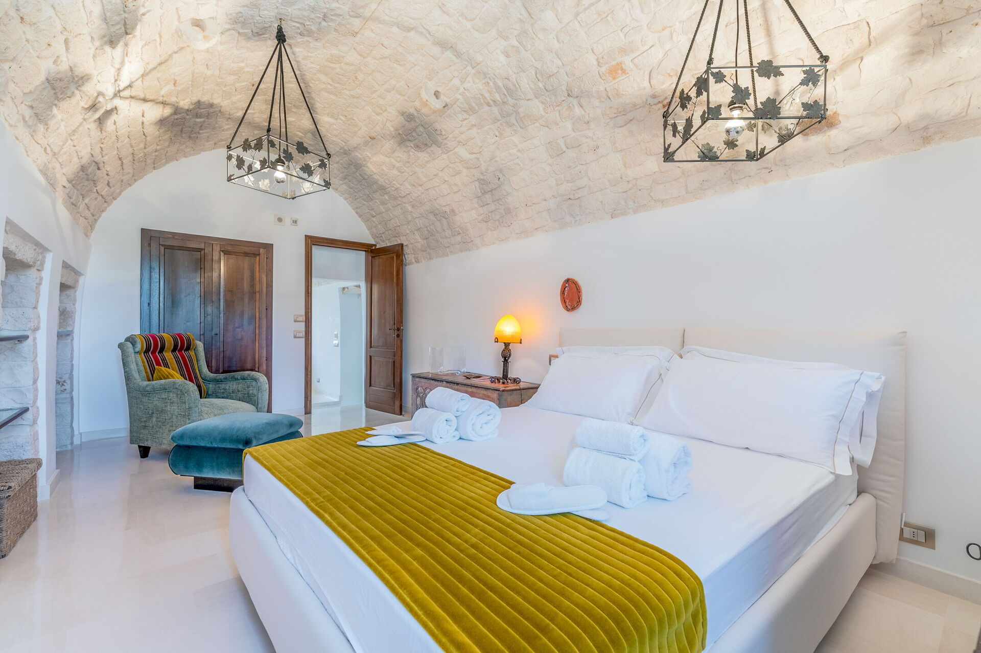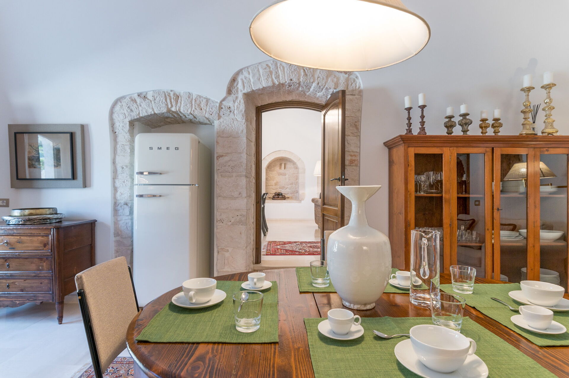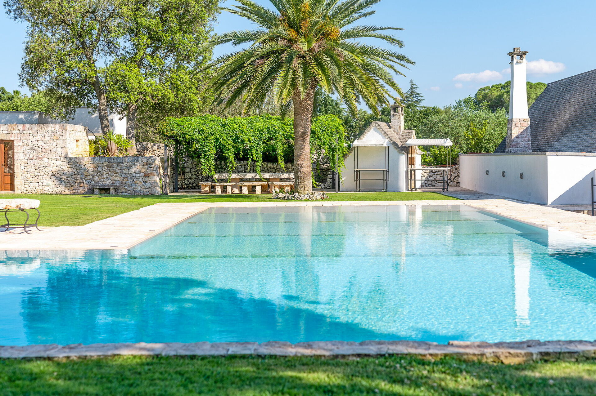 Masseria Della Croce is a villa for rent with swimming pool typical of rural houses of the Apulian tradition. It can accommodate up to 8 people in 4 bedrooms and is equipped with 3 bathrooms with shower and a large outdoor area, attention to detail.
