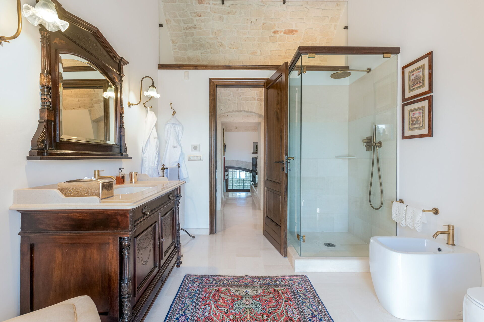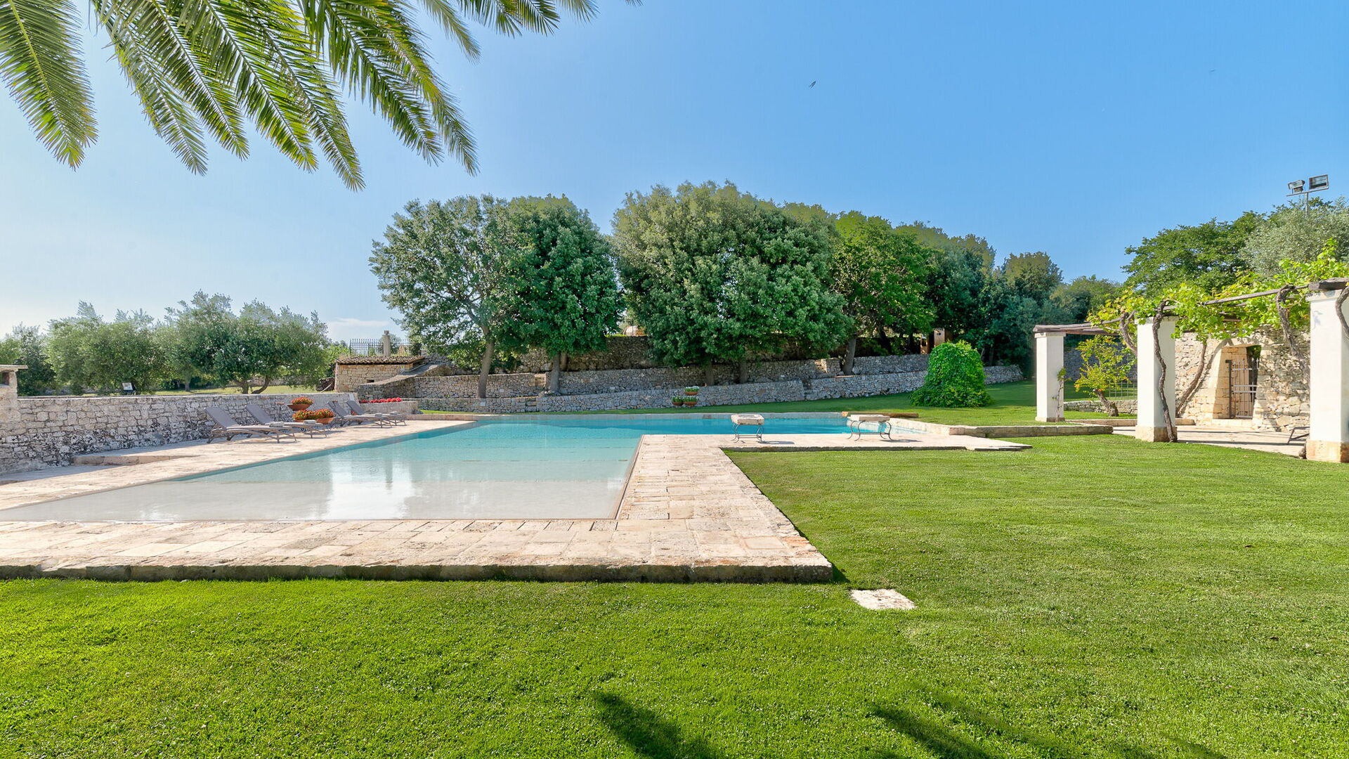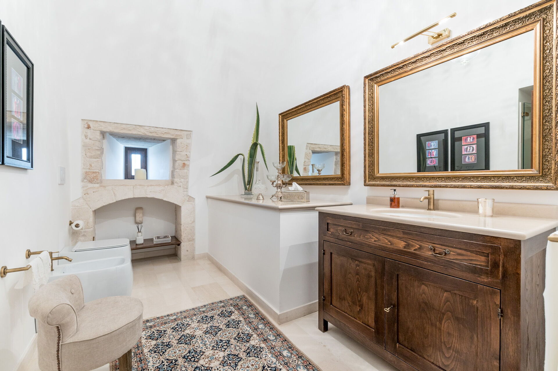 Masseria Della Croce is a villa for rent with swimming pool typical of rural houses of the Apulian tradition. It can accommodate up to 8 people in 4 bedrooms and is equipped with 3 bathrooms with shower and a large outdoor area, attention to detail.