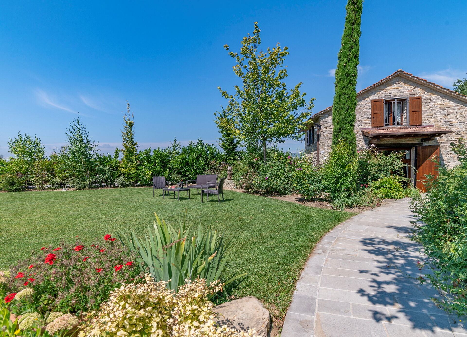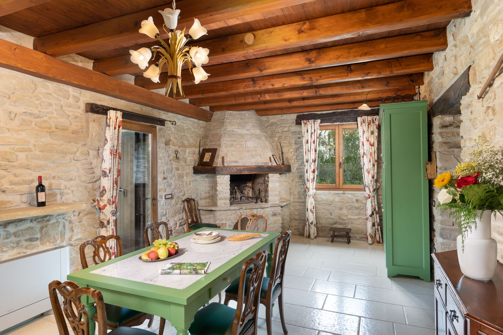 A very nice, spacey but cosy and well-equipped house beautifully located in the Tuscany nature. Excellent views. Kitchens are great for joint food preparation. Rooms and bathrooms are beautiful. There is a lot to do both at and around the house (playing pool, ping pong, the swimming pool, various games etc. Hiking, visiting nearby small cities, bathing in the rivers etc. ). Some may find it a bit distant from good shopping facilities (especially because the best access road is currently blocked during now 3 years), but with some planning and 'mega shopping', you can manage that. Absolutely recommendable for the big family or group. We were 18 family members and had a great time.