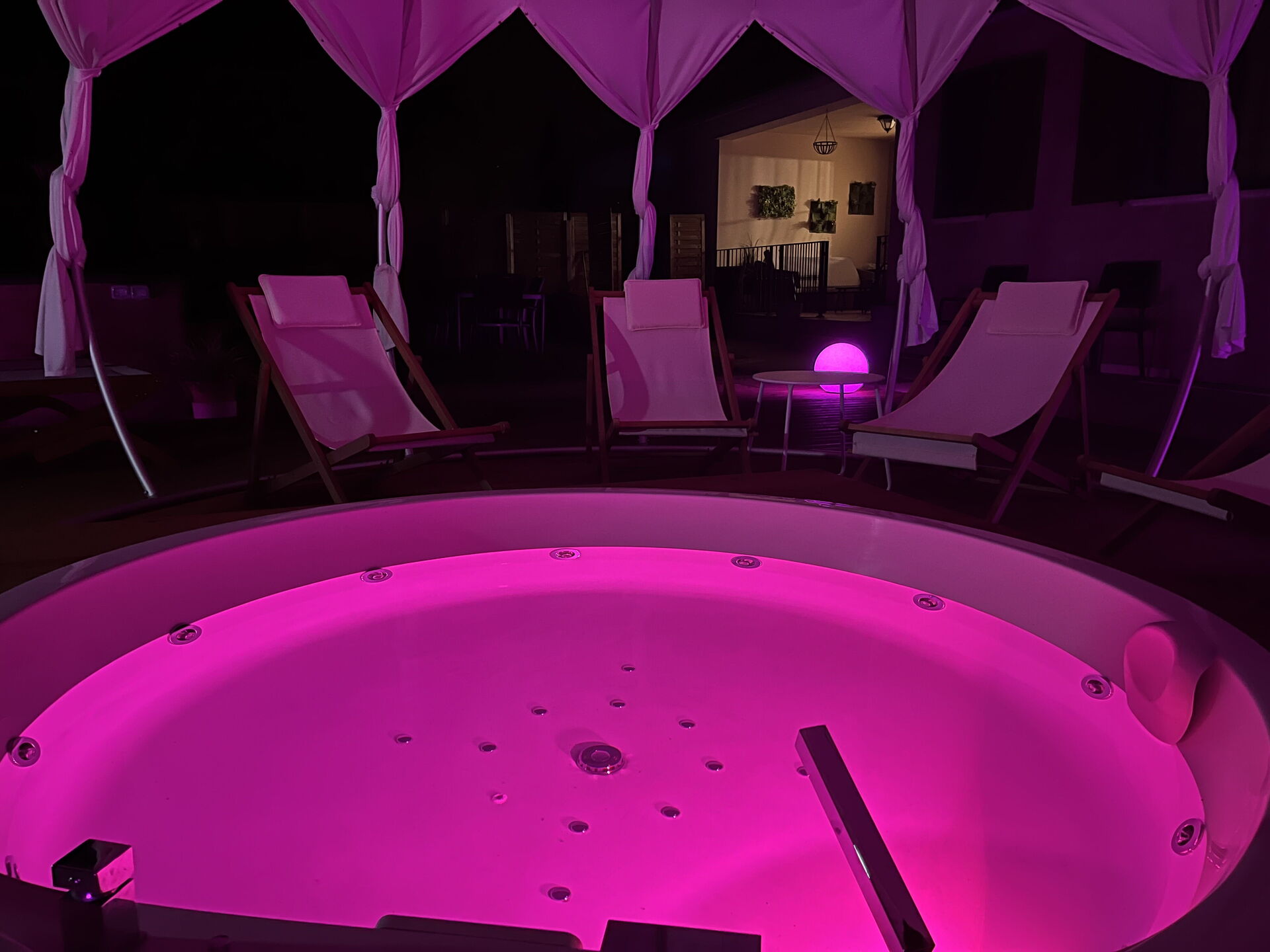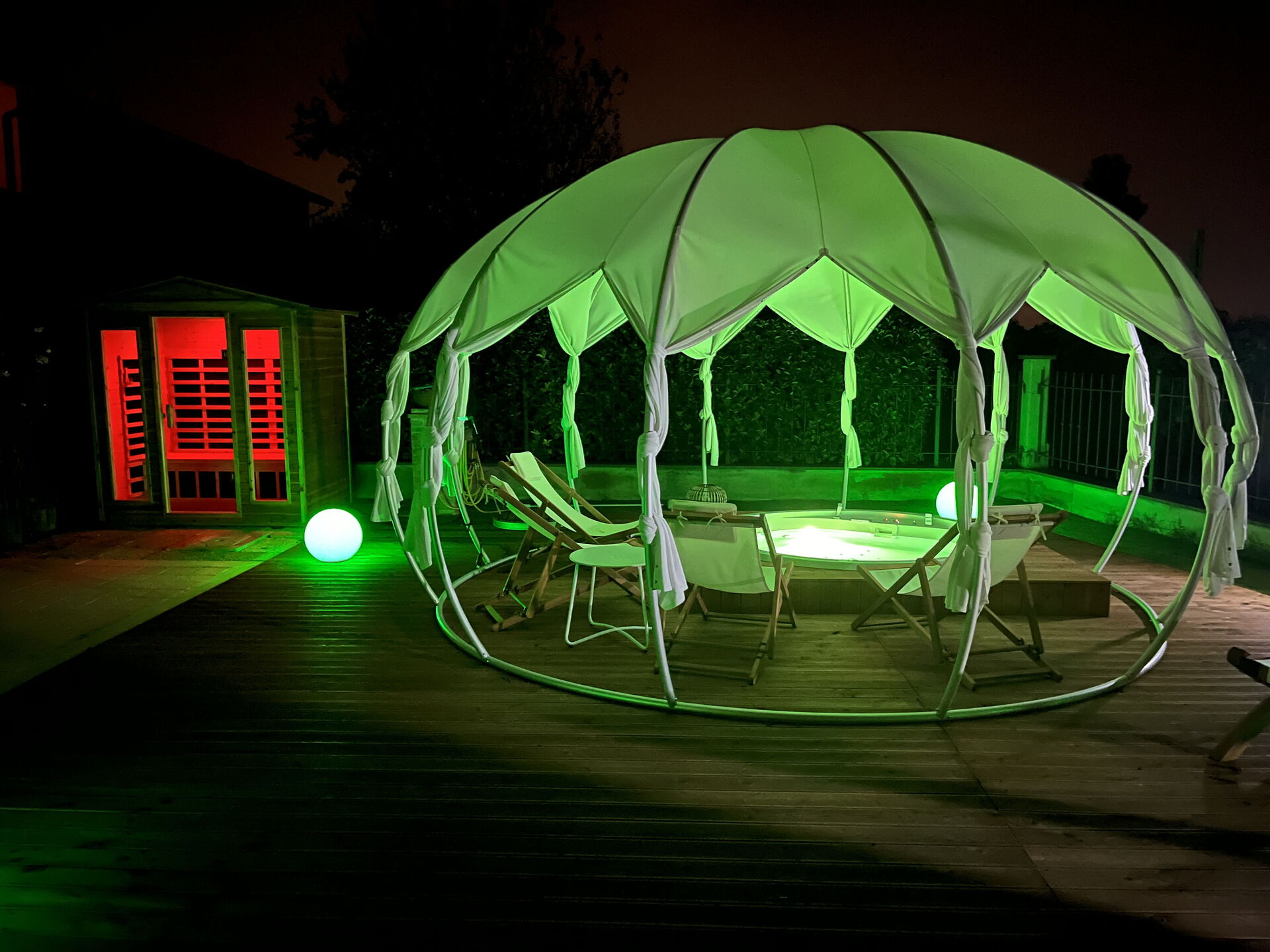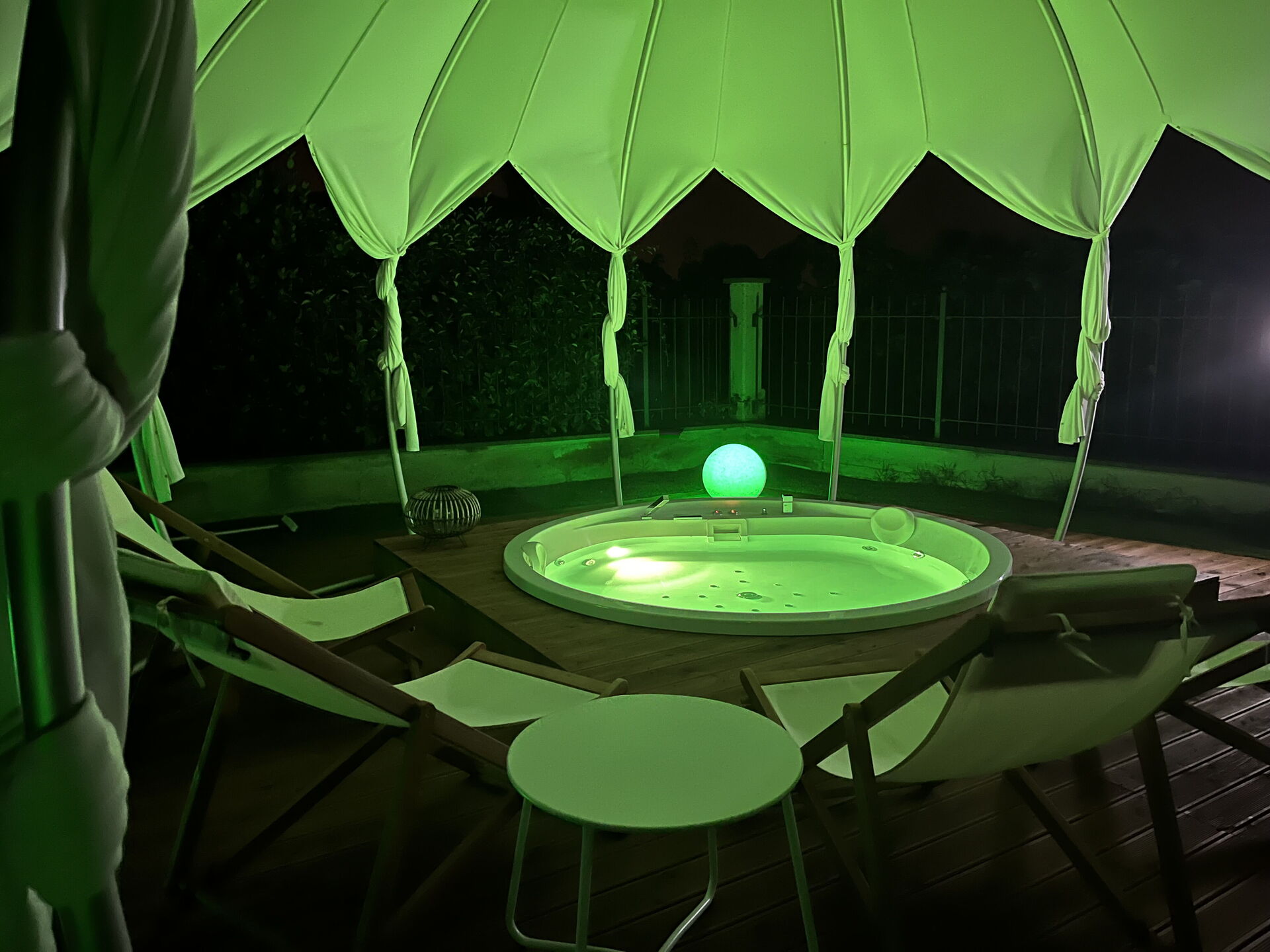 jardin (200 m2): bain à remous extérieur (largeur: 4m, longueur: 4m), douche, internet WIFI, barbecue, table à manger, pavillon, meuble de jardin, chaise longue, propriété clôturée, aire de jeux pour les enfants.