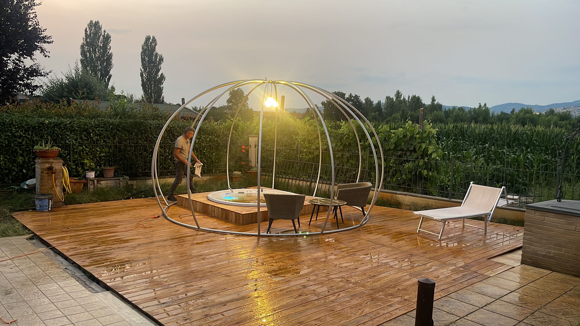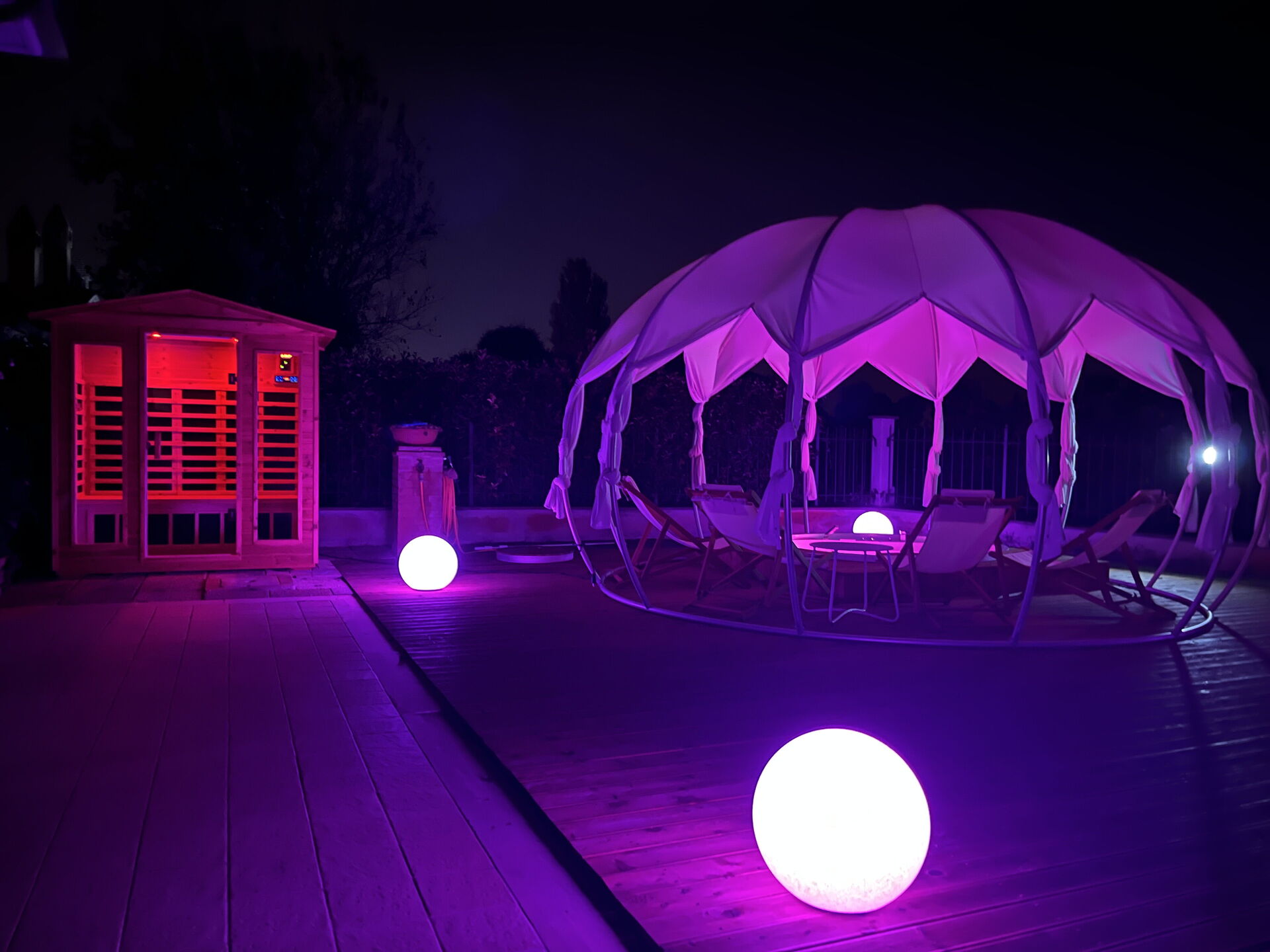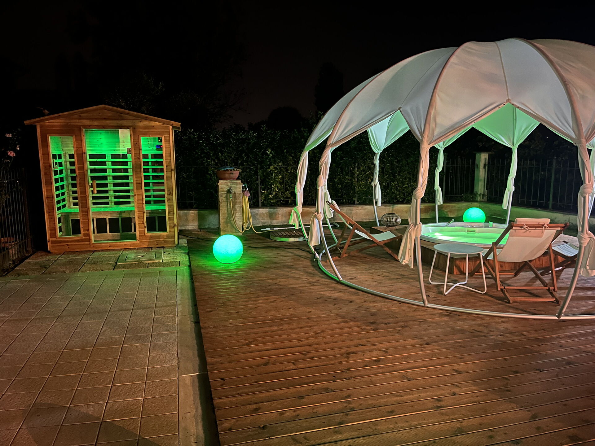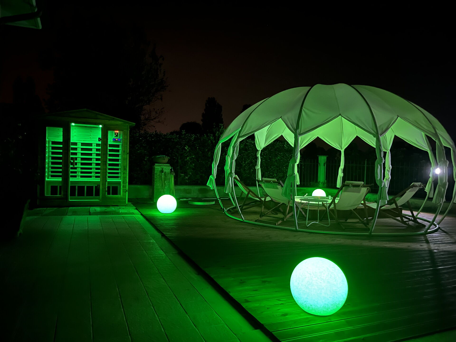 jardin (200 m2): bain à remous extérieur (largeur: 4m, longueur: 4m), douche, internet WIFI, barbecue, table à manger, pavillon, meuble de jardin, chaise longue, propriété clôturée, aire de jeux pour les enfants.