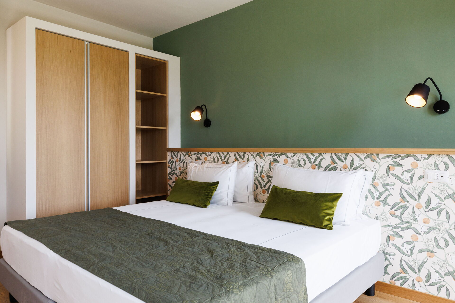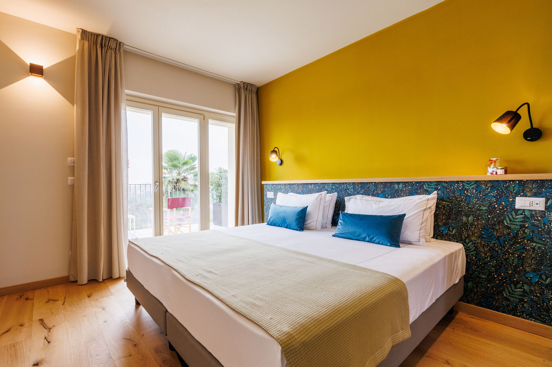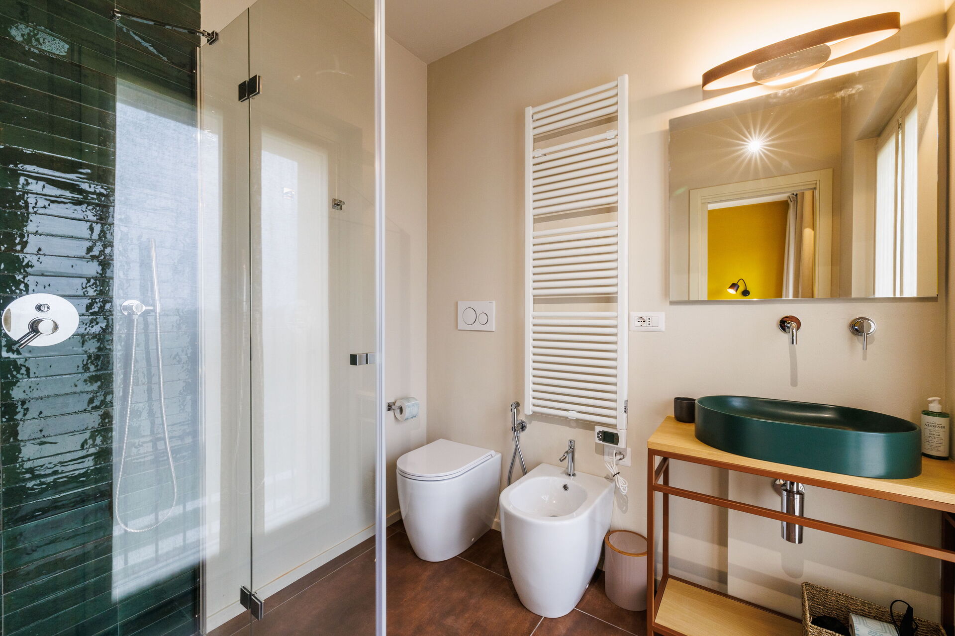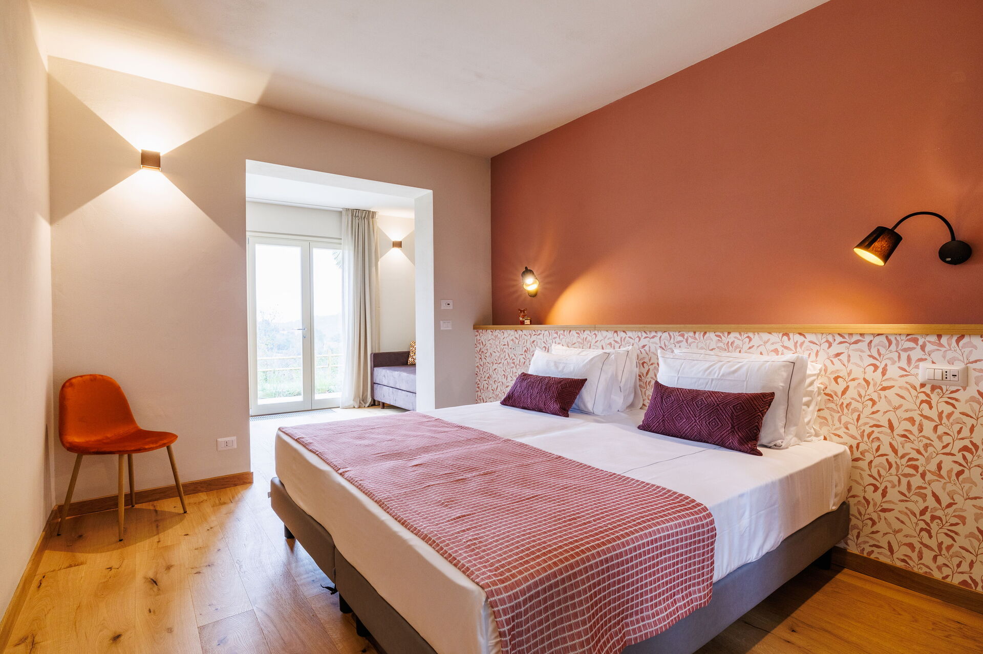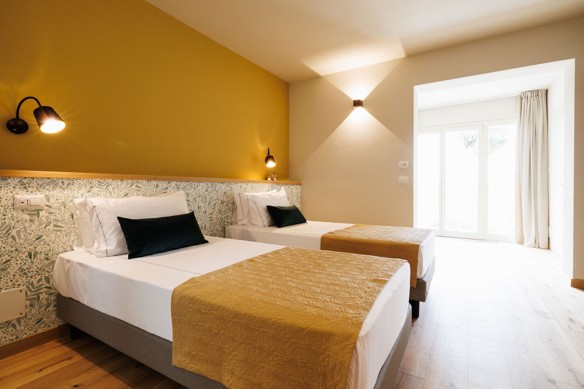chambre avec salle de bain 7: lit double, deux lits à une place, internet WIFI, climatisation, bassin, wc, bidet, douche, sèche-cheveux, galerie.