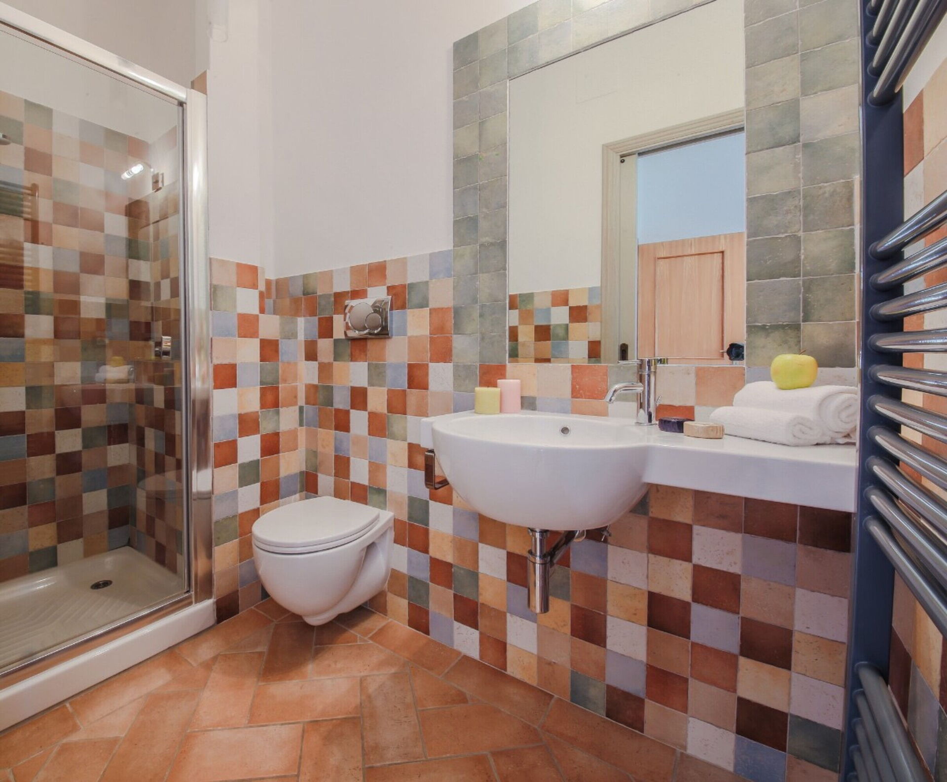 salle de bain 1: bassin, wc, bidet, douche.