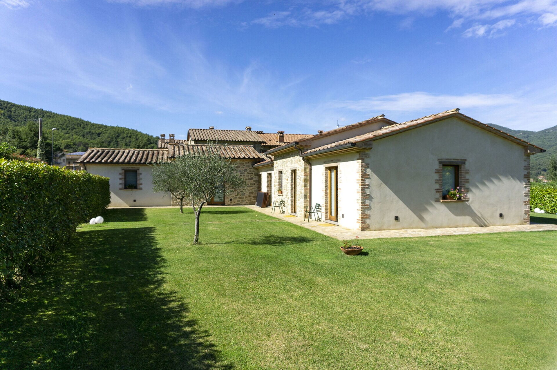 à l'arrivée vous serez reçus par le propriétaire, ou une personne de sa confiance, et vous trouverez une jolie propriété, propre et bien entretenue, idéale pour des vacances calmes en Ombrie. Après une active journée de visites, passez du temps avec la famille et les amis en bord de piscine en dégustant un verre de vin, un moyen idéal pour vous délasser à la fin de la journée. Il y a une cuisine y compris machine à café et réfrigérateur, ainsi que, assez de vaisselle et couverts jusqu'à 24 personnes. Si vous préférez dîner «al fresco», il y a à votre disposition un jardin où vous pourrez profiter du beau temps tout en mangeant en plein air.