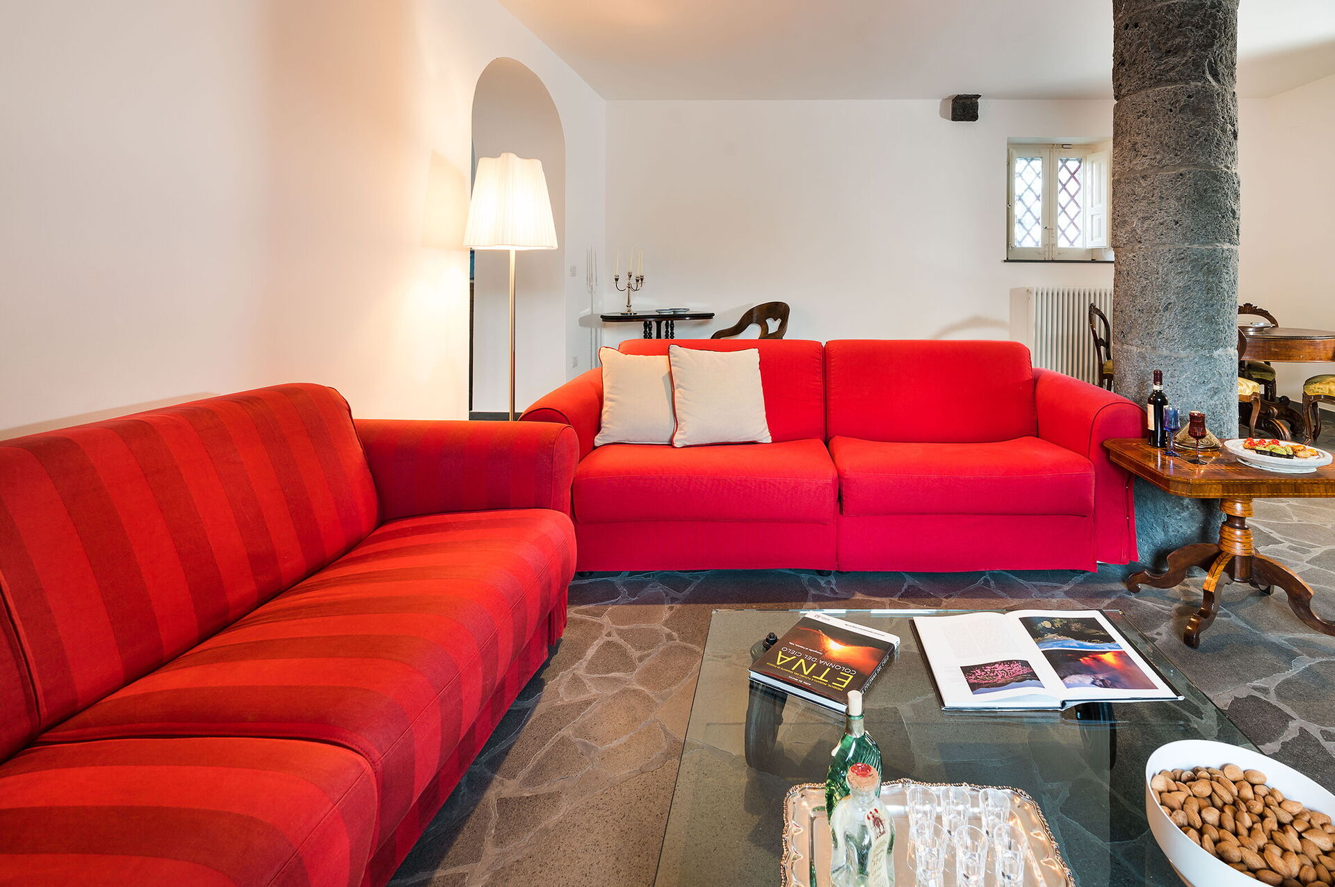 Dimora Vulcano - Castiglione Di Sicilia, Sicilia est une jolie structure (300 mètres carrés) avec climatisation, piscine privée et internet sans fils. La propriété peut accueillir comfortablement jusqu'à huit personnes dans quatre chambres à coucher avec cinq salles de bain. La maison de vacances Dimora Vulcano - Castiglione Di Sicilia, Sicilia est située 8 km de Castiglione Di Sicilia, Italie, et à seulement 38 km de Taormina dans la région touristique de "Sicile Côte Est". Si vous souhaitez visiter la magnifique côte italienne, la propriété est juste à une courte distance de la mer (25 km).