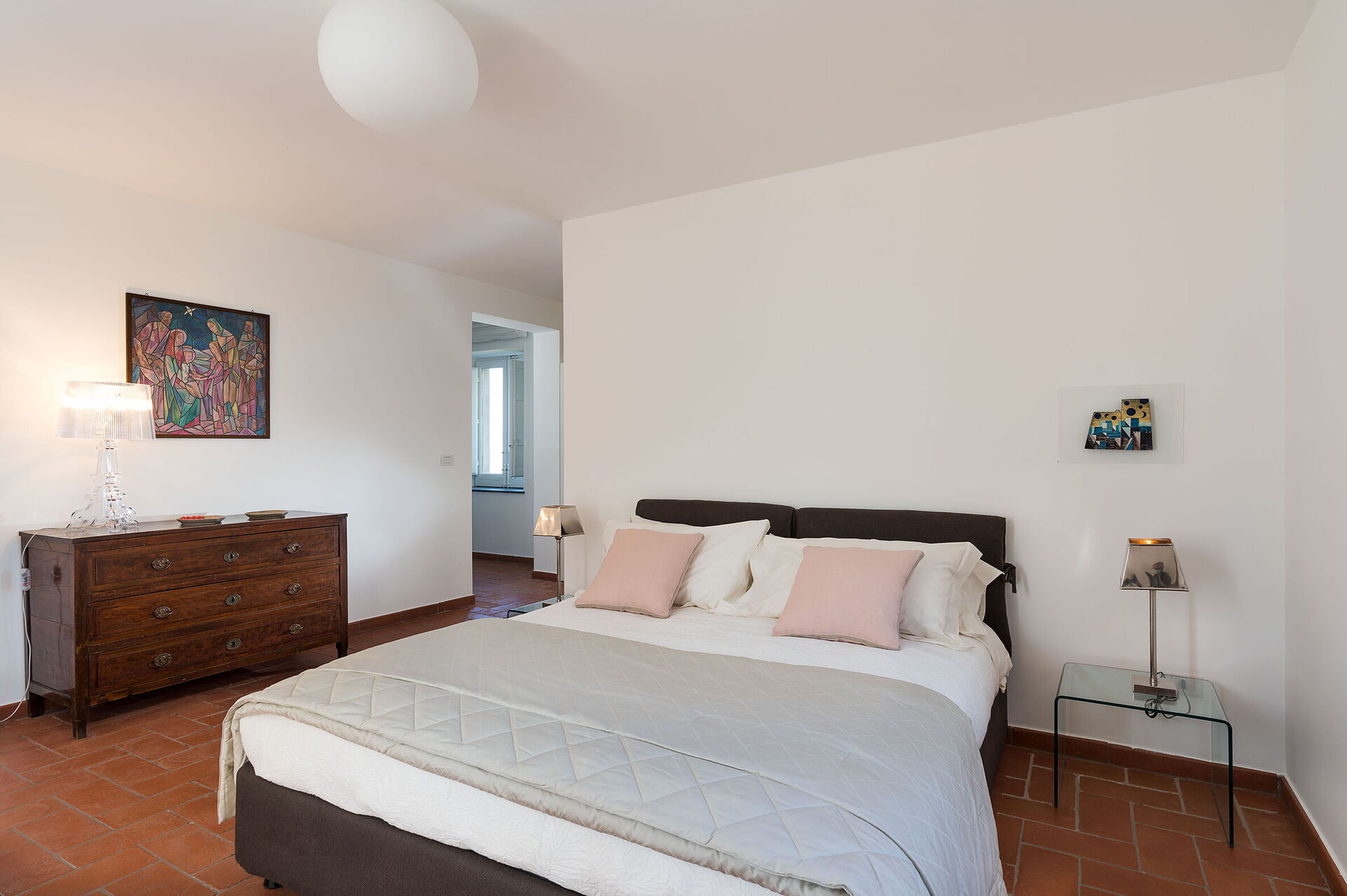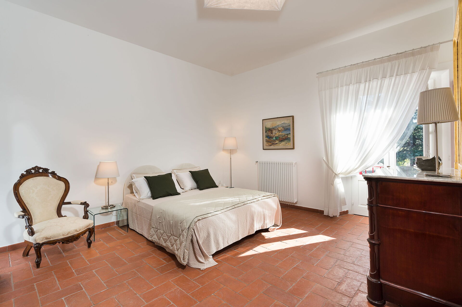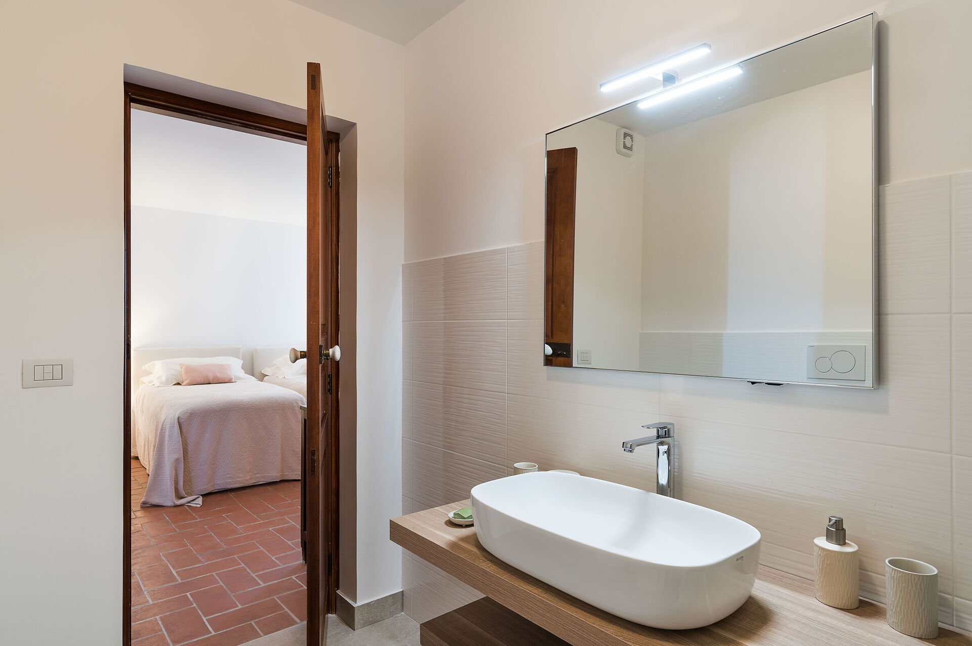 chambre avec salle de bain 1: lit double, lit de bébé, internet WIFI, internet, climatisation, fauteuil, bassin double, wc, bidet, douche, sèche-cheveux, lave-linge, sortie sur la terrasse.