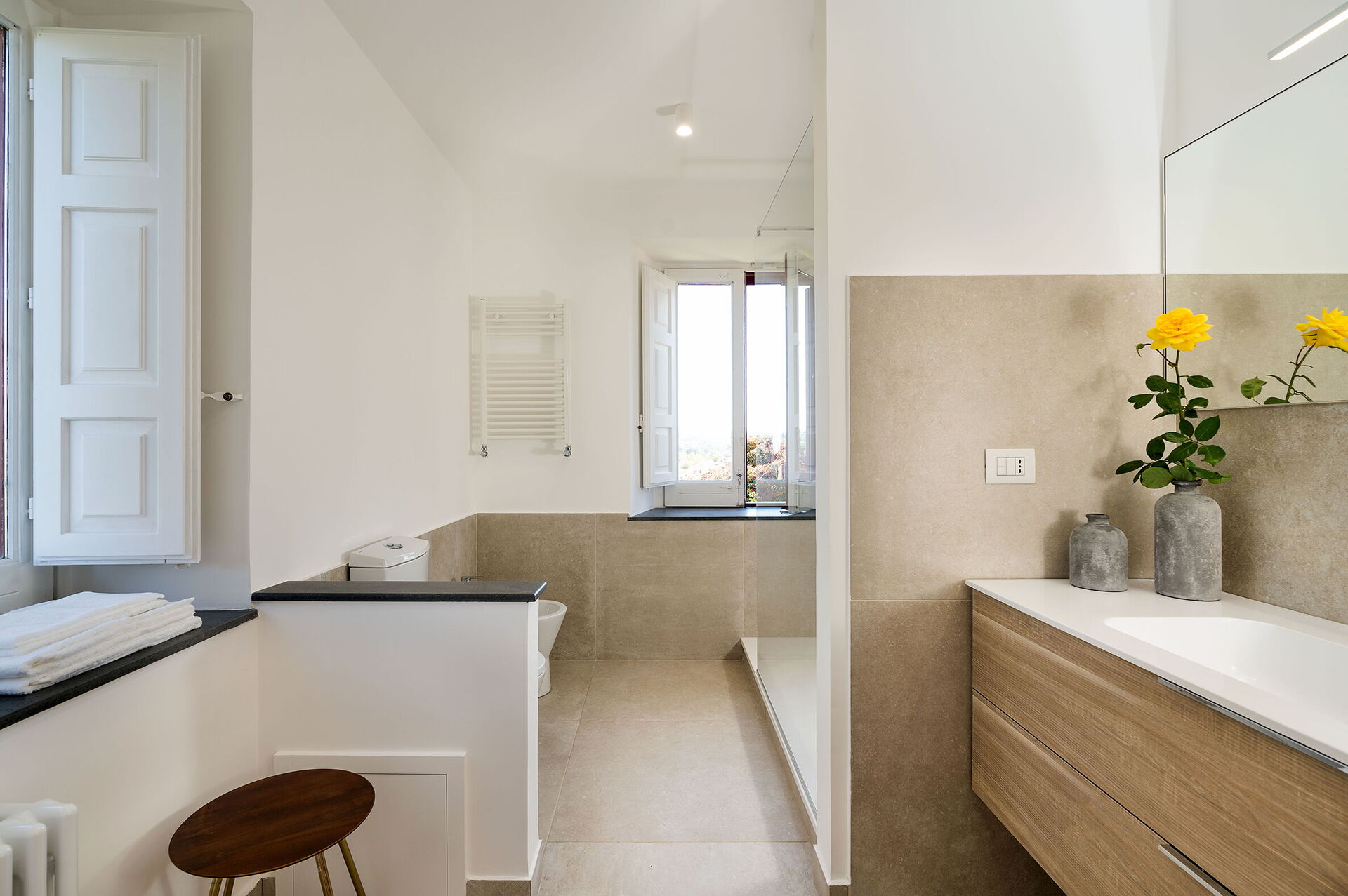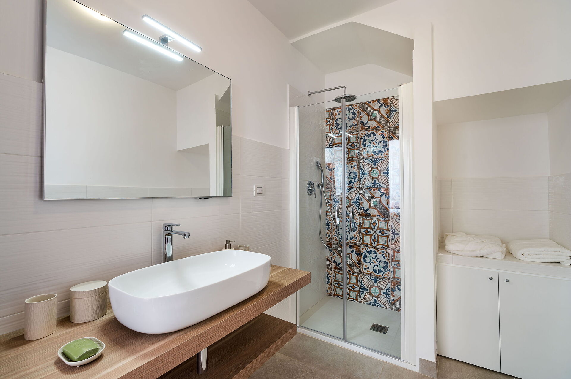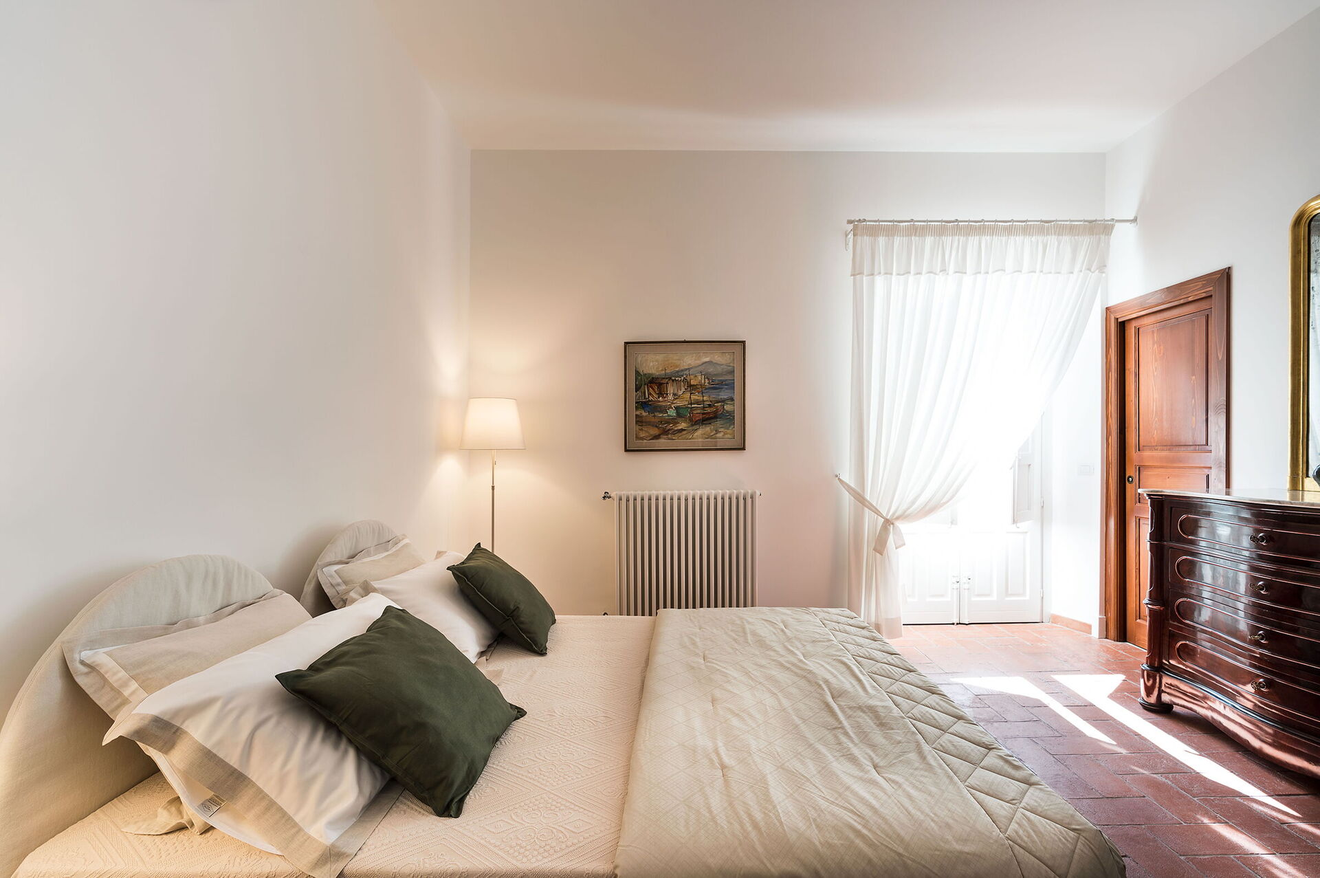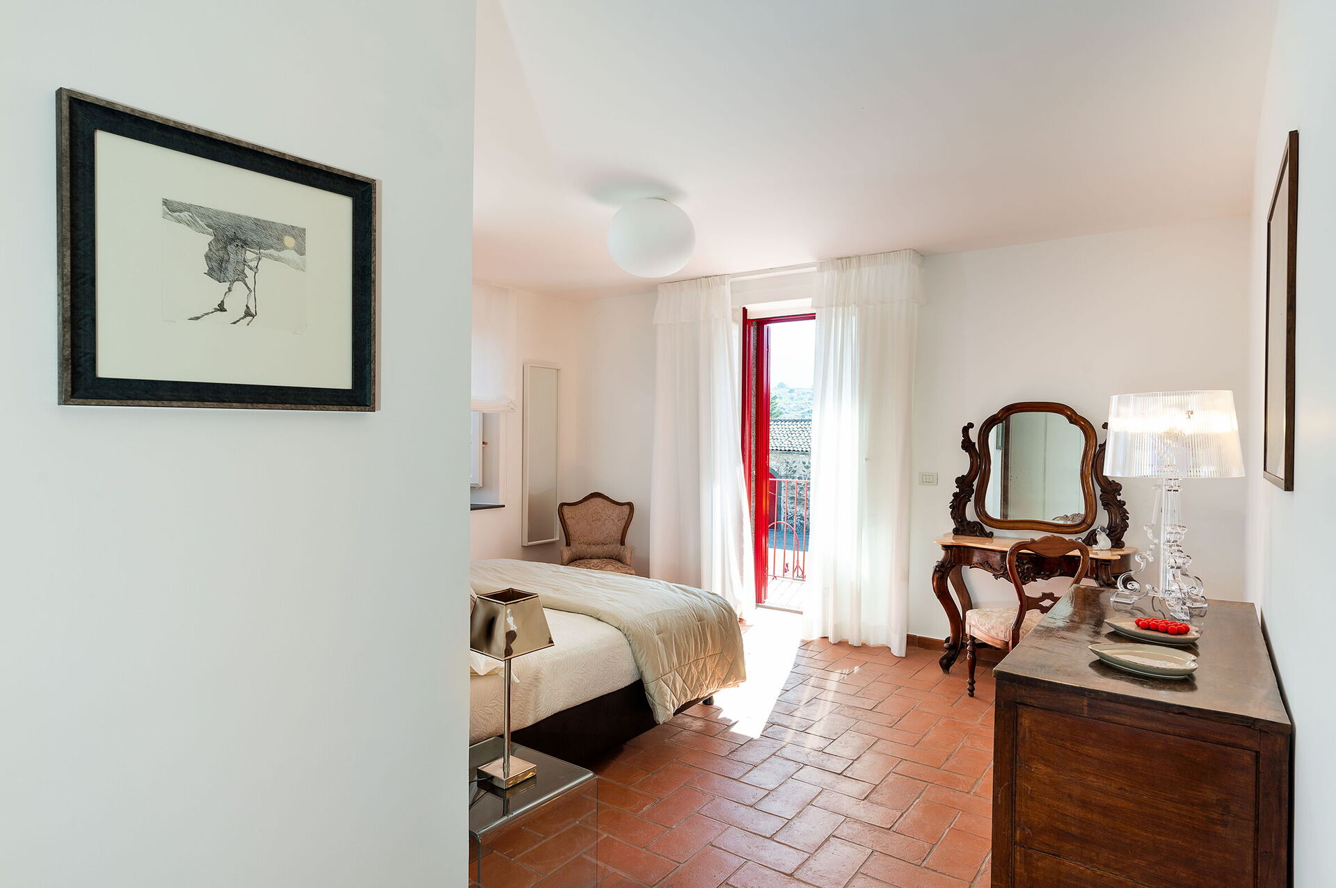 chambre avec salle de bain 1: lit double, lit de bébé, internet WIFI, internet, climatisation, fauteuil, bassin double, wc, bidet, douche, sèche-cheveux, lave-linge, sortie sur la terrasse.