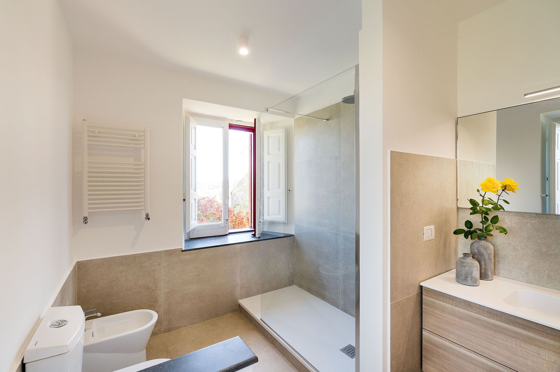 chambre avec salle de bain 3: deux lits à une place, internet WIFI, internet, climatisation, fauteuil, bassin, wc, bidet, douche.