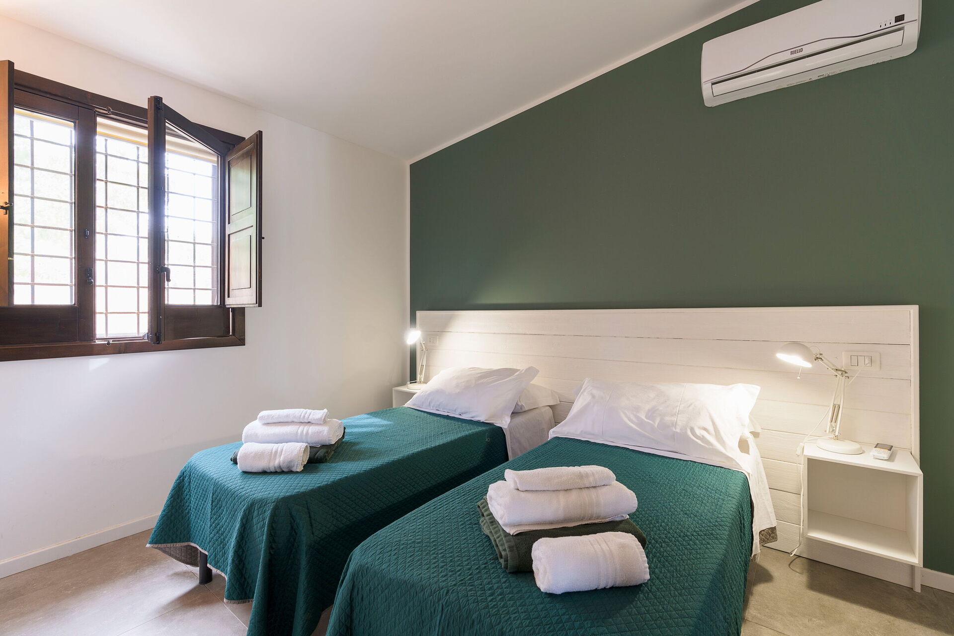 chambre avec salle de bain: deux lits à une place, internet WIFI, internet, climatisation, moustiquaires, télévision, bassin, wc, bidet, douche.
