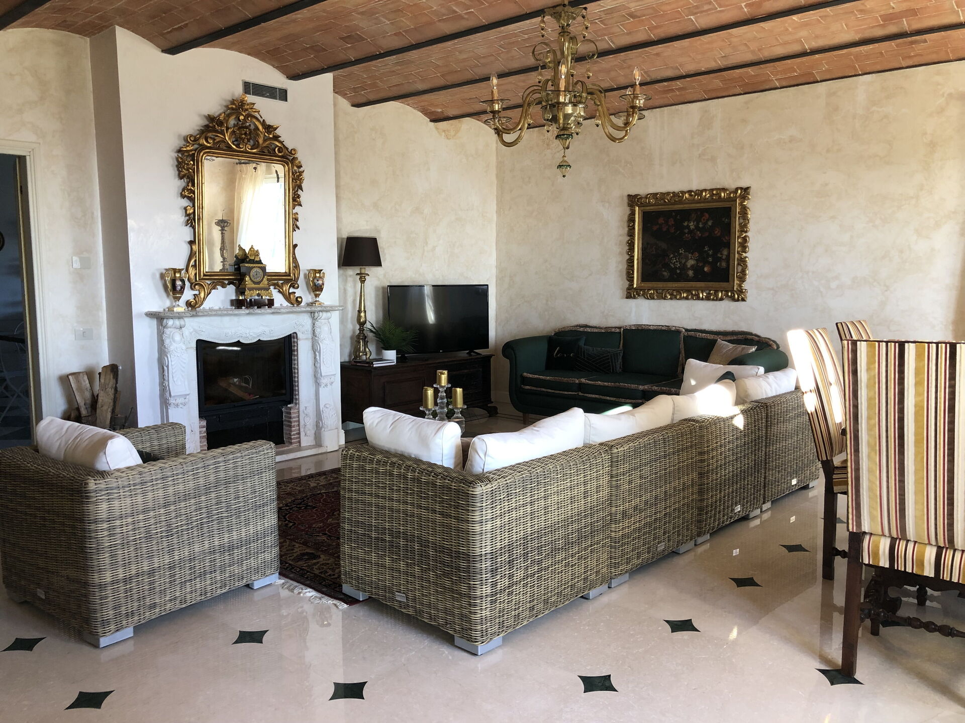 Salon: canapé, fauteuil, cheminée, table à manger, internet WIFI, climatisation, tv satellitaire, télévision, sortie sur le jardin, sortie sur le patio.
