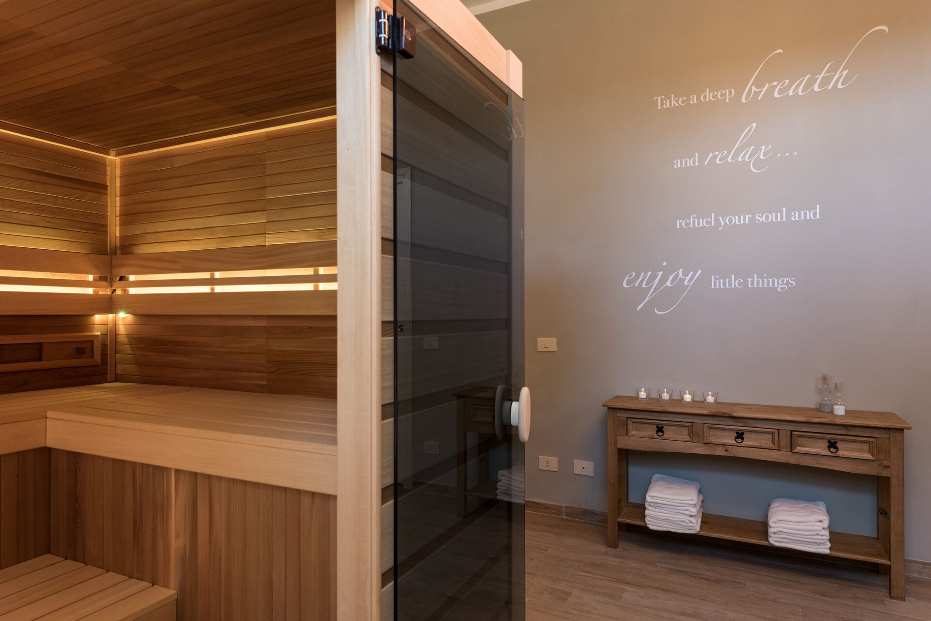 espace bien-être: sauna, trois chaises longues, climatisation, internet WIFI, hammam.