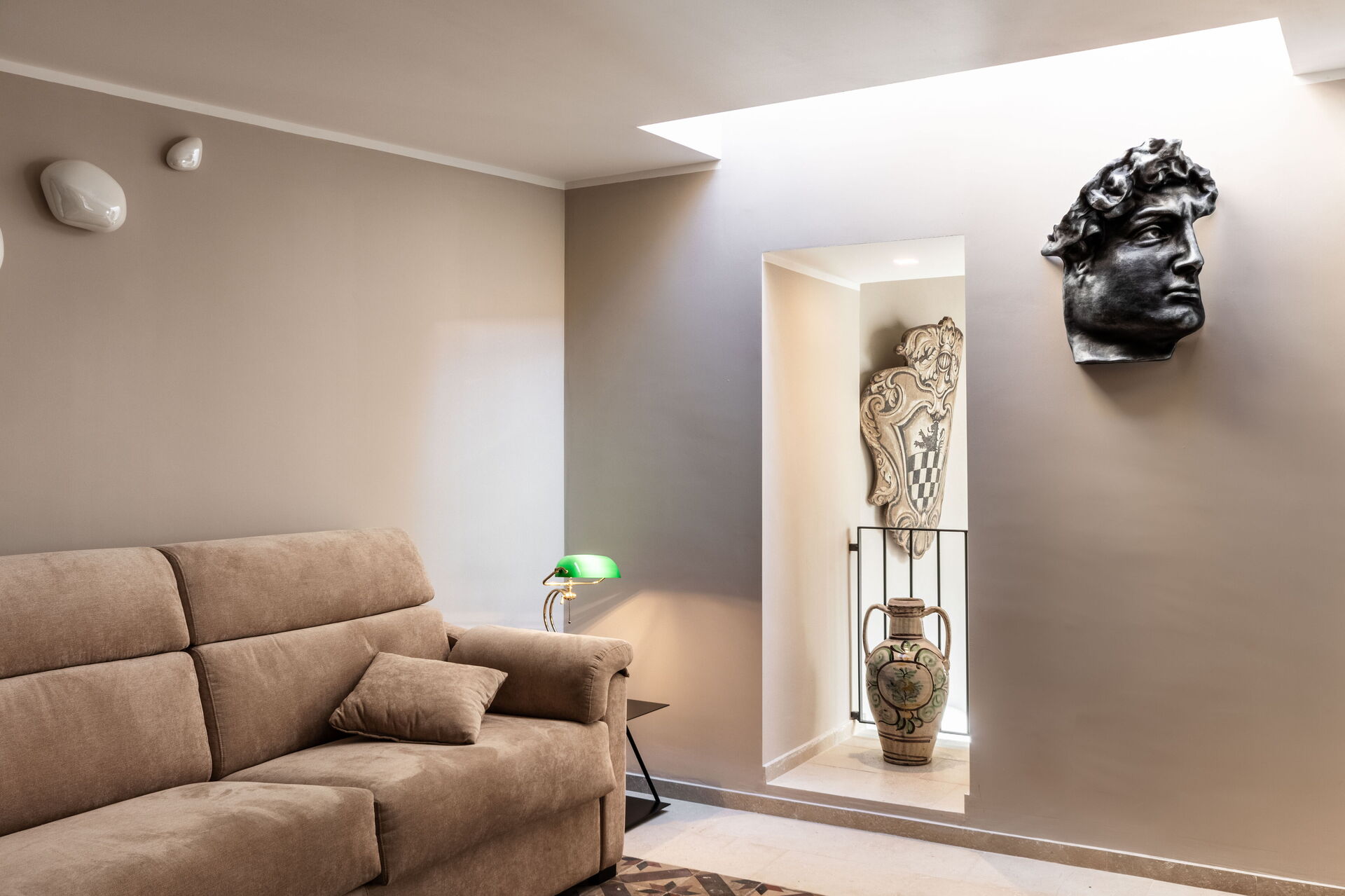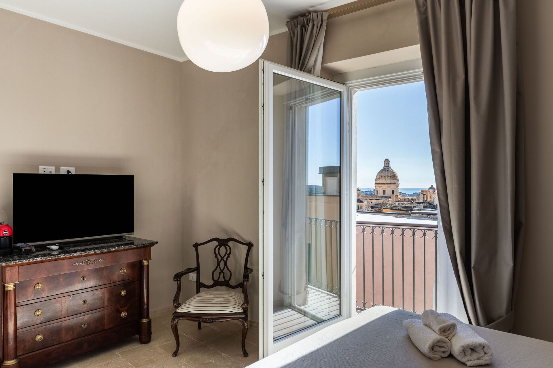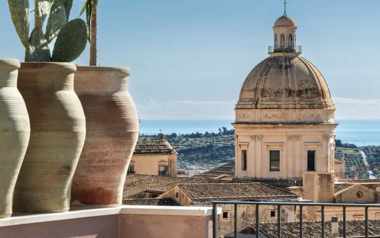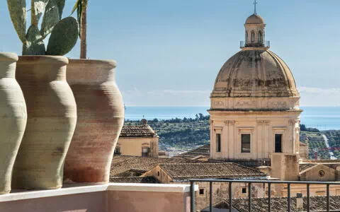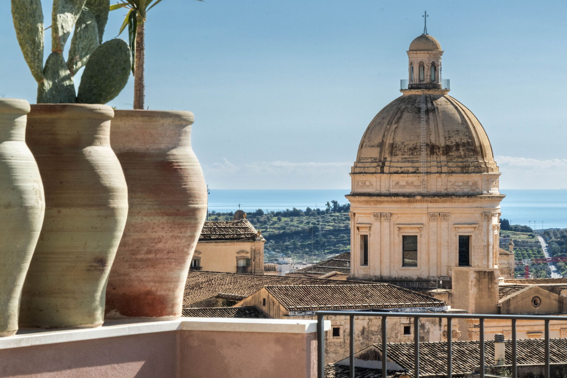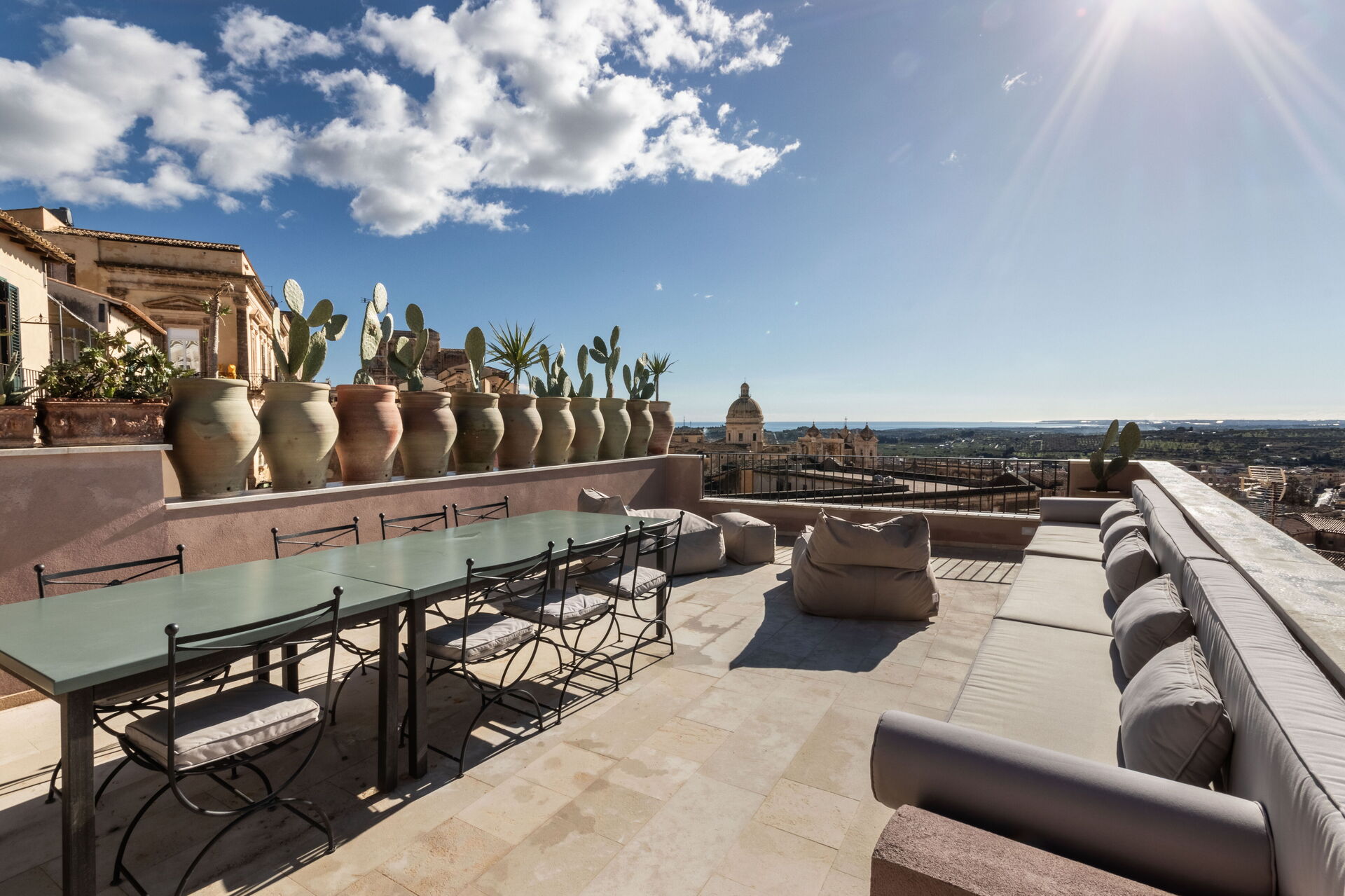 Casa Rhea has a wonderful terrace with a dining area and sofas for total relaxation. There is also an adjoining solarium with sun loungers available to enjoy a panoramic view of the baroque town of Noto.