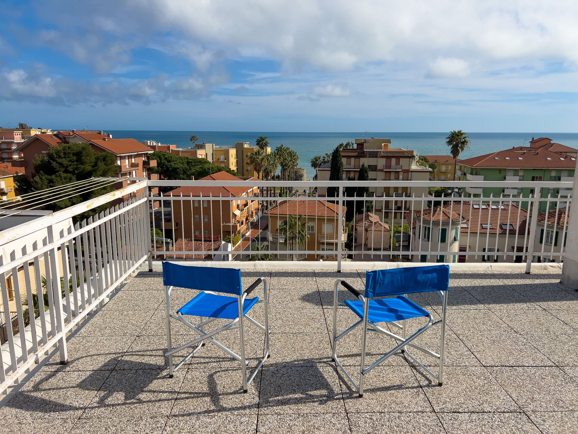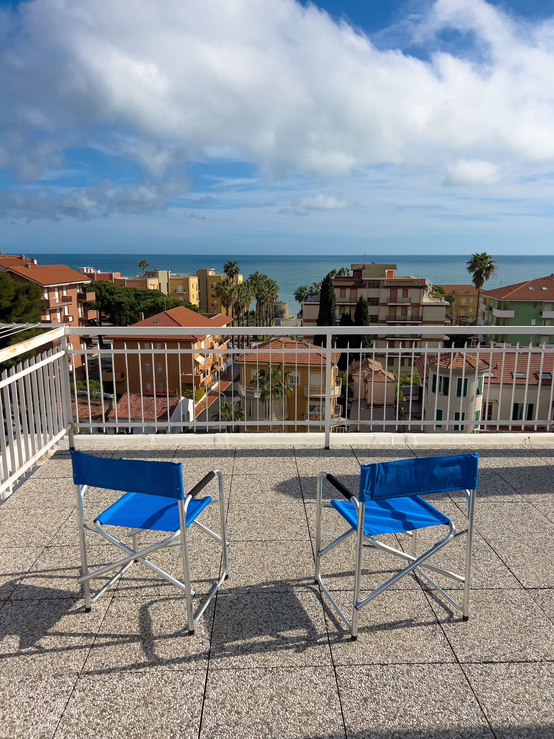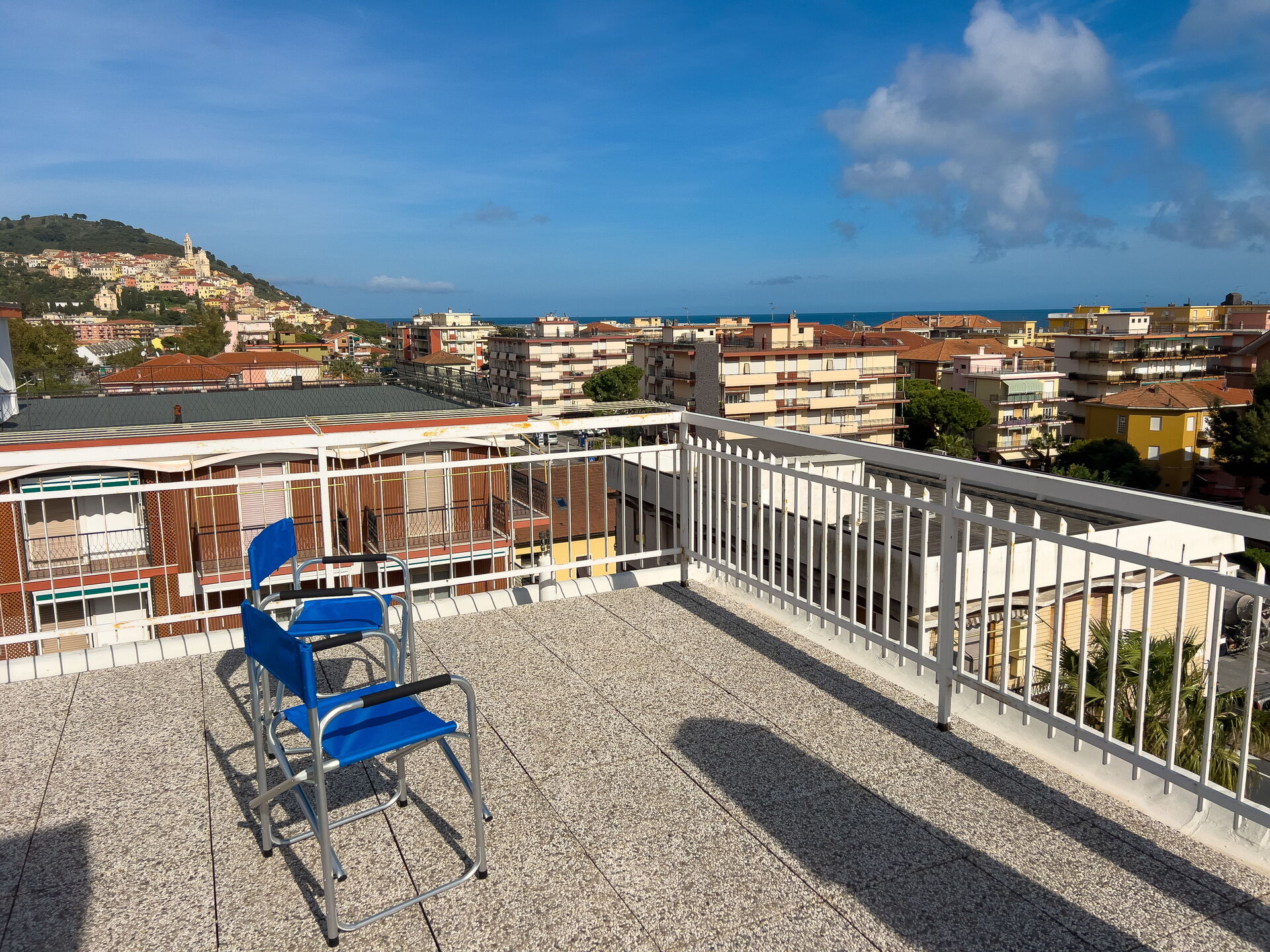 Cette terrasse est panoramique (vue sur la mer et on peut voir le village médiéval de Cervo, la colline de Capo Berta et Diano Marina), et il est possible d'étendre le linge sur des étendoirs communs.