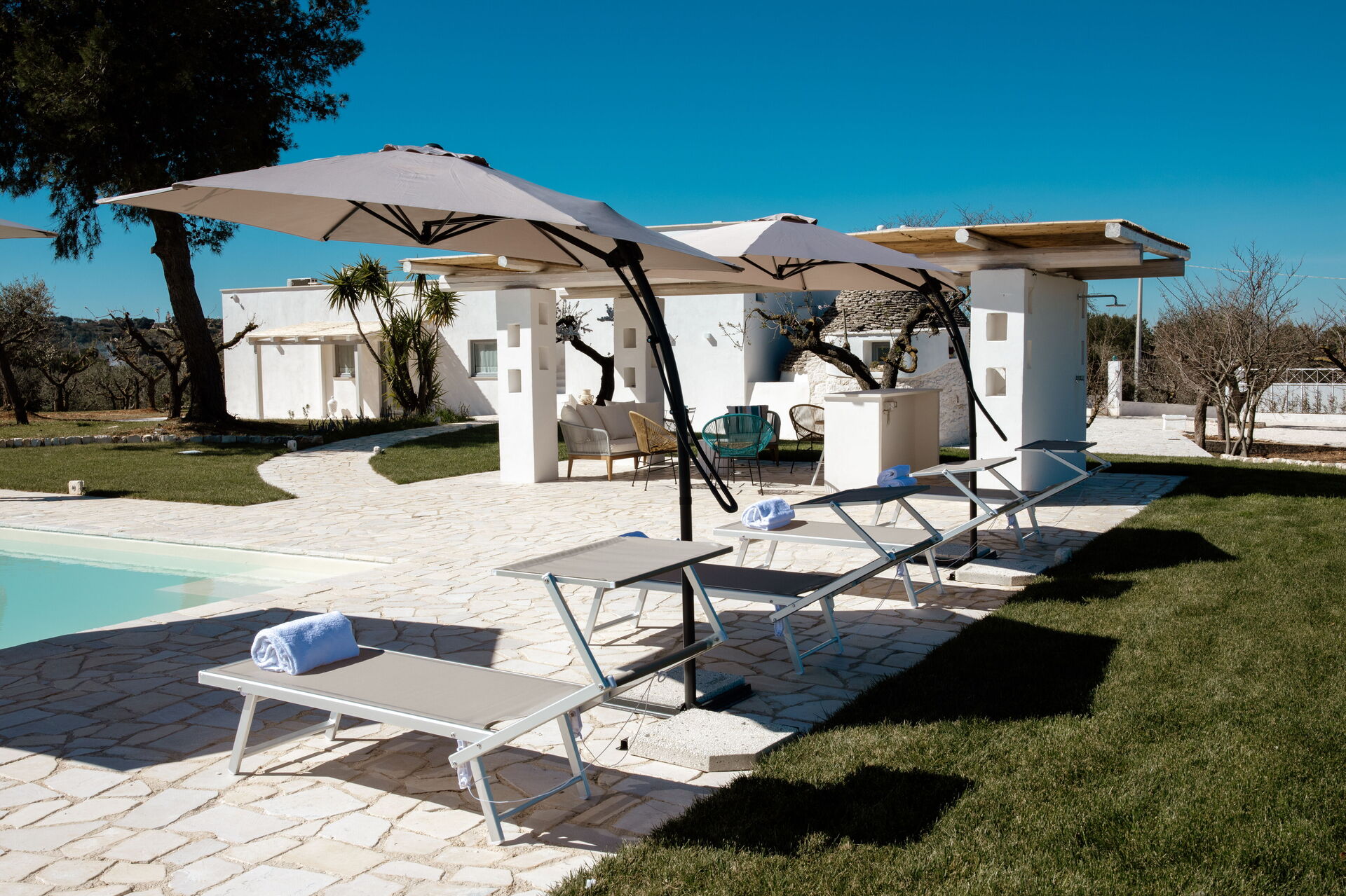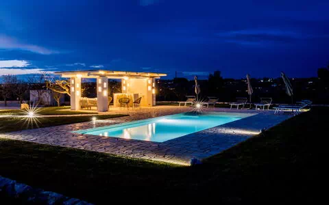 Next to the swimming pool there is a 32 square meter masonry and wood pergola, furnished with a sofa, armchair and tables, which offers shade and comfort during the hottest hours and an ideal place in the evening where you can drink and eat in company.