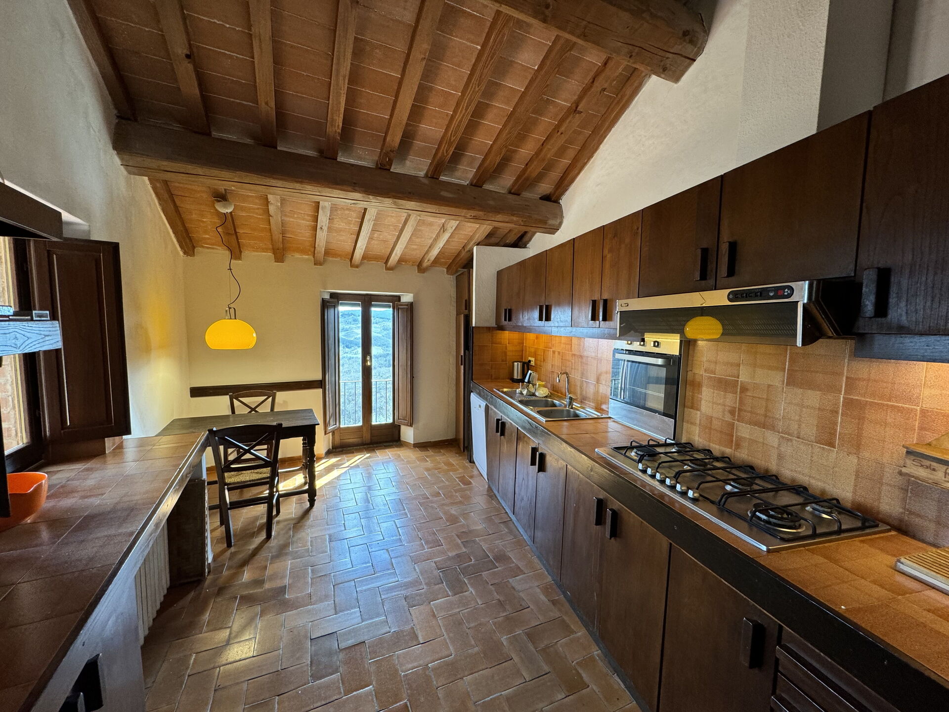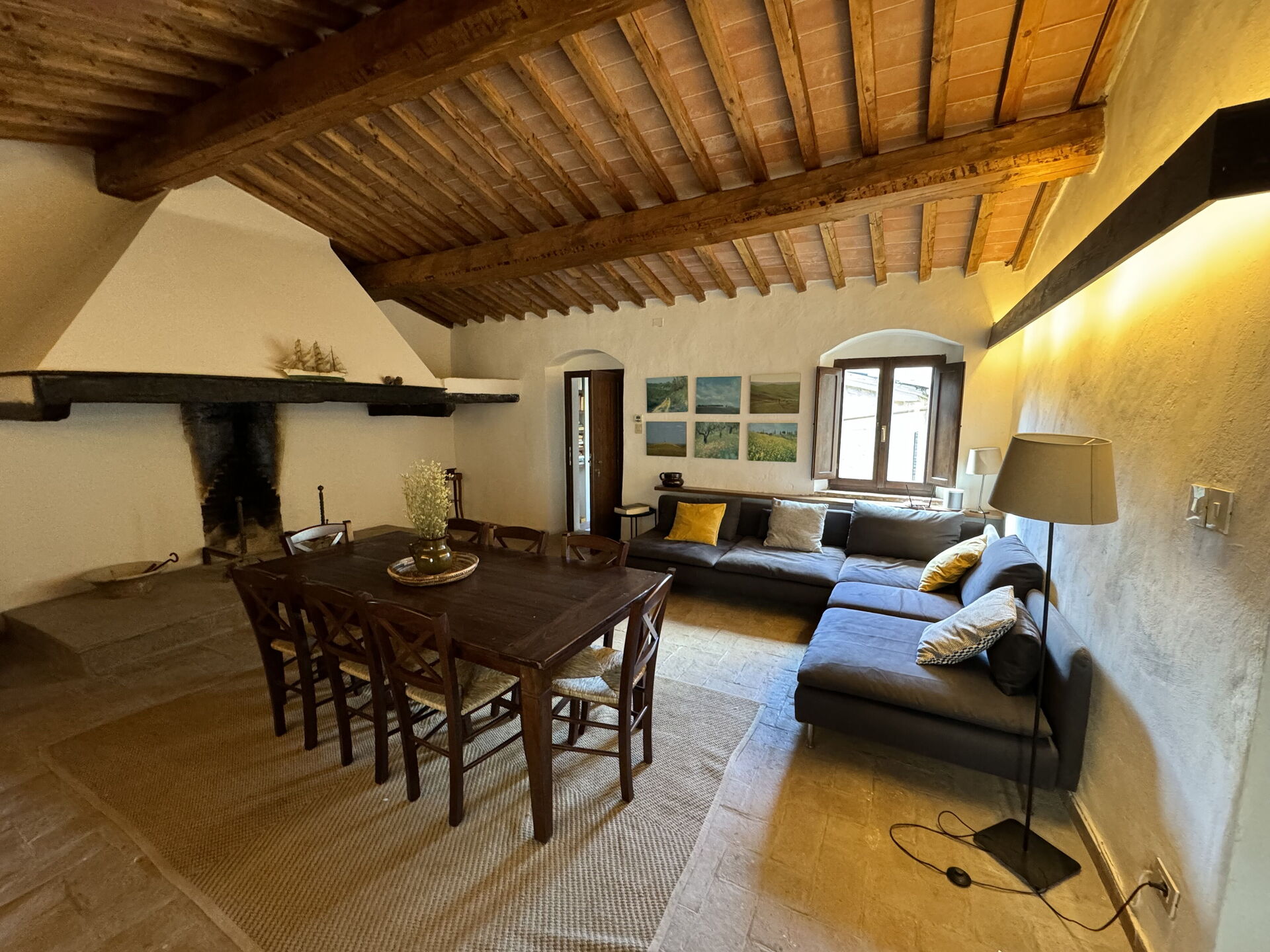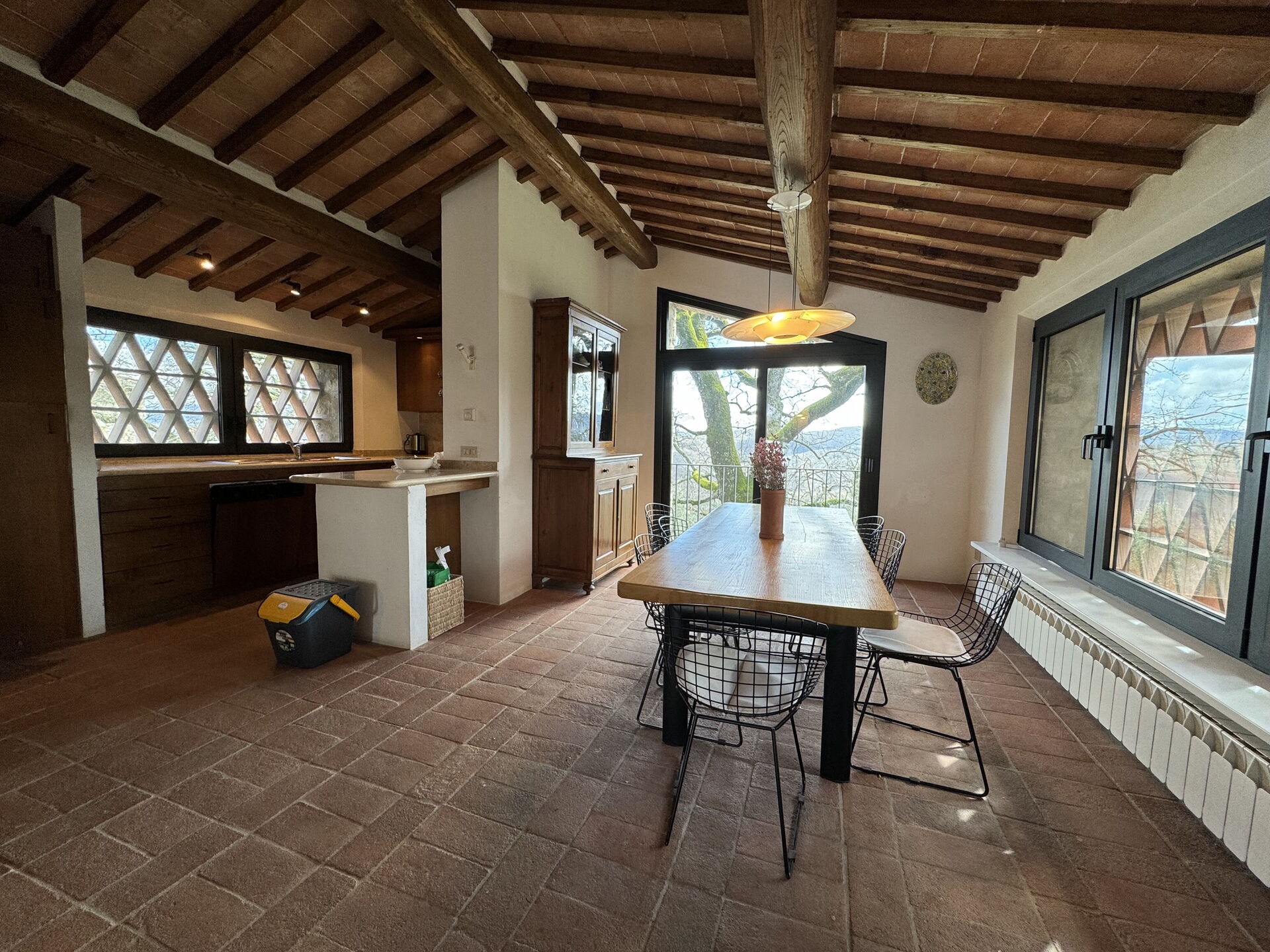 à votre arrivée vous serez reçus par le propriétaire, ou une personne de sa confiance, et vous trouverez une jolie propriété, propre et bien entretenue, avec vue sur les collines parfaite pour des vacances paisibles en Toscane. Pour votre plaisir vous trouverez une piscine privée où vous pouvez vous détendre tout en dégustant une bonne boisson fraîche après une fatigante journée de visites. Il y a une cuisine y compris machine à café et réfrigérateur, ainsi que, assez de vaisselle et couverts jusqu'à 17 personnes. Si vous préférez dîner «al fresco», il y a à votre disposition un balcon entièrement meublé où vous pourrez profiter du beau temps tout en mangeant en plein air.