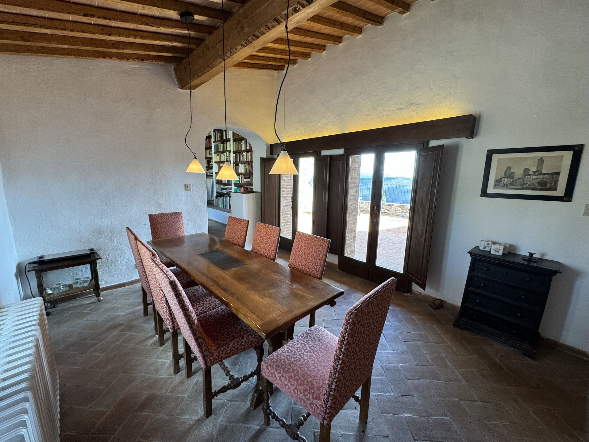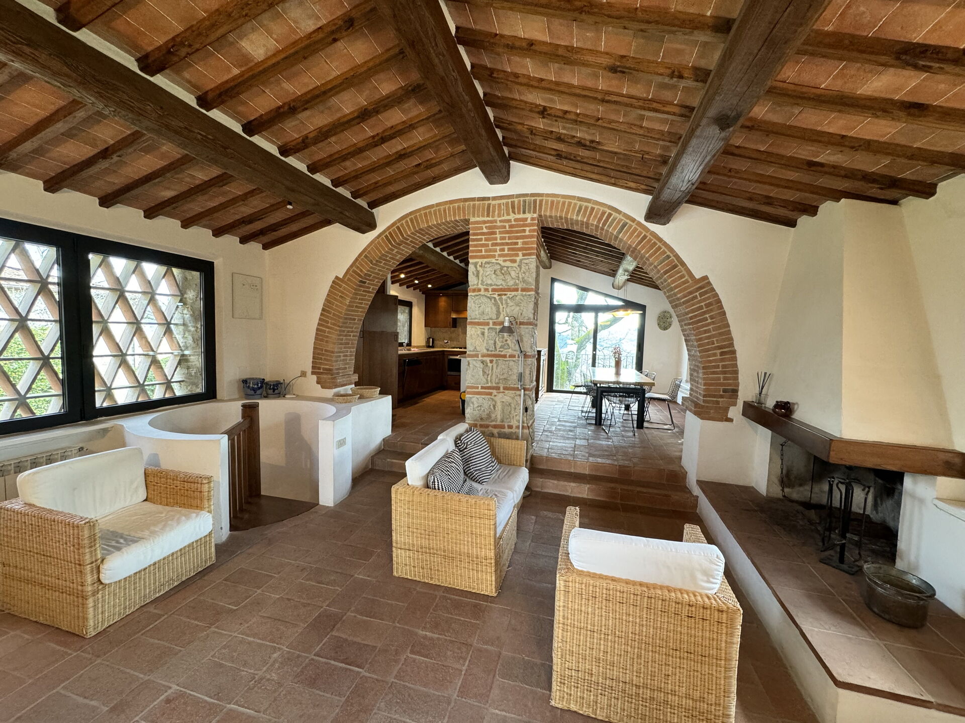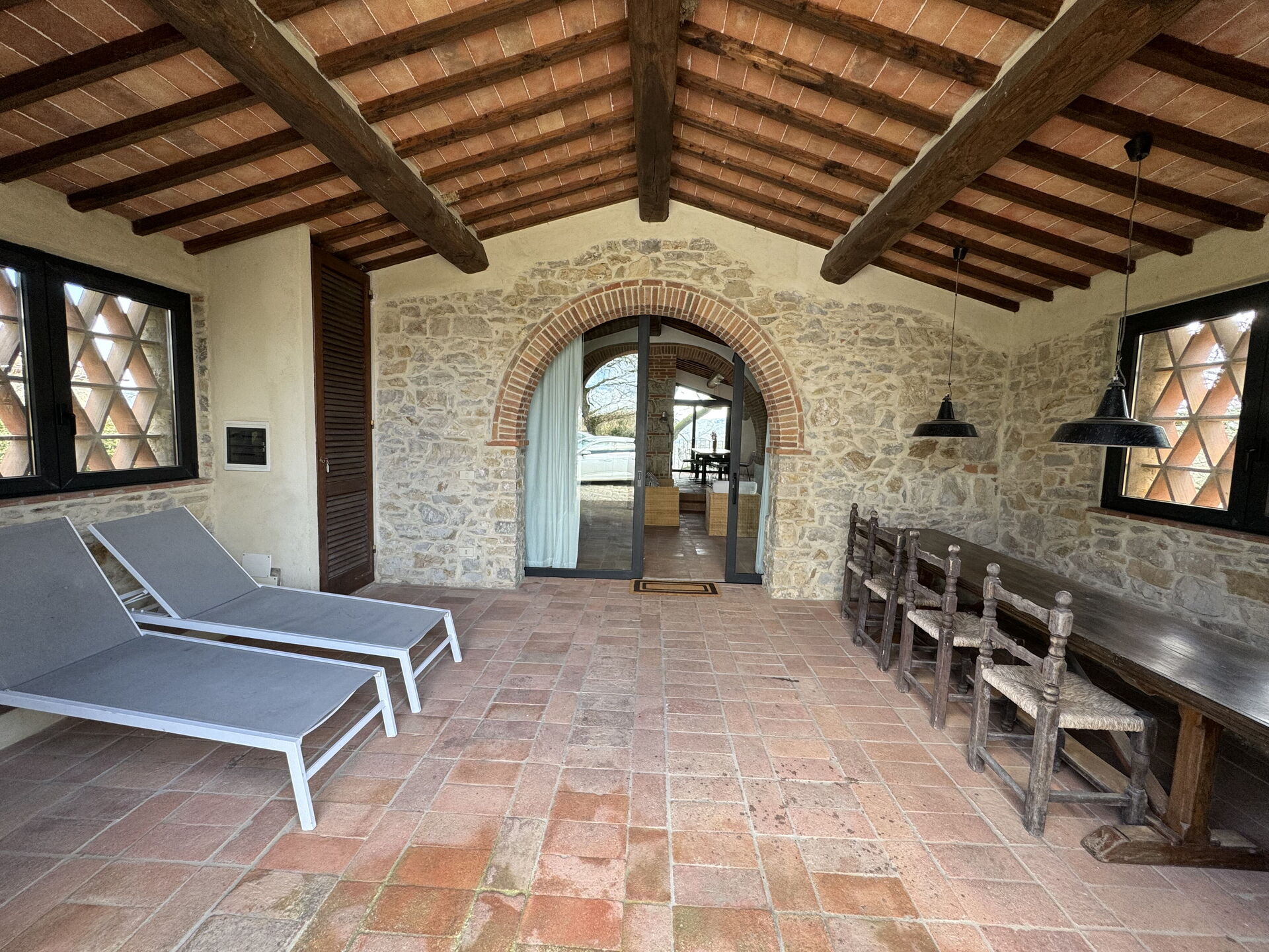 à votre arrivée vous serez reçus par le propriétaire, ou une personne de sa confiance, et vous trouverez une jolie propriété, propre et bien entretenue, avec vue sur les collines parfaite pour des vacances paisibles en Toscane. Pour votre plaisir vous trouverez une piscine privée où vous pouvez vous détendre tout en dégustant une bonne boisson fraîche après une fatigante journée de visites. Il y a une cuisine y compris machine à café et réfrigérateur, ainsi que, assez de vaisselle et couverts jusqu'à 17 personnes. Si vous préférez dîner «al fresco», il y a à votre disposition un balcon entièrement meublé où vous pourrez profiter du beau temps tout en mangeant en plein air.