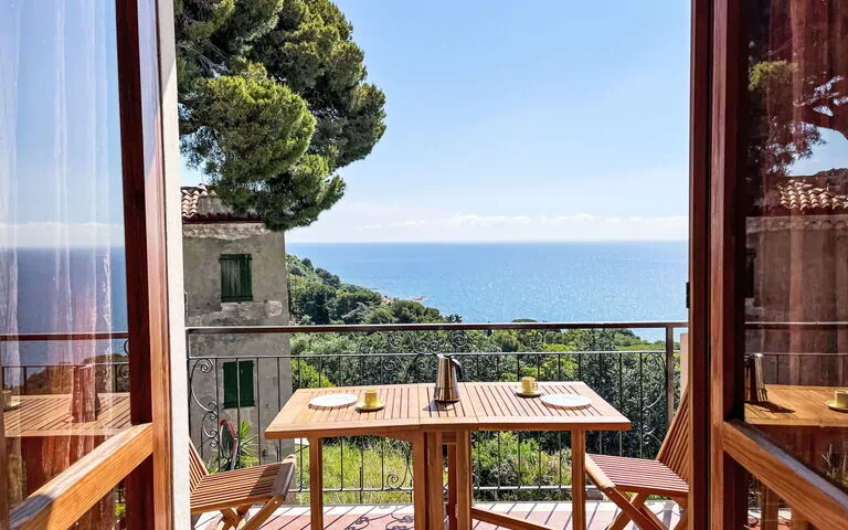 "11 Edera", apt 2 pièces 40 m2 au 3ème étage. Aménagement simple et fonctionnel: séjour avec 1 divan-lit (120 cm, longueur 190 cm), table pour les repas et TV. Sortie sur la véranda. 1 chambre avec 1 divan-lit (140 cm, longueur 200 cm), TV. Sortie sur le balcon. Coin cuisine (2 plaques à induction, grille-pain, cafetière électrique) avec table pour les repas. Bain/bidet/WC. Chauffage au gaz. Possibilité de chauffage uniquement du 01.11. au 01.05. Balcon 6 m2. Belle vue panoramique sur la mer et les montagnes. Maximum 1 animal/ chien autorisé. IT008024C2CNKNSN63