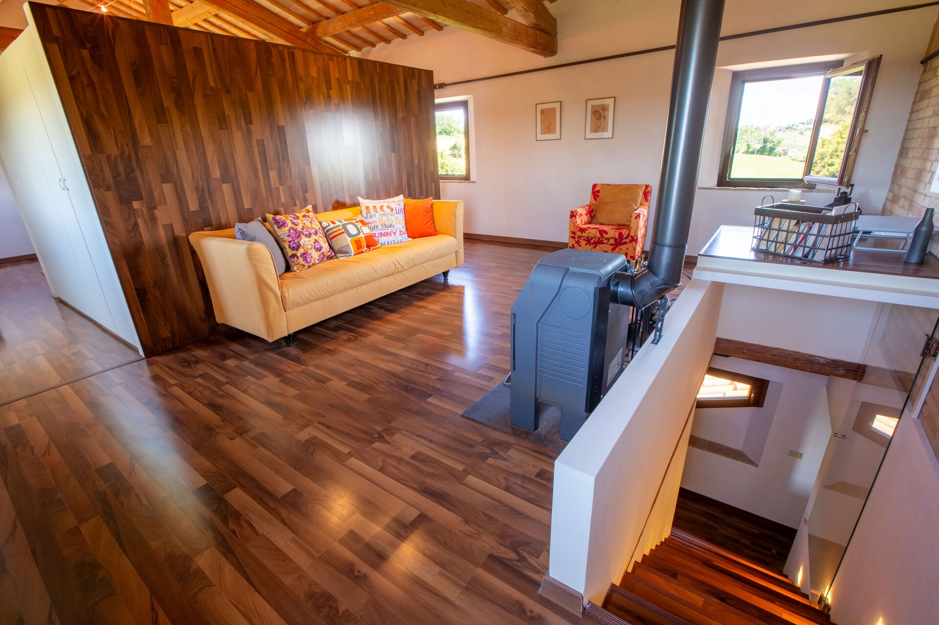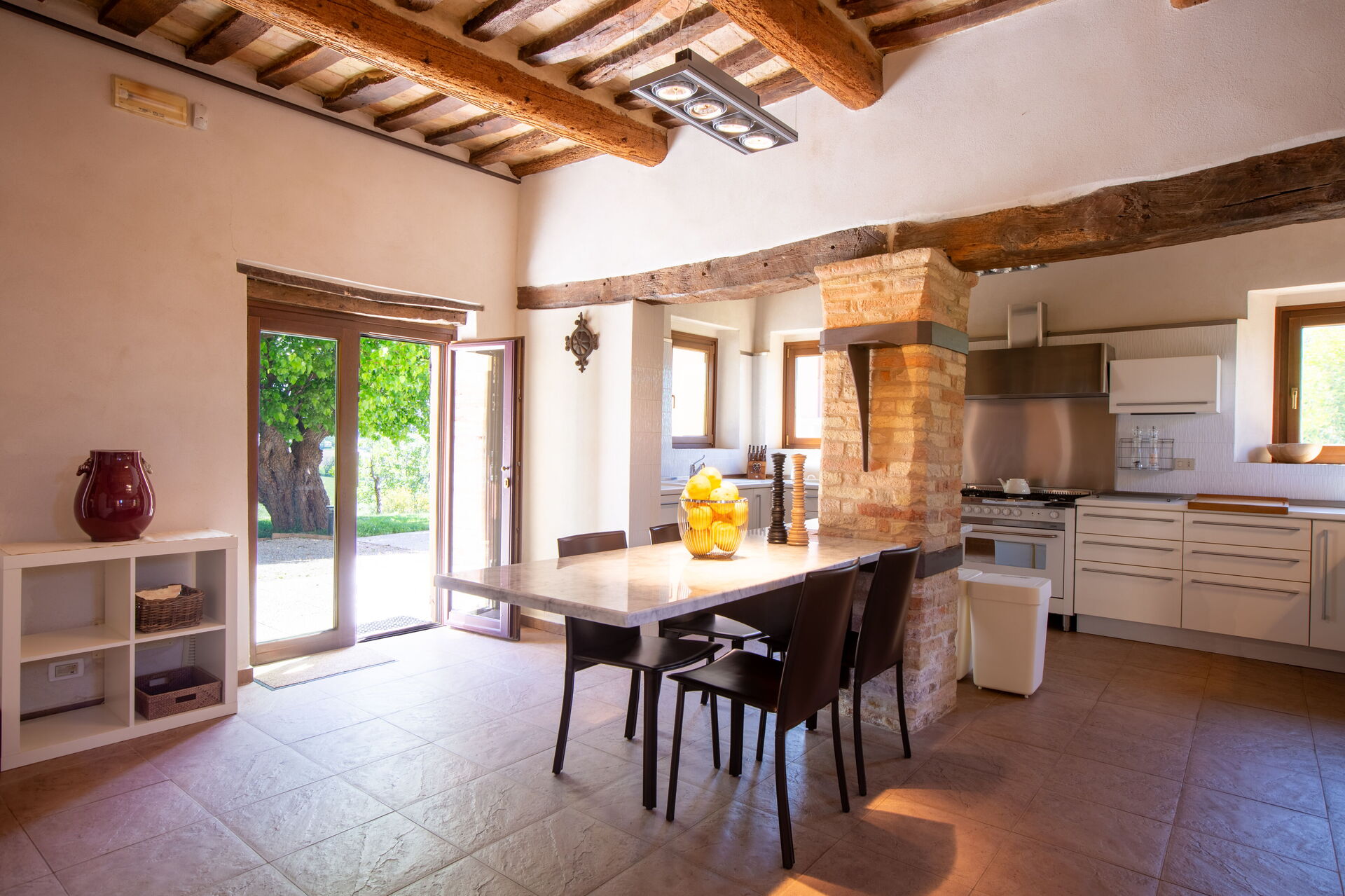 à votre arrivée vous serez accueillis par le propriétaire, ou une personne de sa confiance, et vous trouverez une jolie propriété, propre et bien entretenue, avec vue sur montagnes et les collines idéale pour des vacances relaxantes en Marches. Peu importe comment vous passez vos journées... visites de musées, shopping, visites ou tout simplement en vous baladant à la campagne, quand vous arrivez à la maison, vous pouvez vous délasser à la piscine avec votre famille et vos amis et conclure au mieux un autre jour de vacances en Marches. Pour votre plaisir, sur le terrain il y a un patio et un barbecue. Dîner avec les amis et la famille est une importante partie de la culture italienne. Profitez de la cuisine bien équipée pour préparer les repas avec des produits locaux pendant vos vacances. La cuisine comprend machine à café, four micro-onde, grille-pain, cuisinière et réfrigérateur, ainsi que, abondance de vaisselle et couverts pour un maximum de huit personnes. Dînez «al fresco» comme un vrai italien, la véranda complètement équipée est le cadre idéal pour apprécier la cuisine, s'amuser en famille, et profiter du jolie beau temps italien.