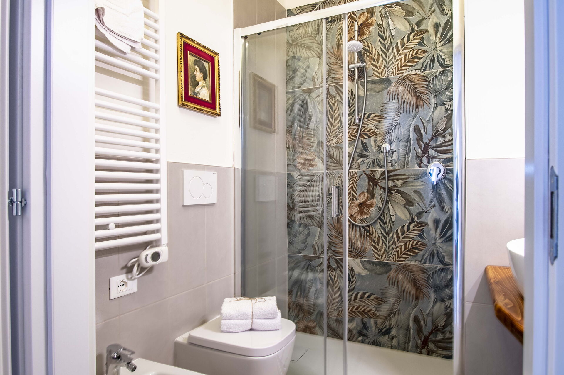 salle de bain 1: bassin, wc, bidet, douche.