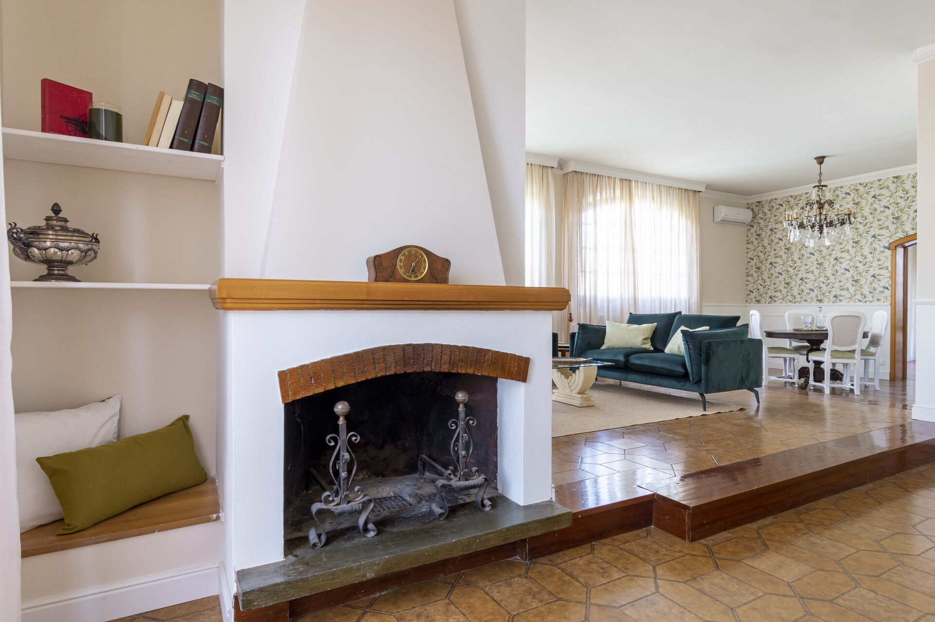 Cuisine – salle de séjour: cuisine bien équipée, table à manger, lave-vaisselle, réfrigérateur, congélateur, cuisinière, four, machine à café italienne, canapé, fauteuil, cheminée, internet WIFI, climatisation, tv satellitaire.