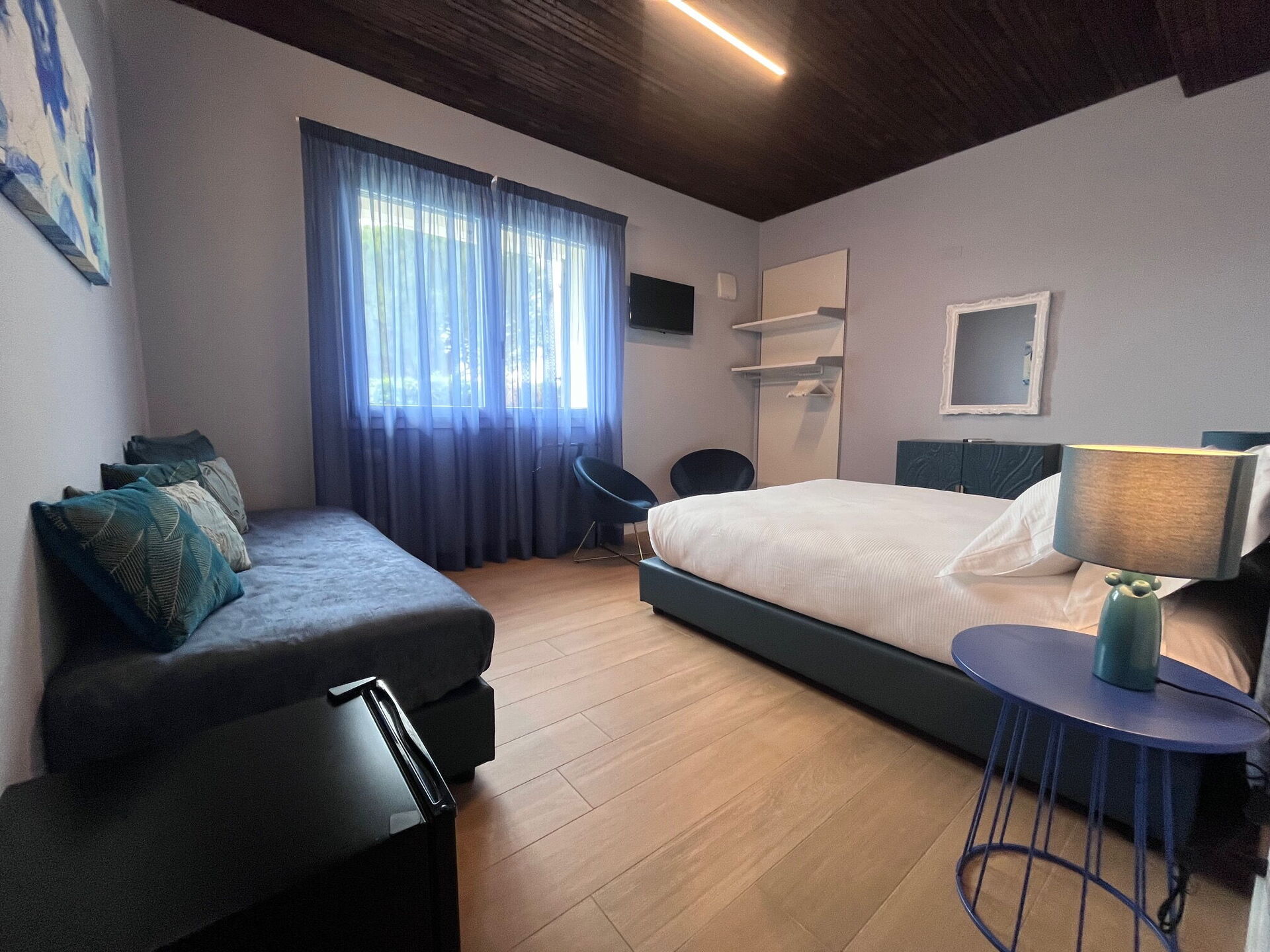 chambre avec salle de bain 1 (16 m2): lit double (largeur: 160m, longueur: 200m), internet WIFI, climatisation, moustiquaires, tv satellitaire, canapé, réfrigérateur, bassin, wc, bidet, douche, sèche-cheveux.