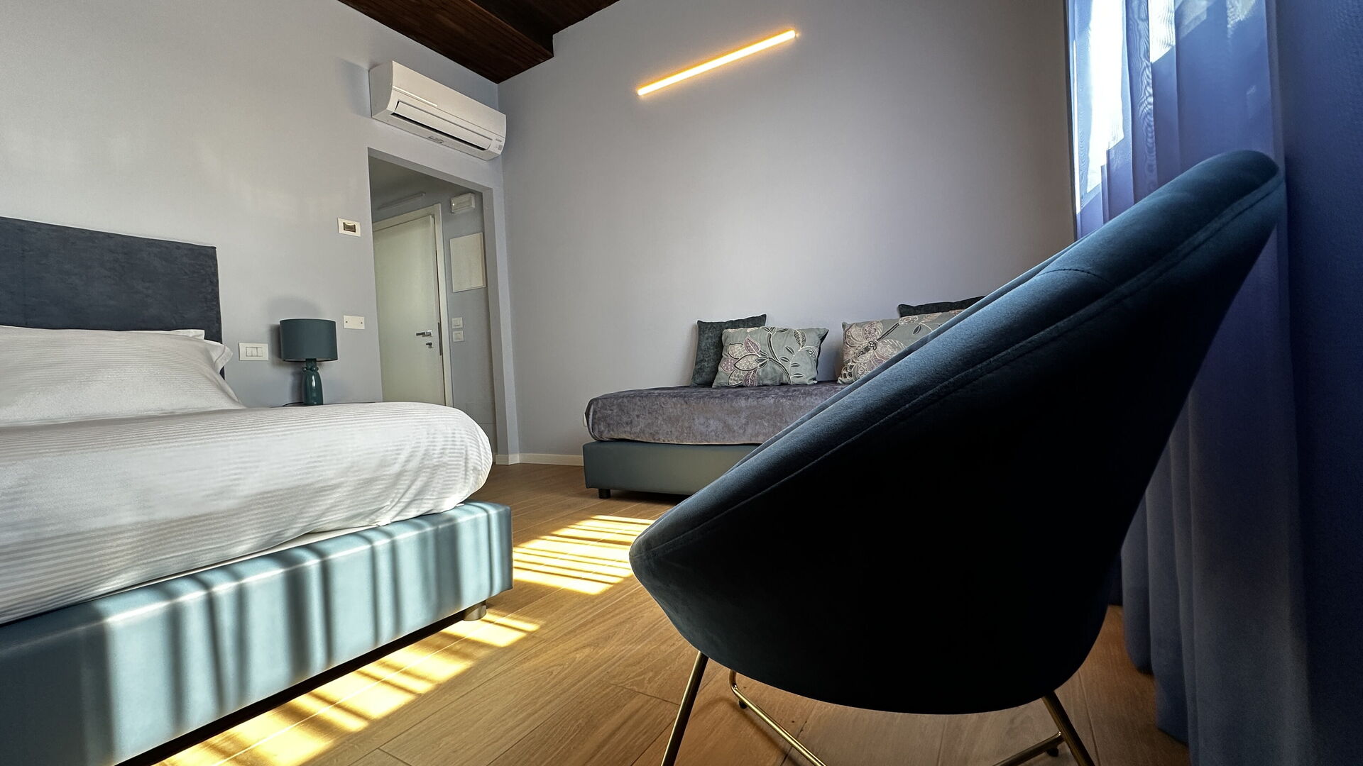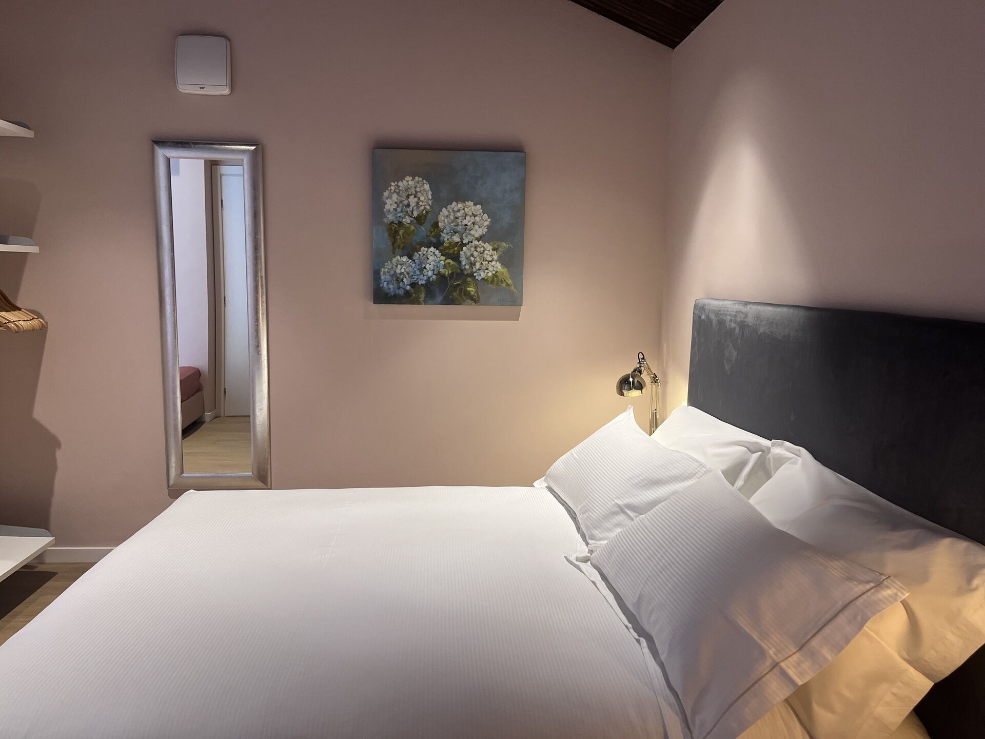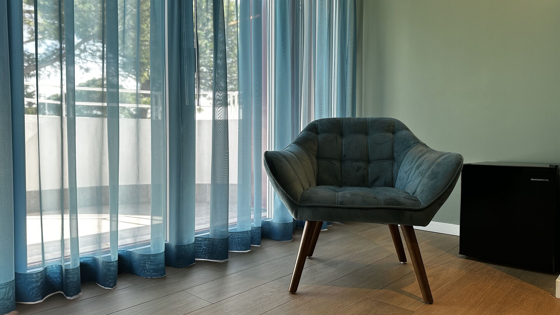 chambre avec salle de bain 2 (20 m2): lit double (largeur: 160m, longueur: 200m), internet WIFI, climatisation, moustiquaires, tv satellitaire, fauteuil, réfrigérateur, bassin, wc, bidet, sèche-cheveux, sortie sur le balcon.