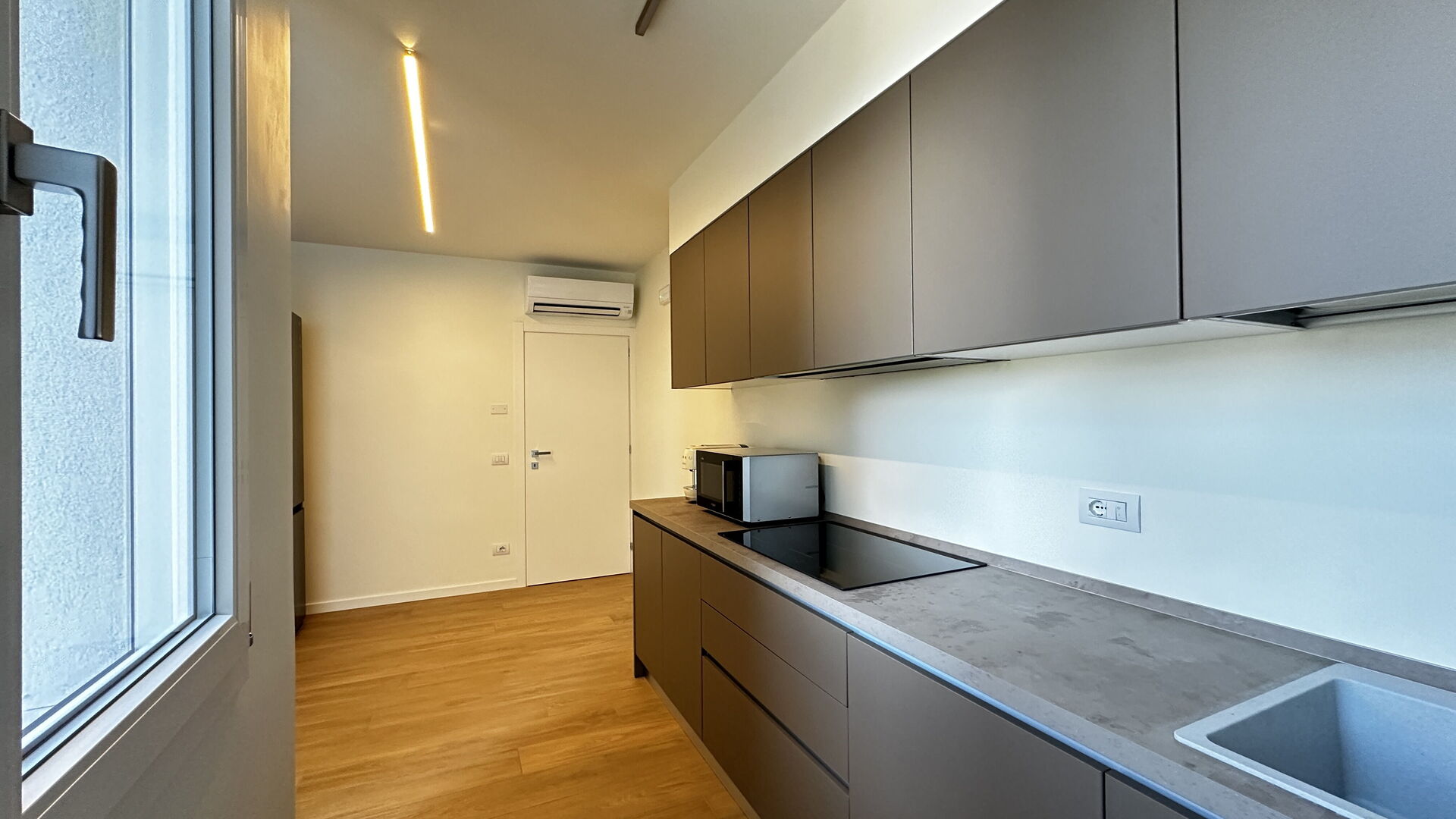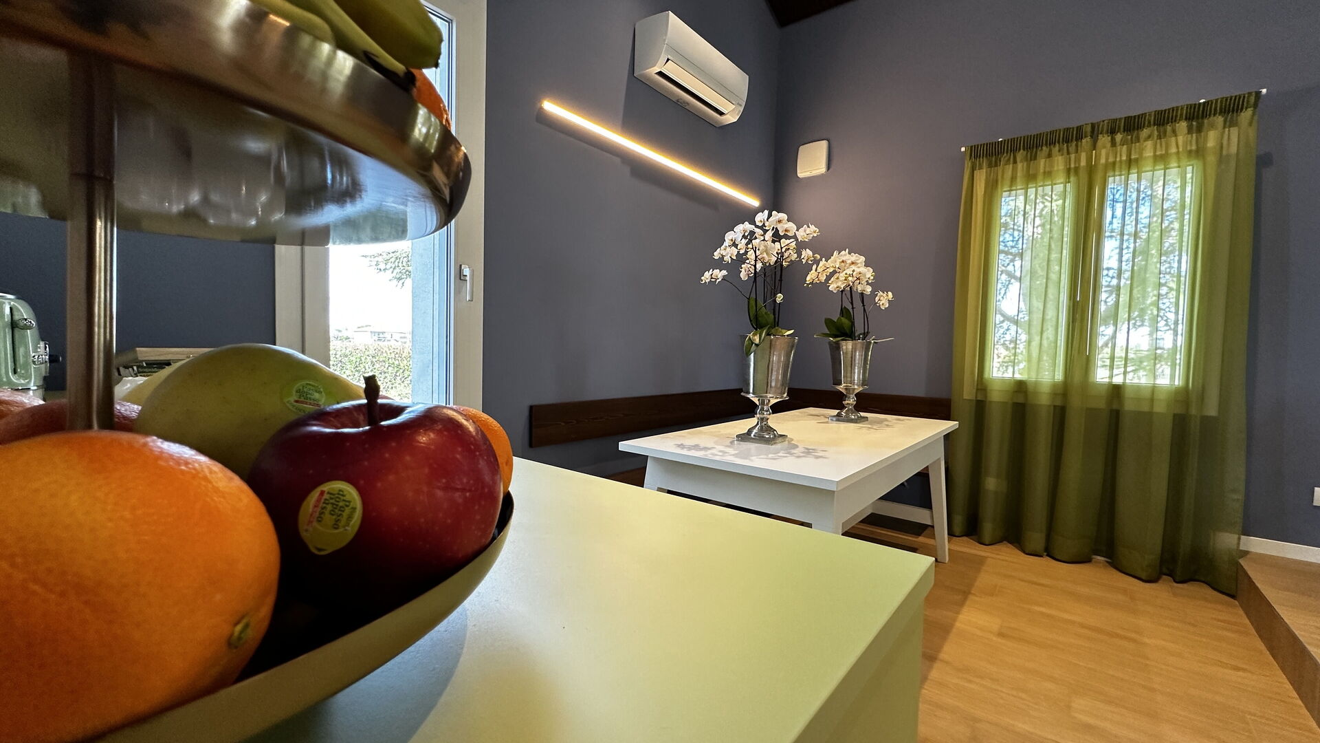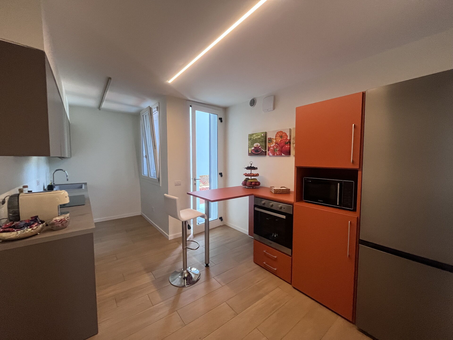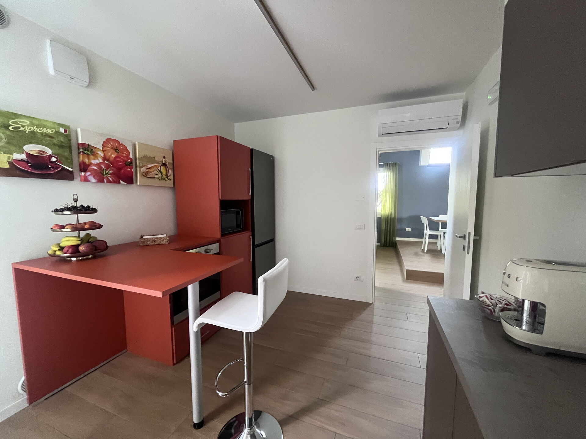 cuisine (14 m2): cuisine bien équipée, lave-vaisselle, réfrigérateur, congélateur, four micro-onde, cuisinière, four, grille-pain, machine à café italienne, climatisation, chaise-haute, sortie sur le jardin.