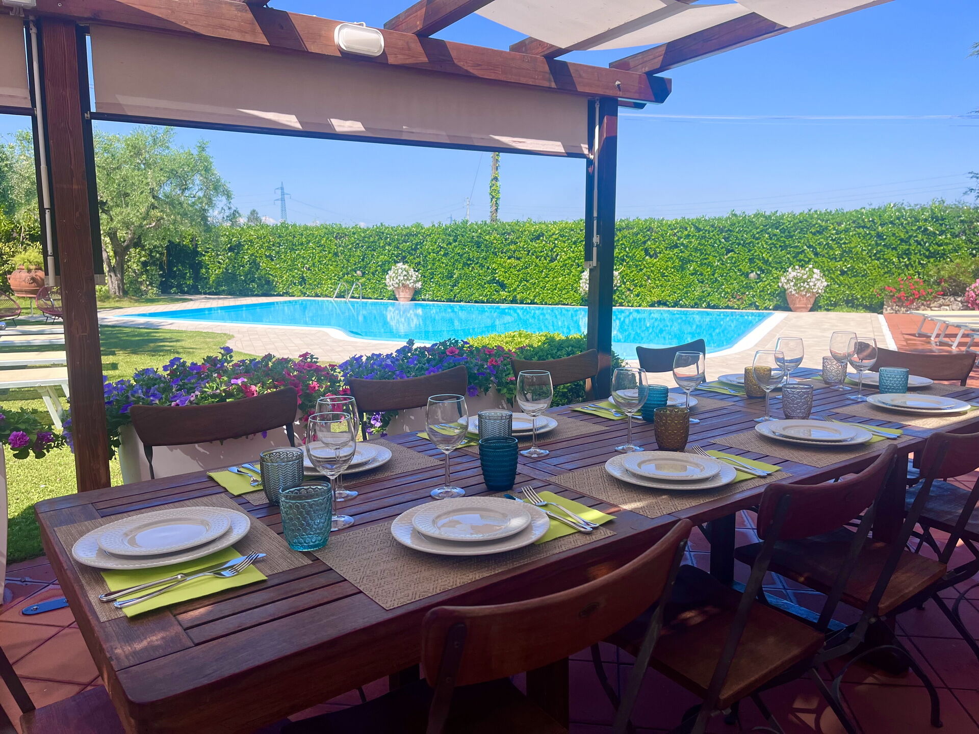 Une fois arrivés à Villapronti vous trouverez une jolie propriété, propre et bien entretenue, idéale pour des vacances calmes en Émilie Romagne. Peu importe comment vous passez vos journées... visites, shopping, visites de musées ou tout simplement en vous baladant à la campagne, quand vous arrivez à la maison, vous pouvez vous délasser à la piscine avec votre famille et vos amis et conclure au mieux un autre jour de vacances en Émilie Romagne. Pour votre plaisir, sur le terrain il y a un barbecue et une terrasse. Dîner avec les amis et la famille est une importante partie de la culture italienne. Profitez de la cuisine bien équipée pour préparer les repas avec des produits locaux pendant vos vacances. La cuisine comprend machine à café, four micro-onde, grille-pain et réfrigérateur, ainsi que, abondance de vaisselle et couverts pour un maximum de dix personnes. Dînez «al fresco» comme un vrai italien, la véranda complètement équipée est le cadre parfait pour apprécier la cuisine, s'amuser en famille, et profiter du jolie beau temps italien.