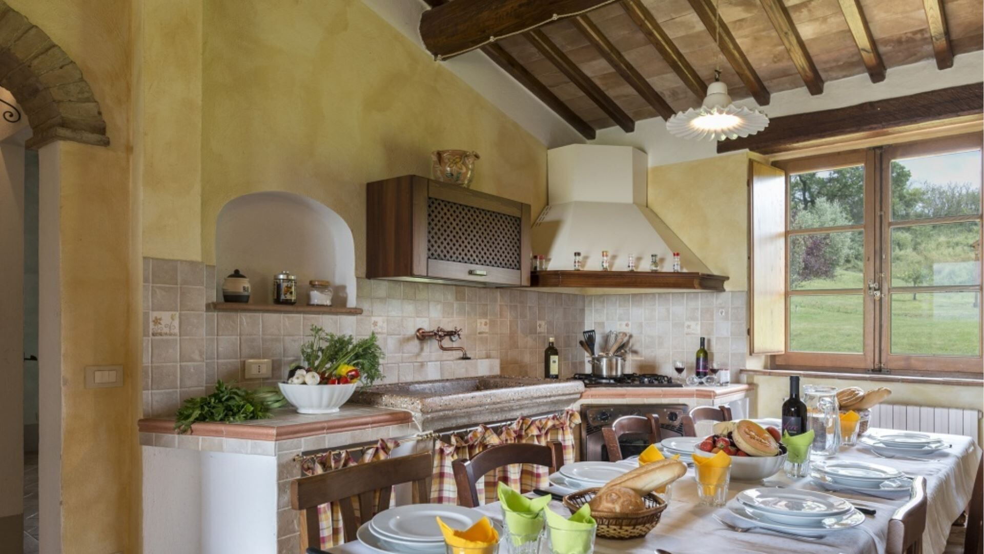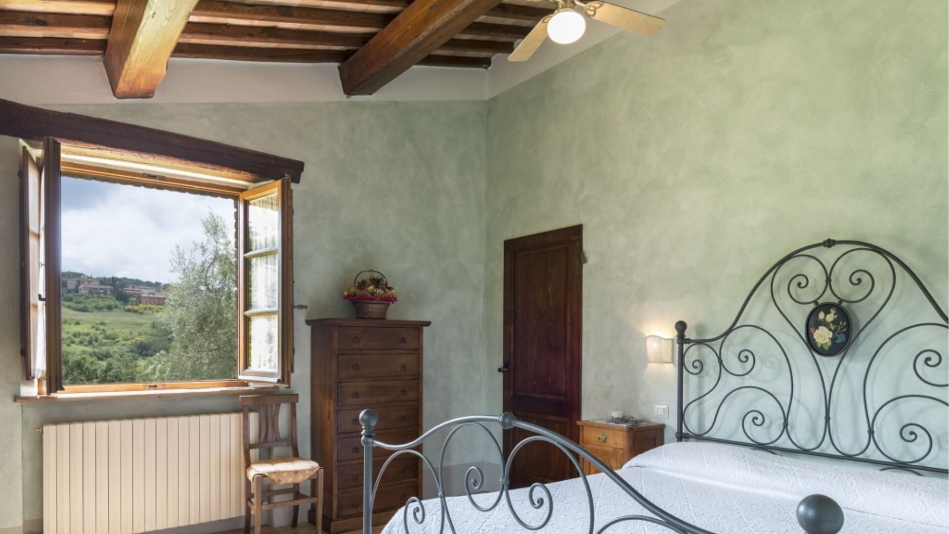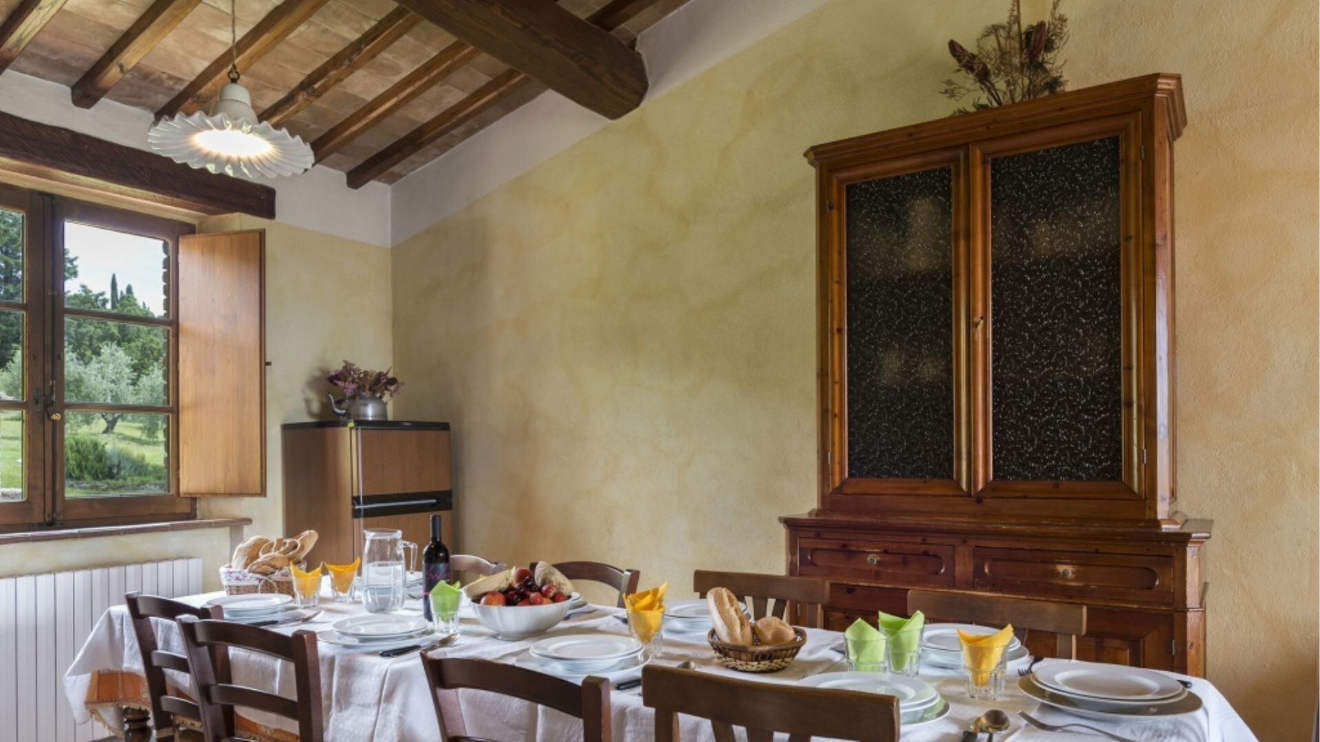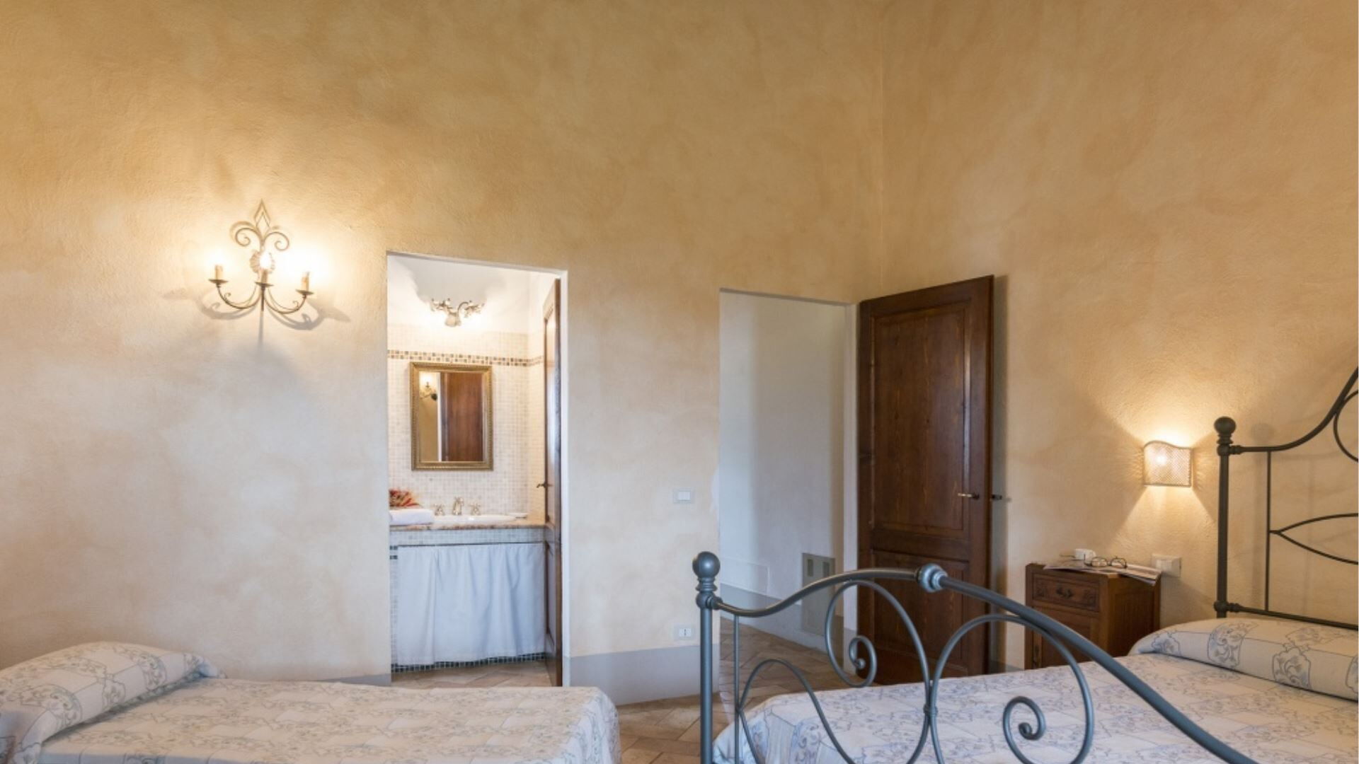 L'hébergement de Podere Aurora s'étend sur un seul niveau et comprend deux appartements distincts qui offrent ensemble des couchages pour 8 personnes. L'agencement comprend 4 chambres au total et 4 salles de bains, garantissant un hébergement confortable pour la capacité maximale. L'appartement Castagno dispose d'un salon avec une kitchenette intégrée et une cheminée, complété par 2 chambres doubles, chacune avec sa propre salle de bains privative. L'appartement Faggio offre une configuration spacieuse en espace ouvert combinant la cuisine et la salle à manger avec une cheminée, depuis laquelle un petit couloir mène aux espaces nuit. Cet appartement contient 2 chambres doubles, l'une avec une salle de bains privative avec douche et l'autre avec une salle de bains séparée avec douche. La chambre avec salle de bains privative de Faggio comprend également un fauteuil-lit et un accès direct à l'extérieur. Dans les deux appartements, les pièces lumineuses bénéficient de multiples accès vers les espaces extérieurs, et des ventilateurs de plafond sont installés dans les chambres pour assurer une circulation d'air confortable.