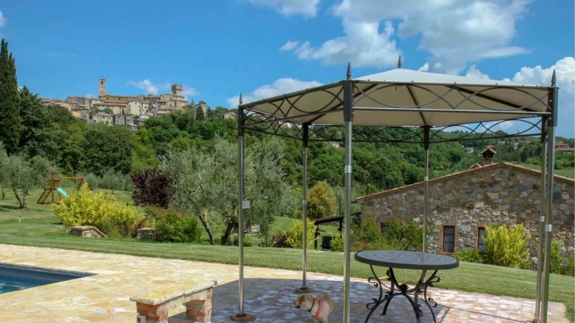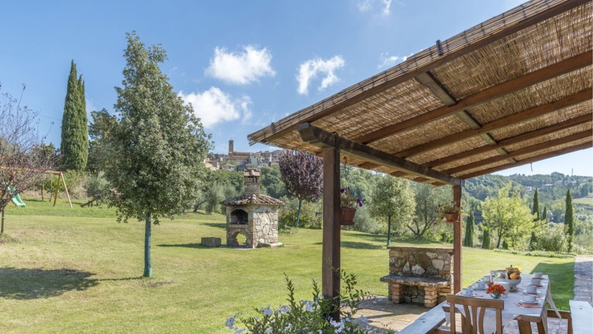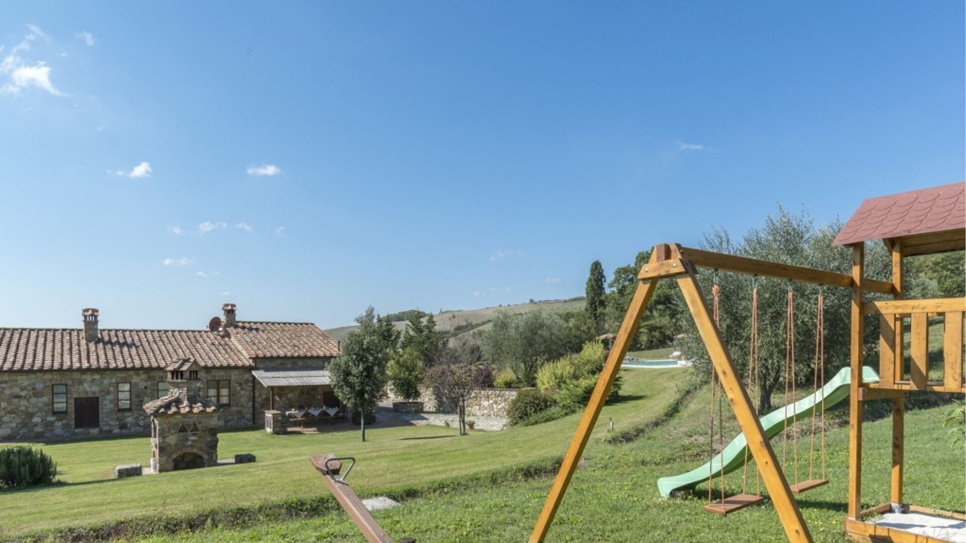 Les espaces extérieurs de Podere Aurora créent une oasis verdoyante conçue à la fois pour la détente paisible et le divertissement familial. La propriété est entourée d'un jardin bien entretenu, clôturé avec une hauteur moyenne de 160 centimètres, offrant intimité et sécurité tout au long de votre séjour. La pièce maîtresse de l'espace extérieur est la piscine privée, qui fonctionne pendant la saison chaude et offre un rafraîchissement bienvenu durant les journées d'été. Adjacent à la piscine, vous trouverez des chaises longues confortables disposées pour les bains de soleil et les moments de détente. Une charmante pergola propose un espace repas extérieur ombragé où vous pourrez savourer des repas préparés sur l'espace barbecue dédié. Le porche s'étend le long de la villa avec de multiples points d'accès depuis les pièces intérieures, reliant harmonieusement la vie intérieure et extérieure. Les enfants peuvent profiter de l'aire de jeux aménagée dans l'enceinte sécurisée du jardin, faisant de cet environnement extérieur un lieu adapté aux familles.