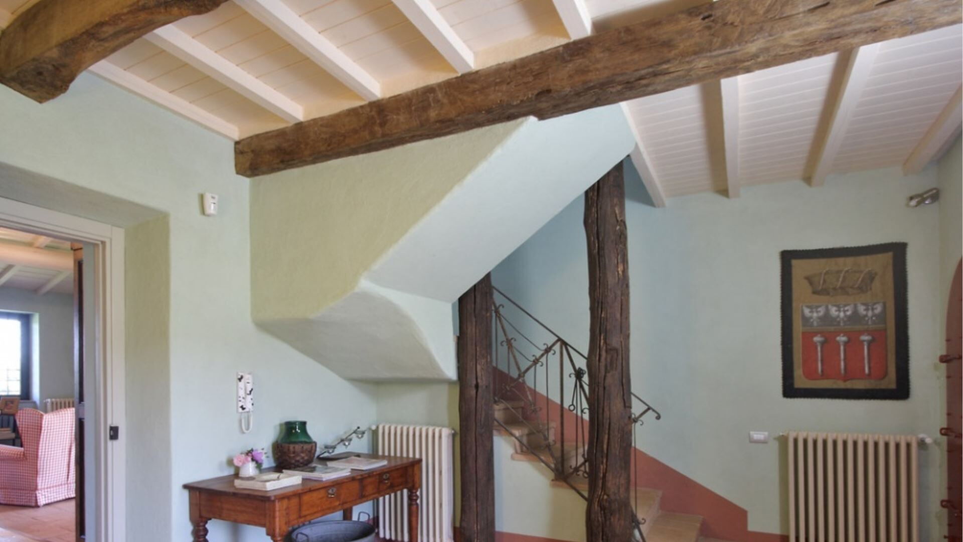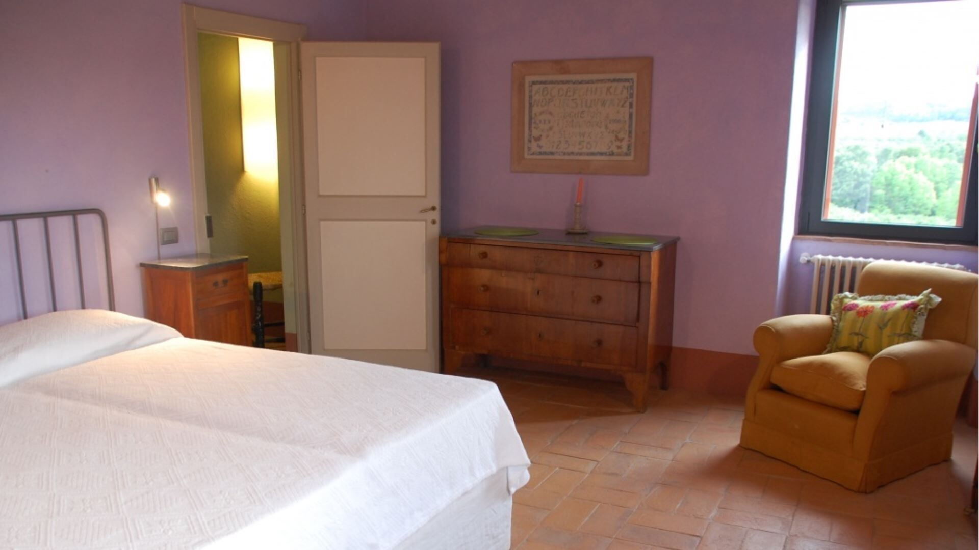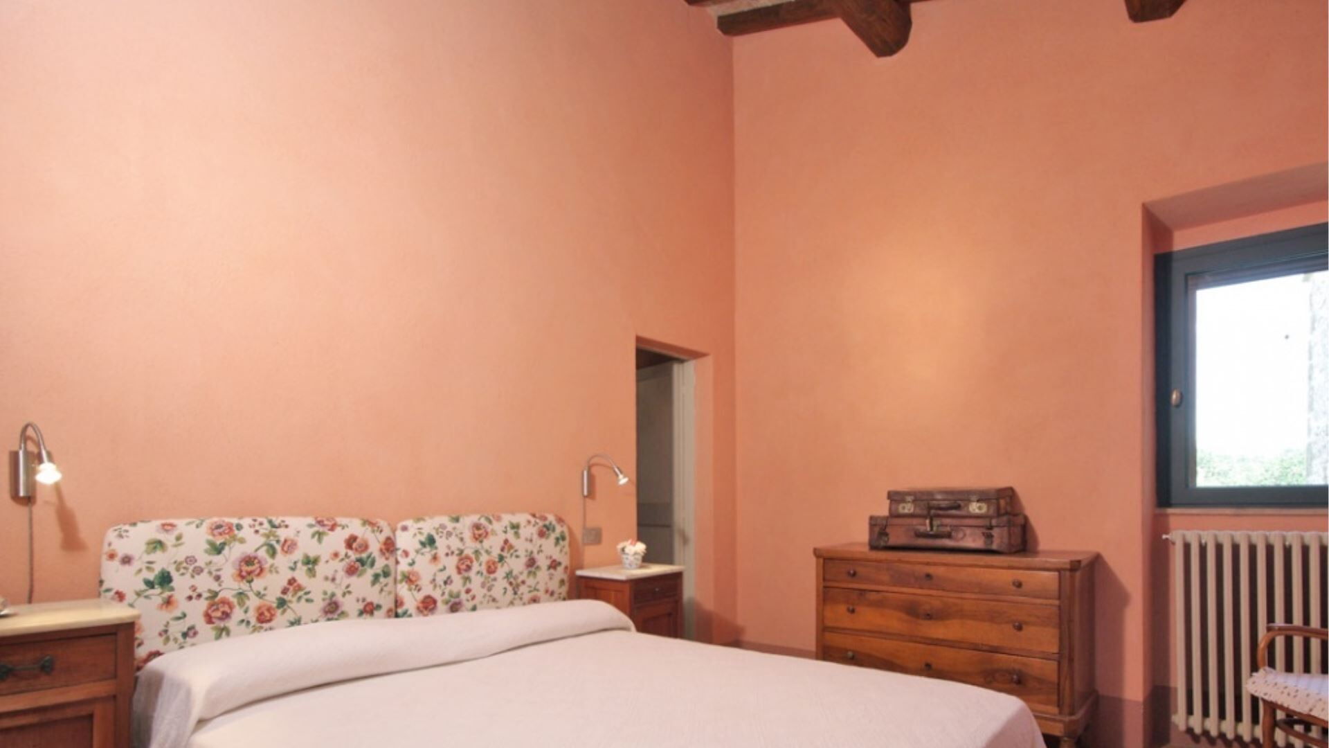 La ferme peut accueillir jusqu'à 8 personnes dans 4 chambres doubles, chacune accompagnée de sa propre salle de bain privée. L'hébergement est judicieusement réparti sur deux étages, créant un agencement spacieux et confortable. Au rez-de-chaussée, vous trouverez une grande salle à manger dotée d'une cheminée traditionnelle, une cuisine entièrement équipée et une buanderie pratique avec une salle de bain de service. Également à ce niveau se trouve une chambre double avec une salle de bain adjacente équipée d'une douche spécialement conçue pour être accessible aux fauteuils roulants. En montant au premier étage, vous découvrirez un petit espace bureau ainsi que trois chambres doubles supplémentaires, chacune avec sa propre salle de bain privée dotée d'une grande douche. L'une des chambres du premier étage est meublée d'un lit double, tandis que les deux autres chambres offrent des configurations de couchage flexibles et peuvent être aménagées avec des lits jumeaux ou doubles selon vos préférences. La décoration intérieure dans toute la ferme présente un mélange élégant de meubles anciens de famille alternant avec des ajouts modernes soigneusement sélectionnés, tandis que les murs sont traités à la chaux et rehaussés de pigments naturels très colorés qui créent une atmosphère chaleureuse et accueillante.