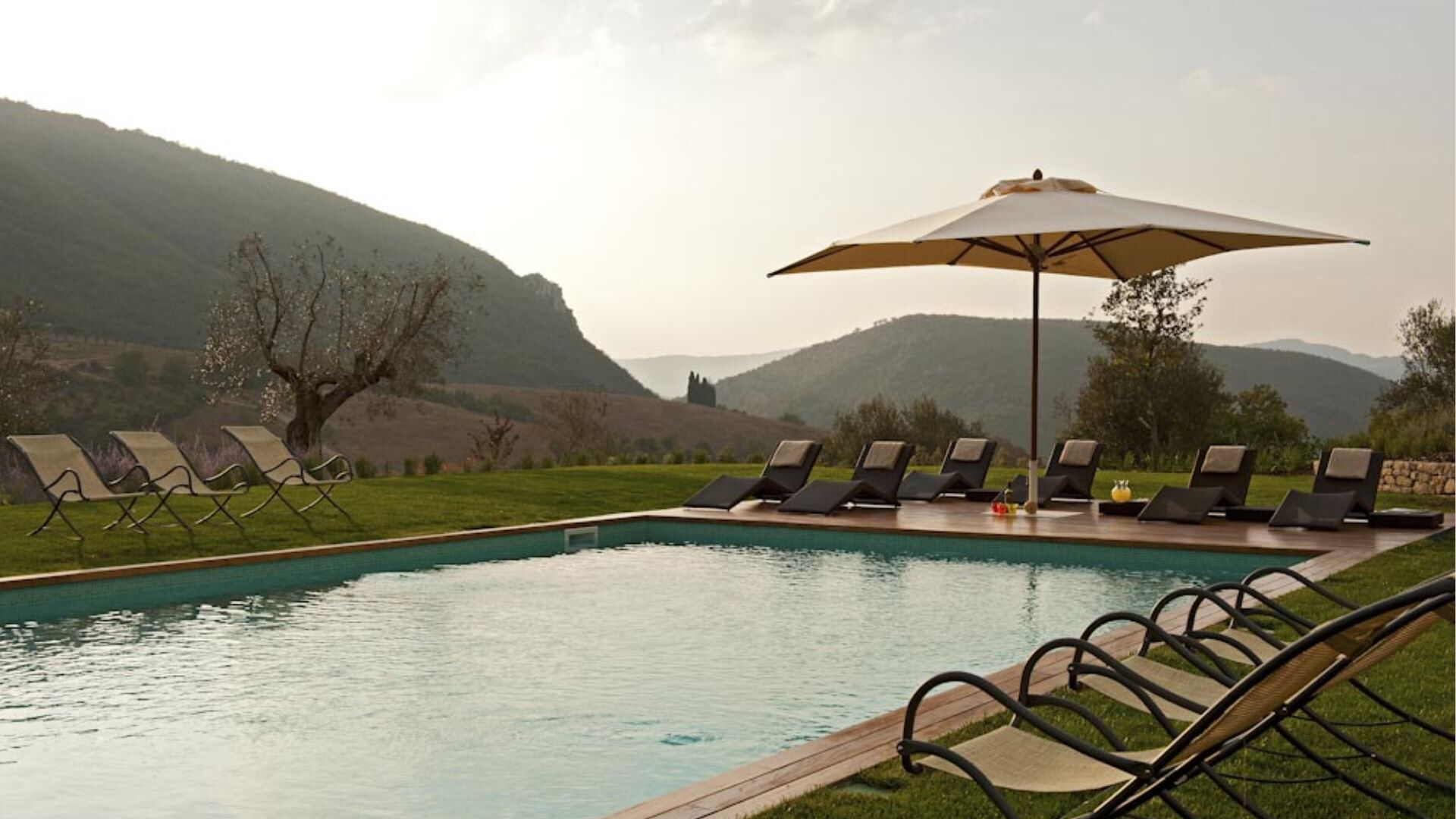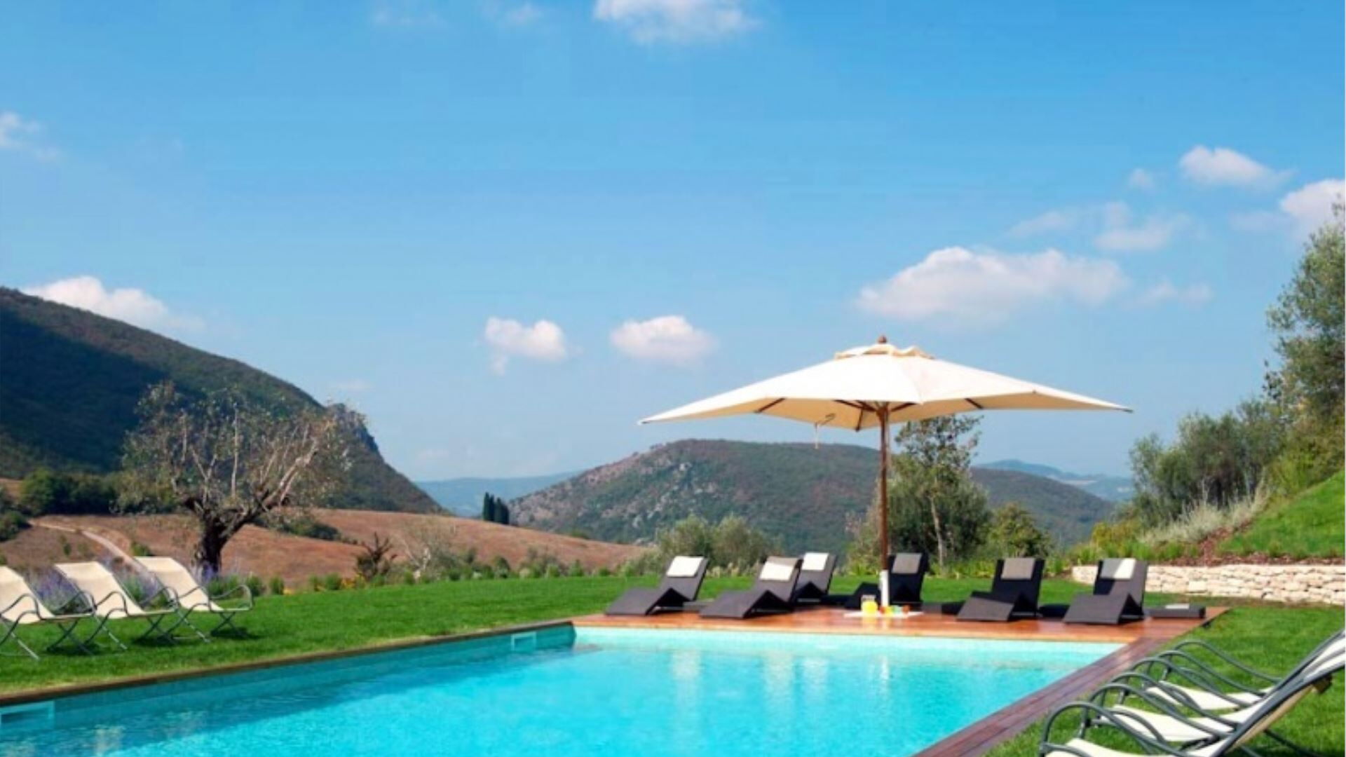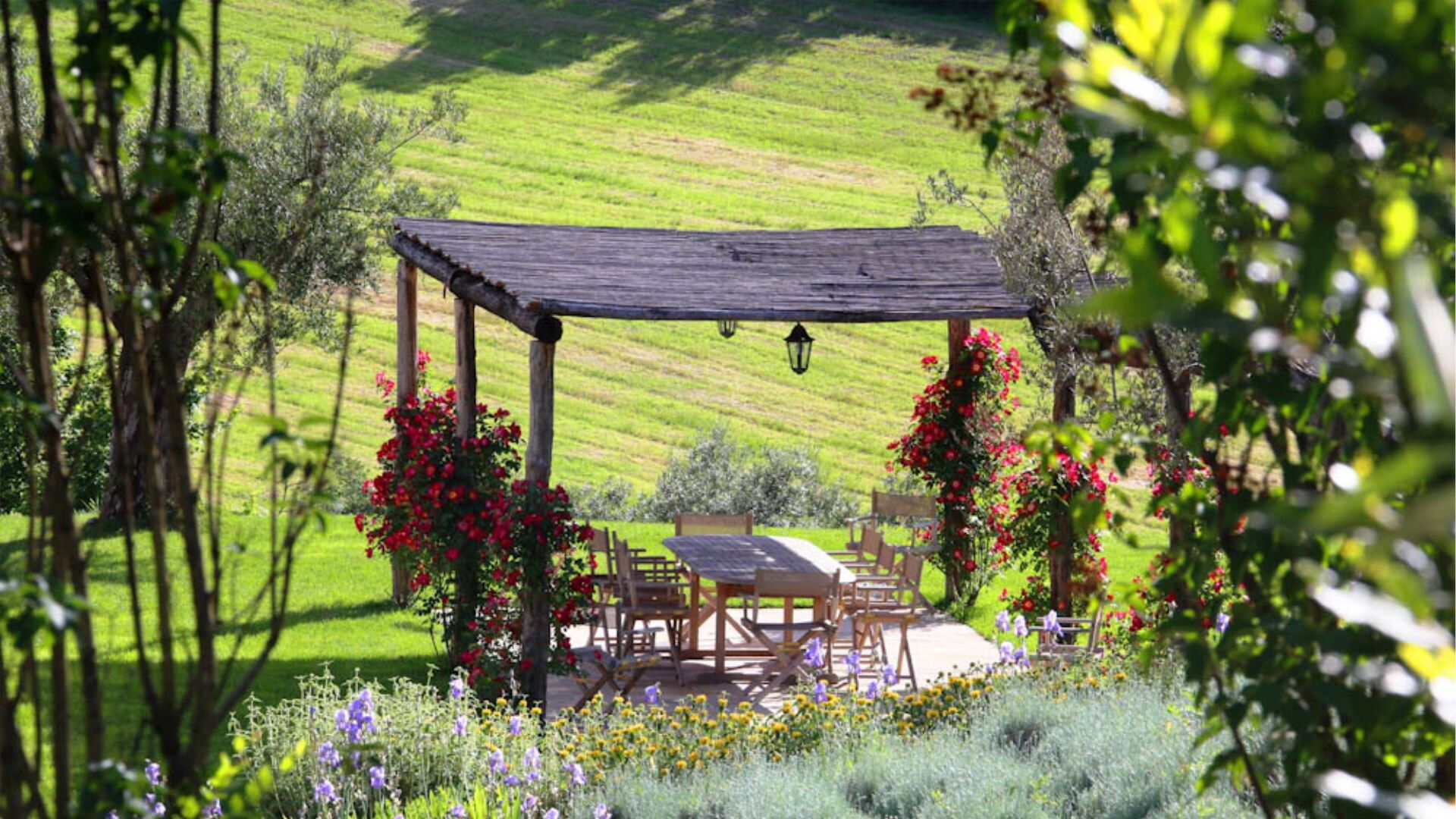 Les espaces extérieurs de Villa del Cammino offrent un cadre extraordinaire pour la détente et les loisirs. La piscine privée chauffée mesure 7m x 15m avec une profondeur de 1,5m, dotée d'élégantes finitions en mosaïque et de marches pratiques pour un accès facile. Une couverture de protection est disponible pour votre confort. Le vaste jardin paysager s'étend sur 10 000 mètres carrés, offrant amplement d'espace pour les activités de plein air et les promenades paisibles parmi la flore diversifiée. Vous trouverez des bains de soleil, des chaises et des parasols confortablement disposés autour de la piscine pour bronzer et vous détendre. Une pergola panoramique s'étend depuis le cottage, aménagée avec une table à manger pouvant accueillir 12 convives, parfaite pour les repas en plein air tout en profitant de la vue imprenable. Une table extérieure supplémentaire en bois positionnée devant la cuisine peut accueillir 8 personnes. Le salon de la villa principale s'ouvre sur une terrasse avec des fauteuils et un canapé d'extérieur avec parasol, tandis qu'une table basse avec deux fauteuils se trouve devant le salon du cottage. Un barbecue est disponible pour cuisiner en plein air, et le ping-pong peut être fourni sur demande pour les loisirs.
