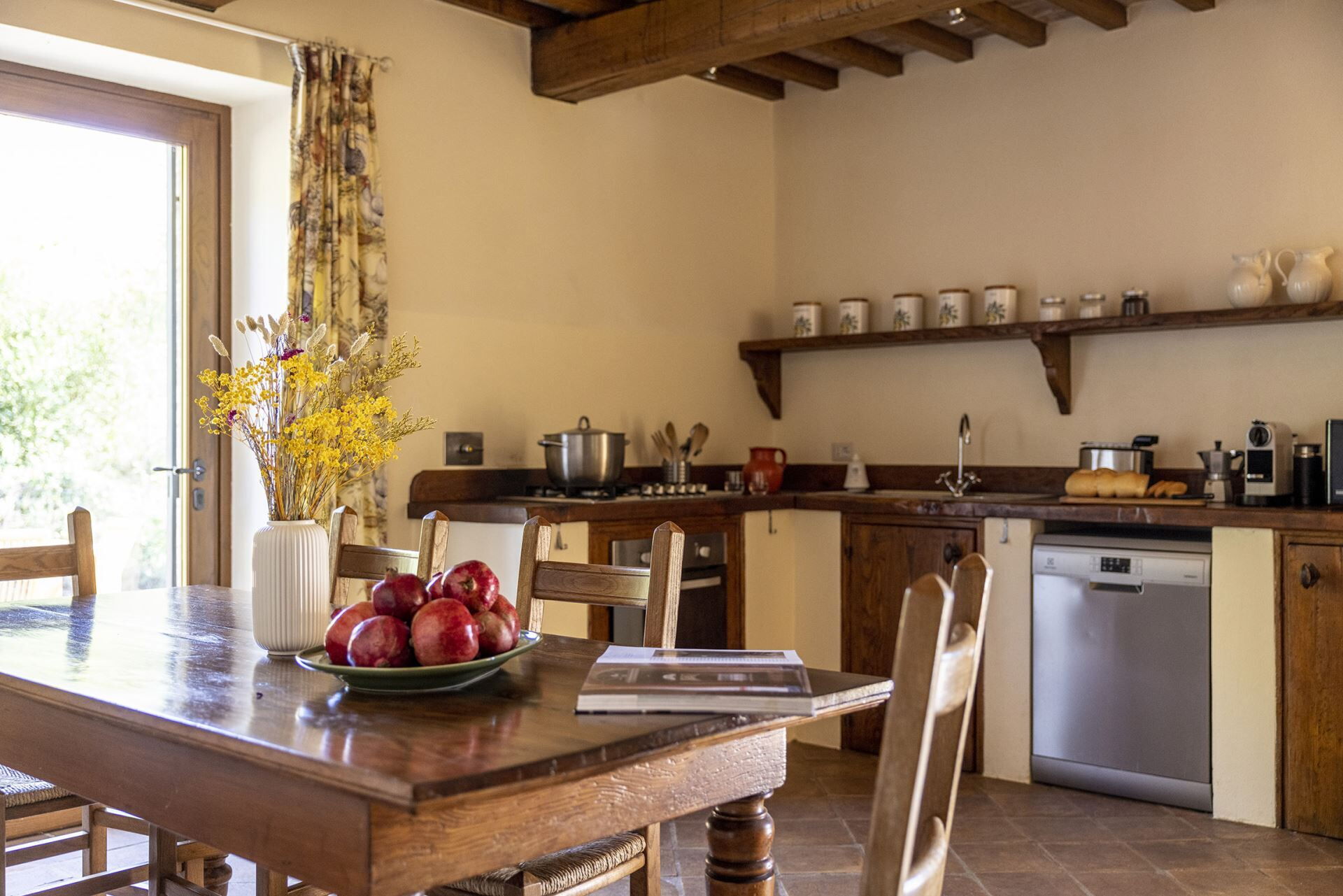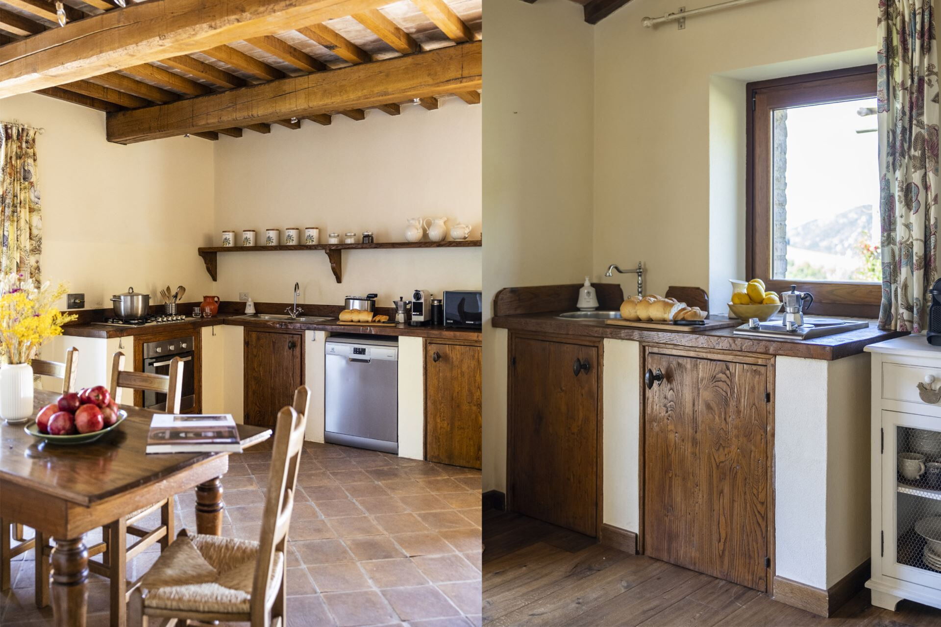 Villa del Cammino est conçue de manière réfléchie pour accueillir jusqu'à 12 personnes dans 6 chambres et 6 salles de bains, réparties entre la villa principale et un charmant cottage. Le rez-de-chaussée de la villa principale comprend un salon spacieux avec cheminée, une salle à manger séparée et une cuisine entièrement équipée. Ce niveau comprend également une buanderie et une chambre double avec un lit queen-size mesurant 1,80x2m, dotée d'une salle de bains privative avec douche. Au premier étage, vous trouverez quatre chambres supplémentaires, dont deux chambres doubles avec lits king-size mesurant respectivement 1,95x2m et 2x2m, chacune avec une salle de bains privative équipée d'une douche et d'une baignoire. Deux autres chambres doubles disposent de lits mesurant 1x2m, chacune avec salles de bains privatives, l'une avec douche et l'autre avec baignoire. L'élégant cottage offre un aménagement ouvert combinant le salon, la cuisine et l'espace repas, ainsi qu'une chambre king-size mesurant 2x2m avec une salle de bains privative avec douche.