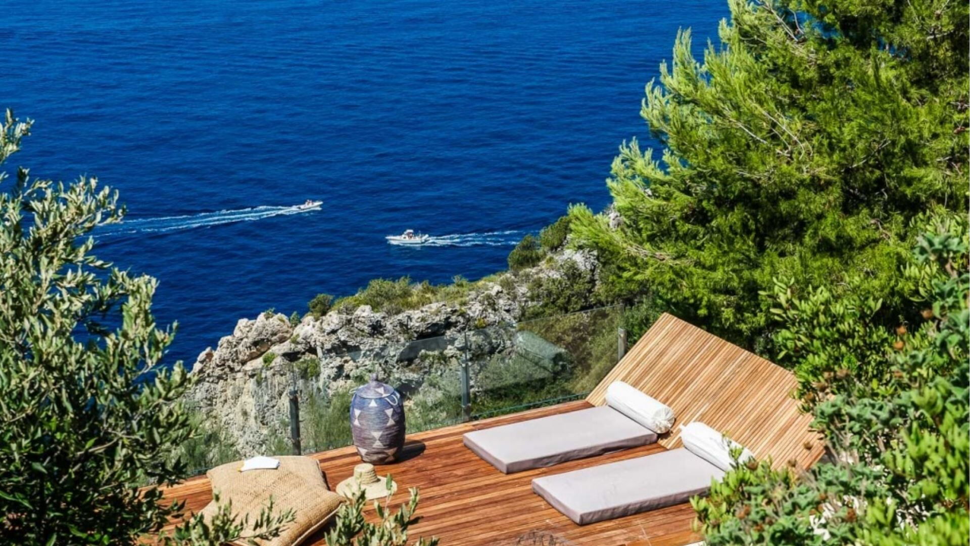 Les espaces extérieurs de Villa Cala Moresca présentent une conception exceptionnelle caractérisée par de multiples terrasses, des patios intimes et une superbe piscine non chauffée de 18x4 mètres agrémentée d'un jacuzzi et d'un bord à débordement qui crée une continuité visuelle avec l'horizon. Ces espaces extérieurs se fondent harmonieusement dans le paysage méditerranéen environnant, vous offrant diverses zones de détente et de divertissement tout en profitant des vues spectaculaires sur la mer. Les terrasses constituent des points d'observation parfaits pour admirer les magnifiques couchers de soleil et les îles qui parsèment l'horizon, tandis que les patios offrent des espaces plus isolés pour apprécier la tranquillité de ce cadre côtier. La vaste zone de la piscine constitue la pièce maîtresse des équipements extérieurs, vous invitant à vous rafraîchir tout en maintenant une connexion ininterrompue avec la mer au-delà.