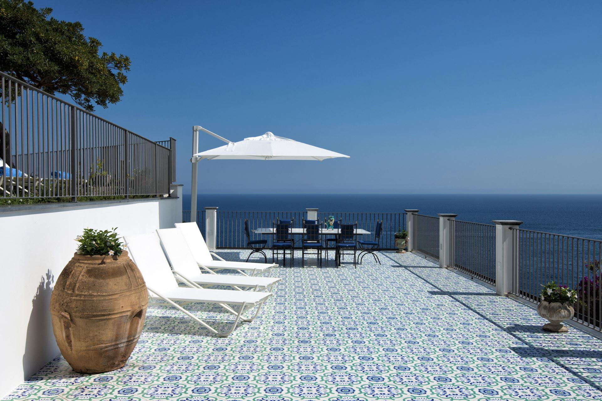 Les espaces extérieurs de Villa Limoncello offrent des zones exceptionnelles de détente et de divertissement réparties sur plusieurs niveaux. La première terrasse privée mesure environ 150 mètres carrés et est entièrement équipée de tables et chaises confortables, de fauteuils moelleux, d'auvents protecteurs et d'un barbecue pour des expériences culinaires en plein air. Depuis cette vaste terrasse, vous profiterez de vues enchanteresses sur la mer et le spectaculaire littoral amalfitain qui s'étend devant vous. Le bain extérieur privé mesure 3 x 2,3 mètres et est entouré d'un espace dédié aménagé avec des parasols, des chaises longues et des bains de soleil, créant un cadre idéal pour se détendre tout en admirant le panorama côtier. Ce bain est disponible pour votre plaisir de début avril à fin octobre. La deuxième terrasse offre un cadre intime meublé d'une table et de chaises, avec un accès direct depuis le salon, la salle à manger et les chambres. Ici, vous assisterez à des couchers de soleil spectaculaires qui créent une toile de fond magnifique pour les repas du soir tout en contemplant l'immensité de la mer Méditerranée.