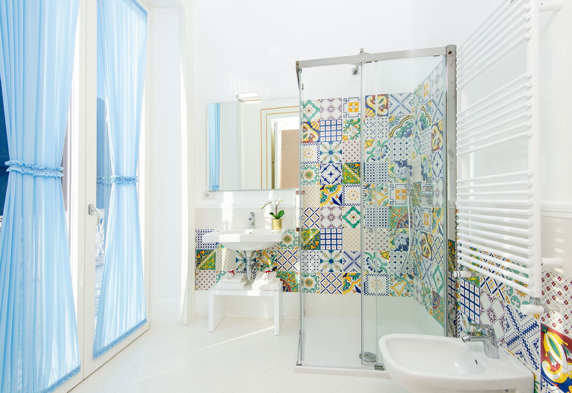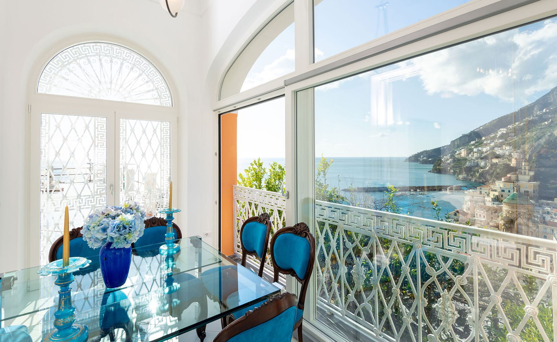 Villa Limoncello peut accueillir jusqu'à 8 personnes dans ses espaces intérieurs soigneusement conçus. La propriété comprend 4 chambres et 7 salles de bains, réparties dans toute la villa pour garantir intimité et confort à tous les occupants. Le salon présente un espace lumineux et élégant au style typique de la côte amalfitaine, caractérisé par de hauts plafonds voûtés et meublé d'un canapé confortable et d'une Smart TV. La salle à manger met en valeur une belle table pouvant accueillir huit personnes, positionnée devant une grande fenêtre qui encadre des vues magnifiques sur la mer et Amalfi. La première chambre avec salle de bains privative contient un lit double et un coffre-fort, tandis que la deuxième chambre avec salle de bains privative dispose également d'un lit double. La troisième chambre avec salle de bains privative se compose de trois pièces communicantes, incluant un espace de vie avec un canapé et deux fauteuils, un espace nuit séparé avec un lit double et une salle de bains privée. La quatrième chambre avec salle de bains privative contient un lit double. Chacune des quatre salles de bains privatives est décorée de céramiques artisanales polies et comprend un lavabo, des toilettes, un bidet, une cabine de douche et un sèche-cheveux. La cinquième salle de bains contient un lavabo, des toilettes et une cabine de douche, tandis que la sixième salle de bains dispose d'un lavabo et de toilettes. Toutes les chambres offrent un accès à la deuxième terrasse avec des vues captivantes sur la mer, et chaque chambre est accessible depuis le couloir central.