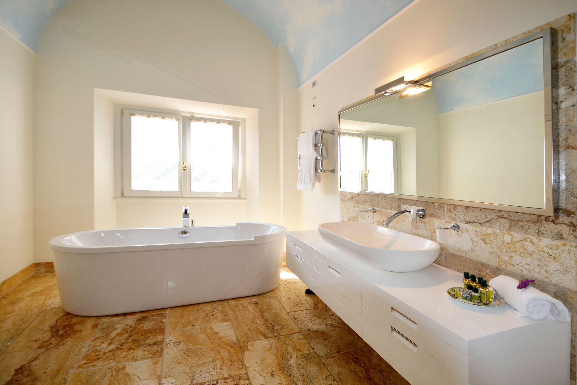 chambre avec salle de bain 2: lit double, deux lits à une place, internet WIFI, climatisation, moustiquaires, bassin, wc, bidet, bagnoire, douche.
