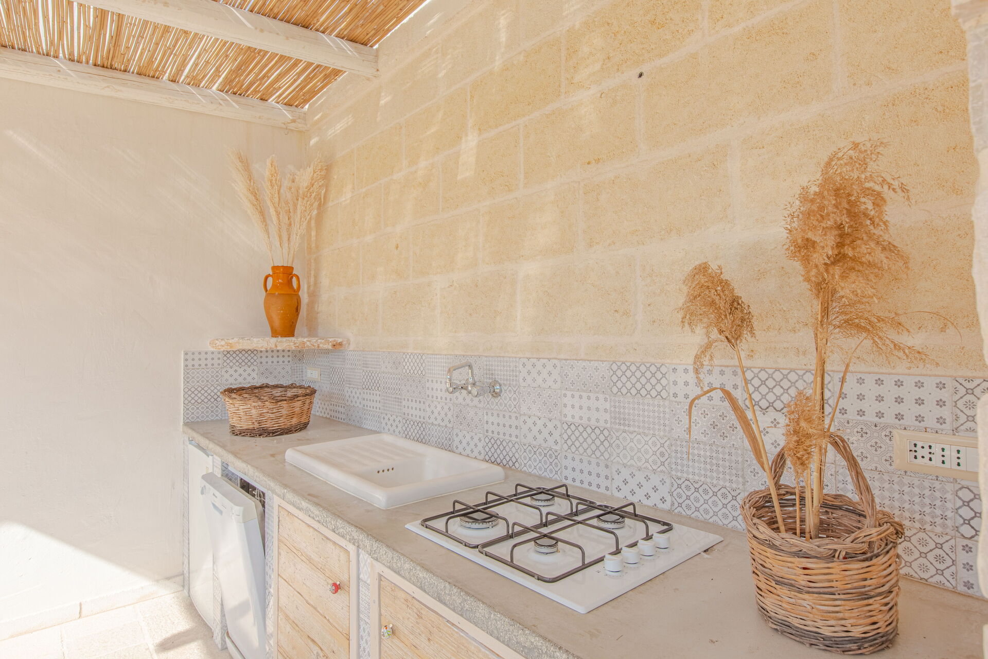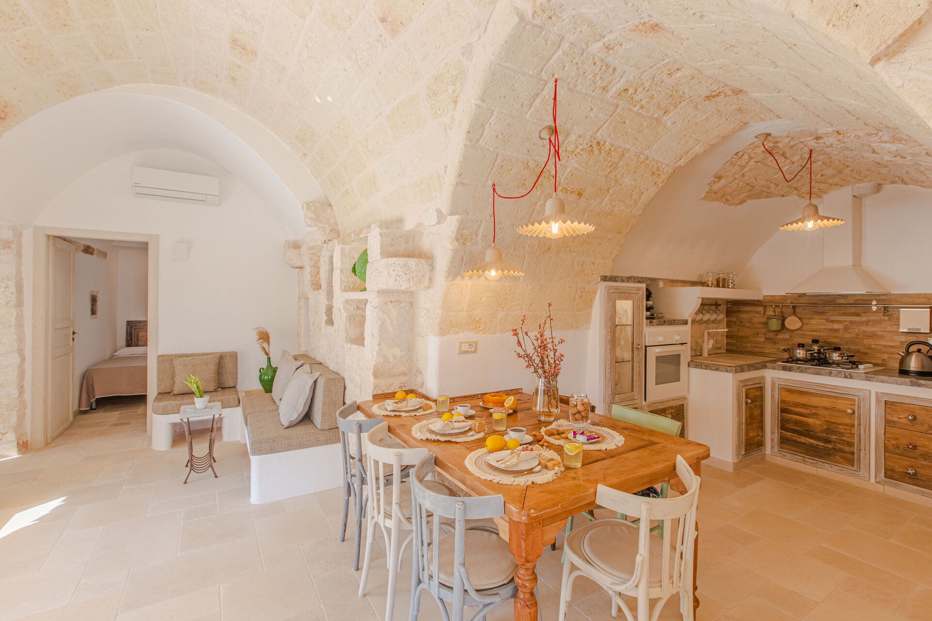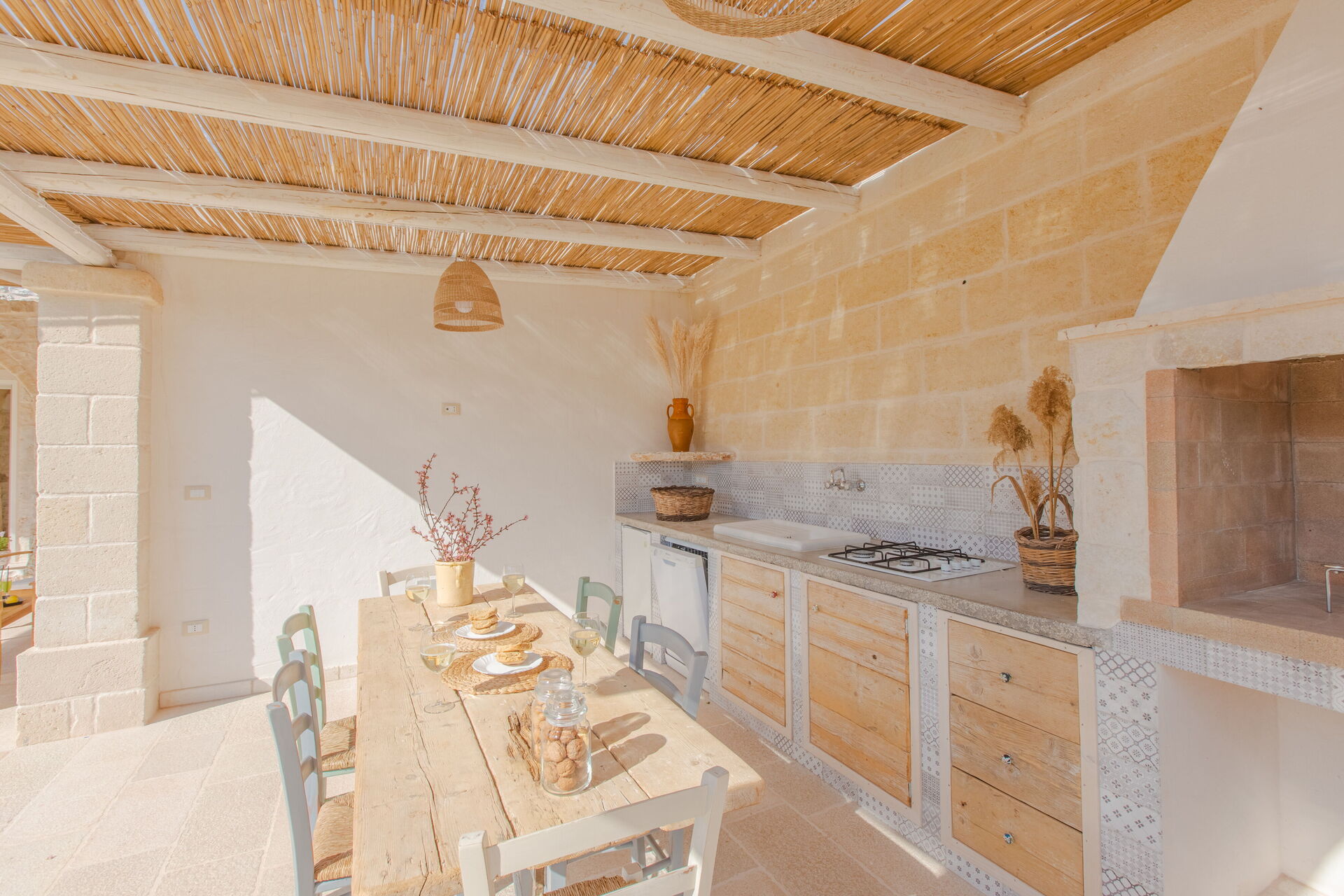 à l'arrivée à Lamia Del Vespro vous trouverez une jolie propriété, propre et bien entretenue, idéale pour des vacances calmes en Pouilles. Après une fatigante journée de visites, passez du temps avec la famille et les amis en bord de piscine en dégustant un verre de vin, un moyen idéal pour vous détendre à la fin de la journée. Manger avec les amis et la famille est une grande partie de la culture italienne. Profitez de la cuisine bien équipée pour préparer les repas avec des produits locaux pendant vos vacances. La cuisine comprend four micro-onde et réfrigérateur, ainsi que, abondance de vaisselle et couverts pour un maximum de six personnes.